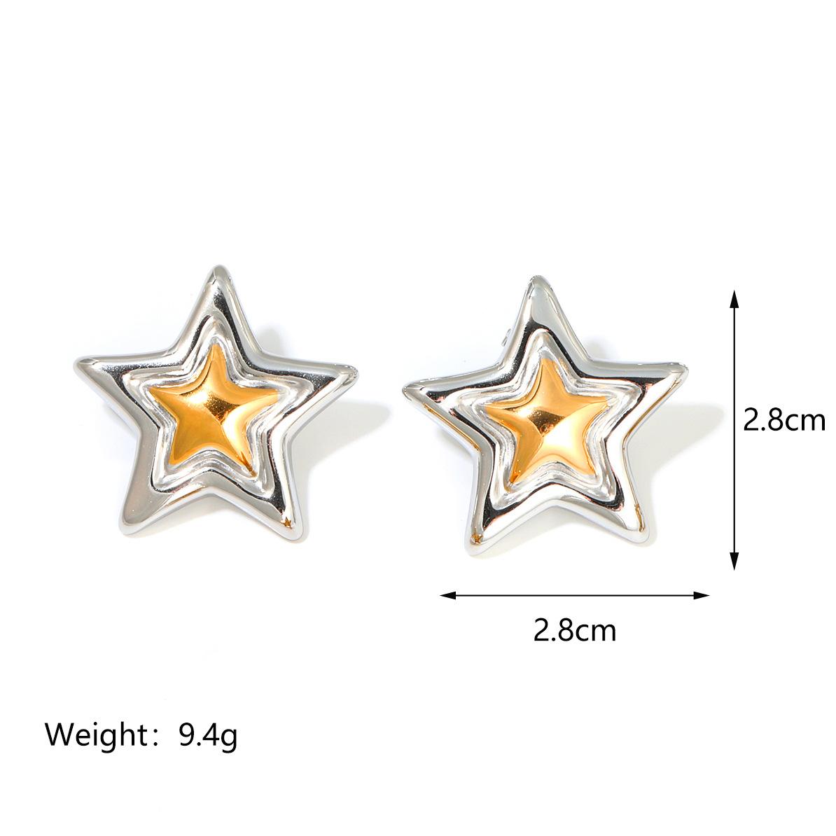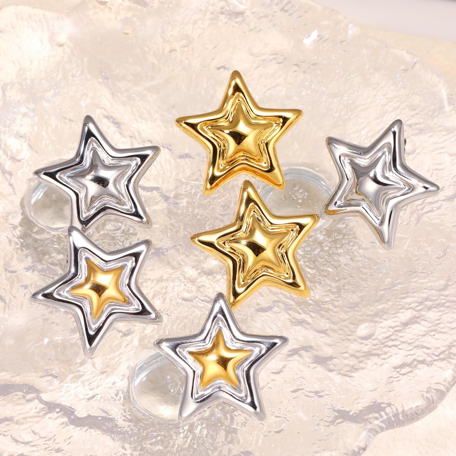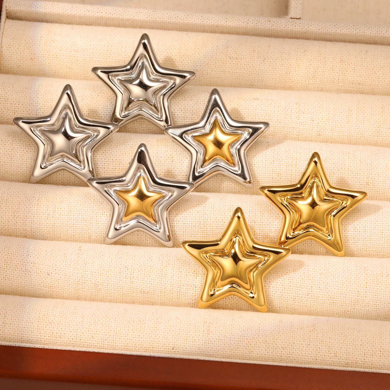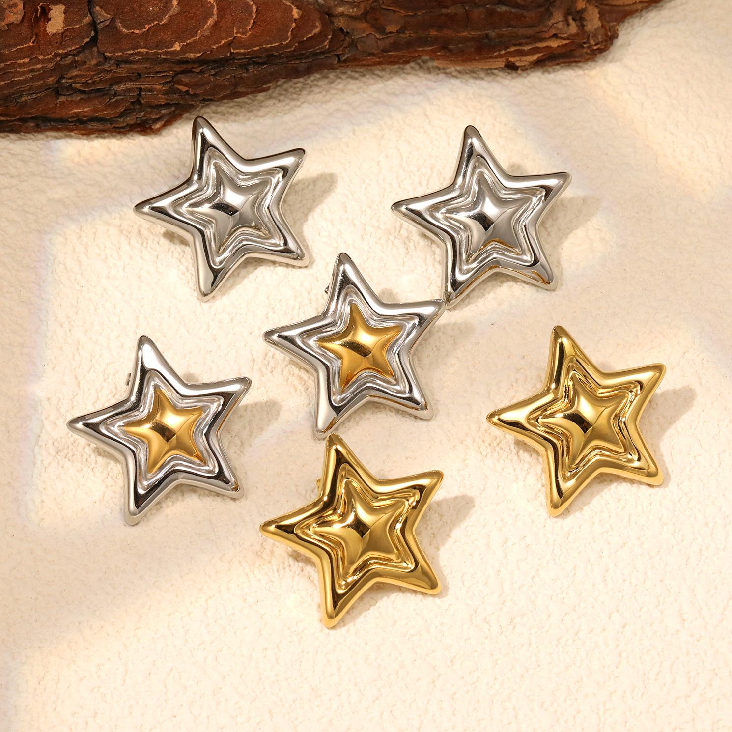 Pendientes de estrella de cinco puntas anidados multicapa estilo Ins de acero inoxidable acero titanio chapado en oro de 18 quilates y combinación de colores plata pendientes pendientes