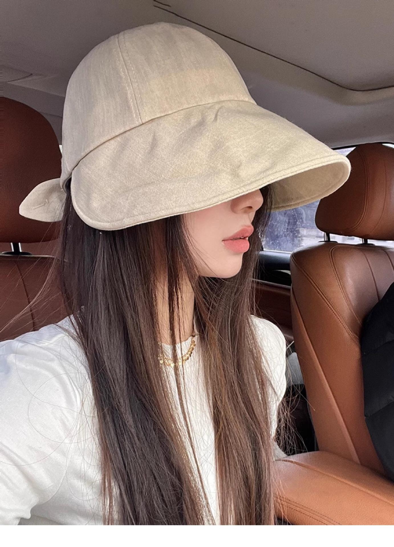 Off-white (bow linen bucket hat), Black (bow linen bucket hat), Gray (bow linen bucket hat), Oatmeal color (bow linen bucket hat)