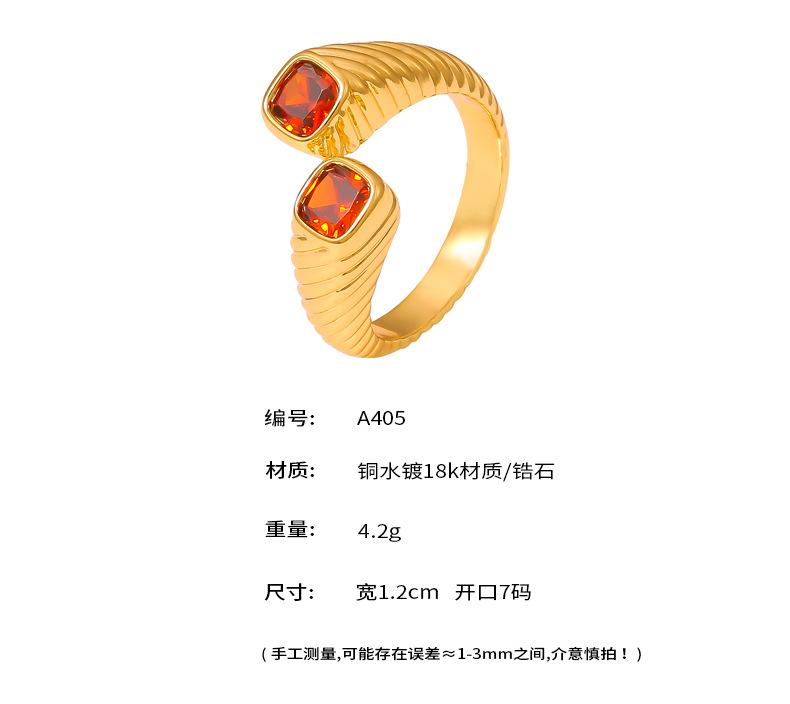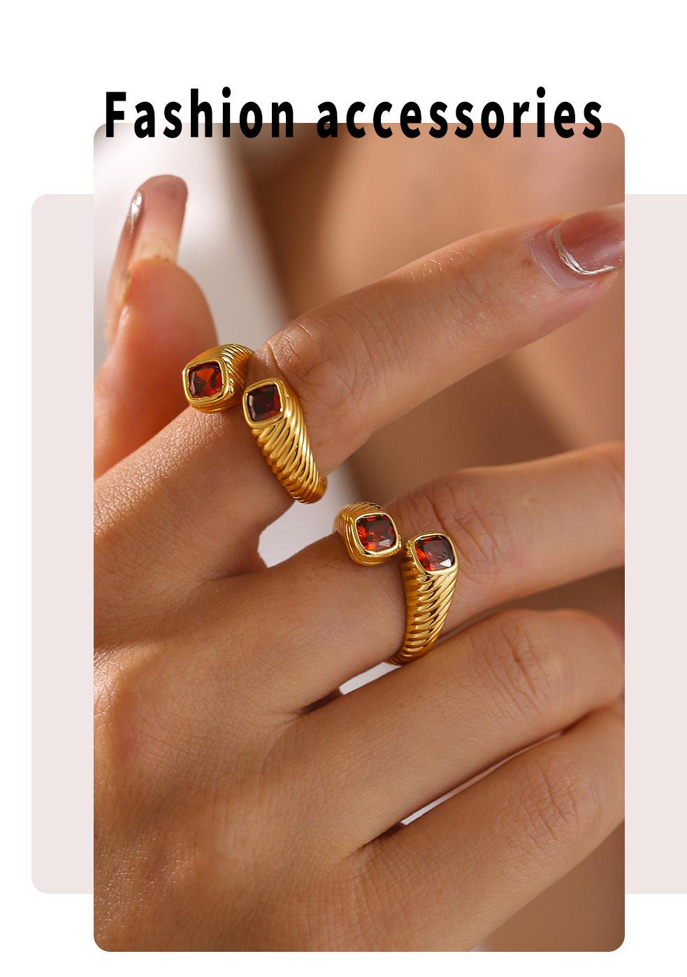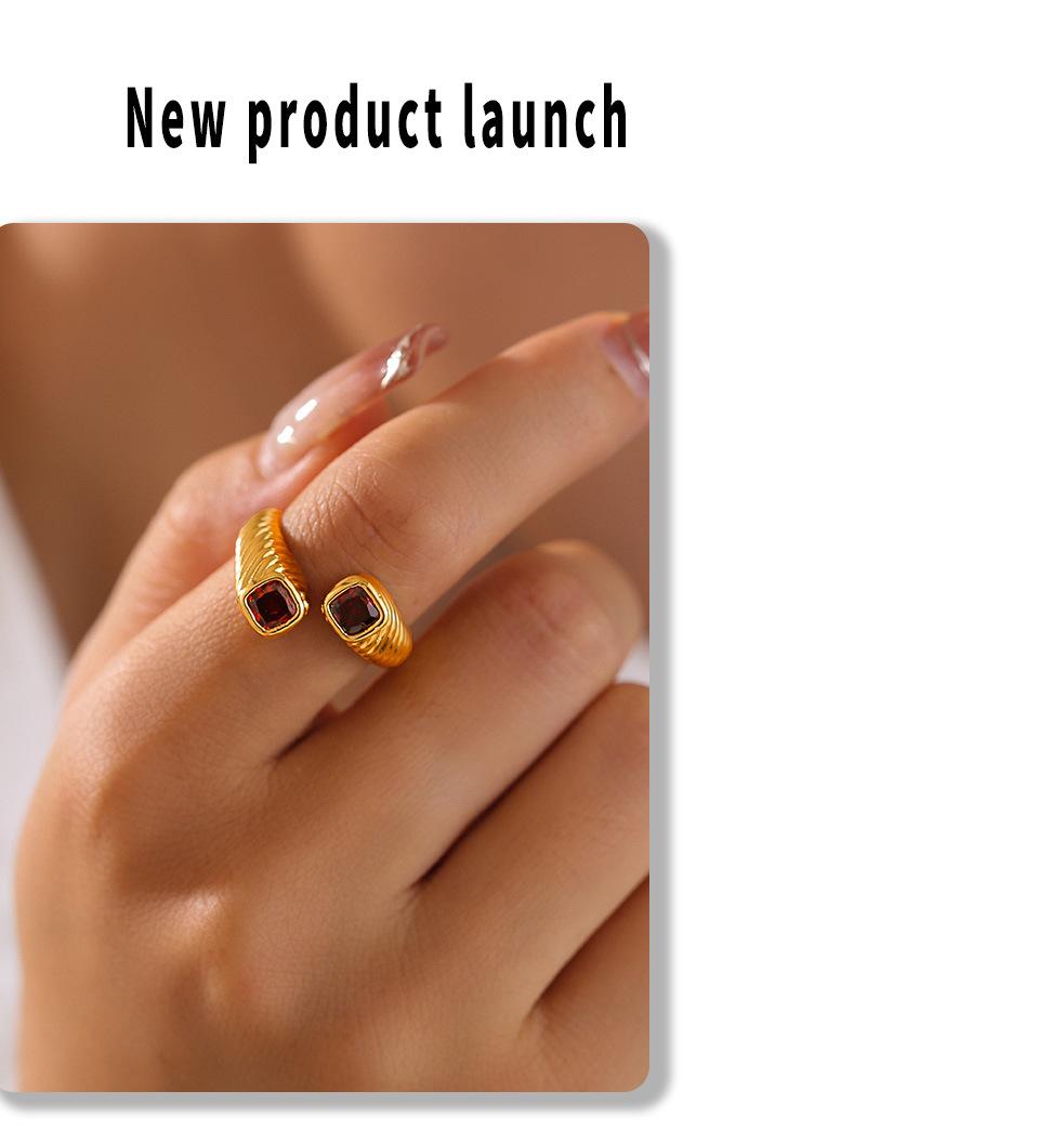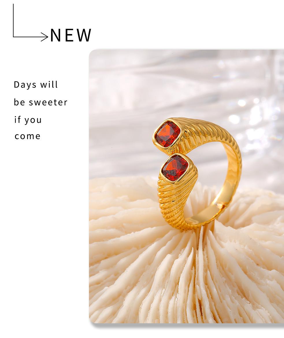 Anillo geométrico de circonita roja de estilo retro europeo y americano, abertura que no se desvanece, anillo para dedo de comida, joyería sencilla de estilo frío, material de cobre