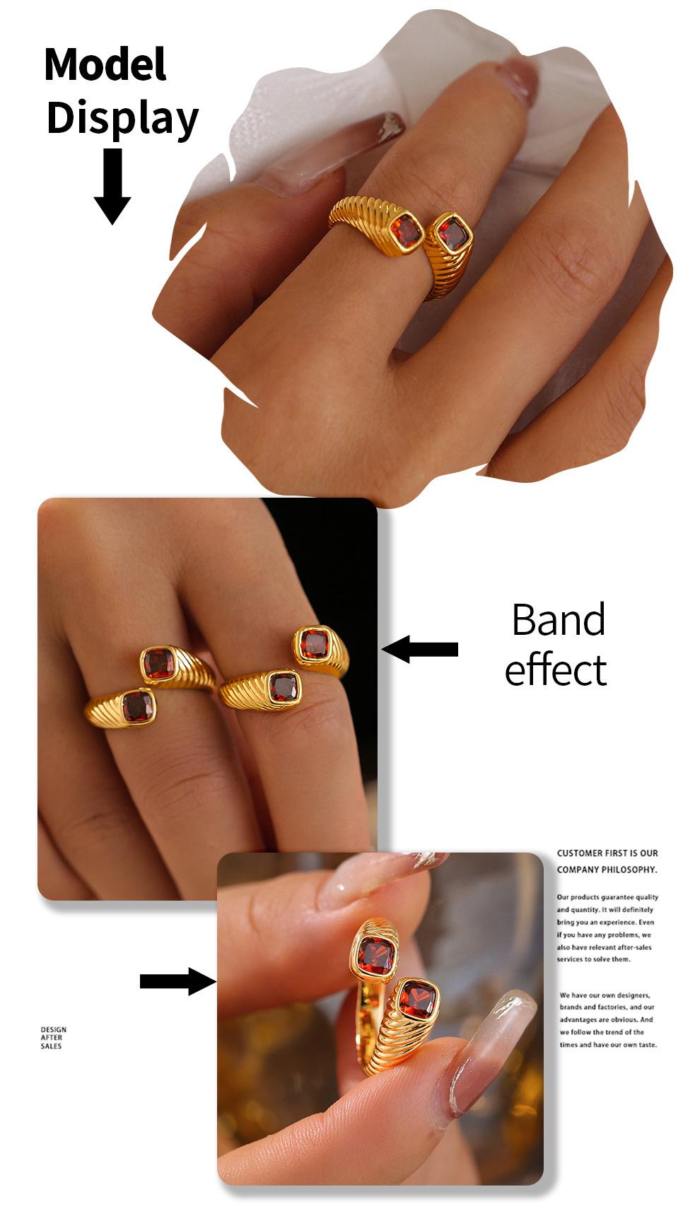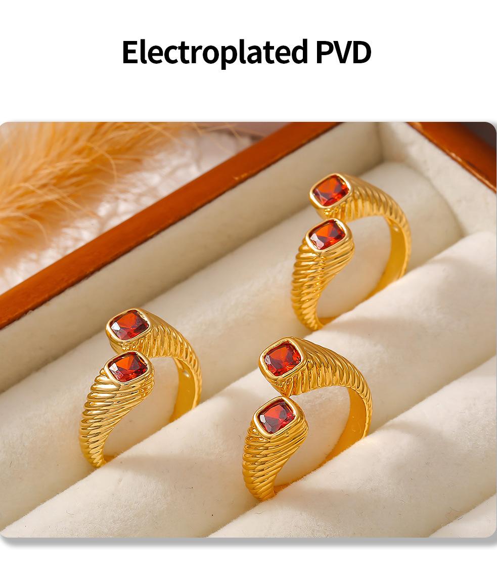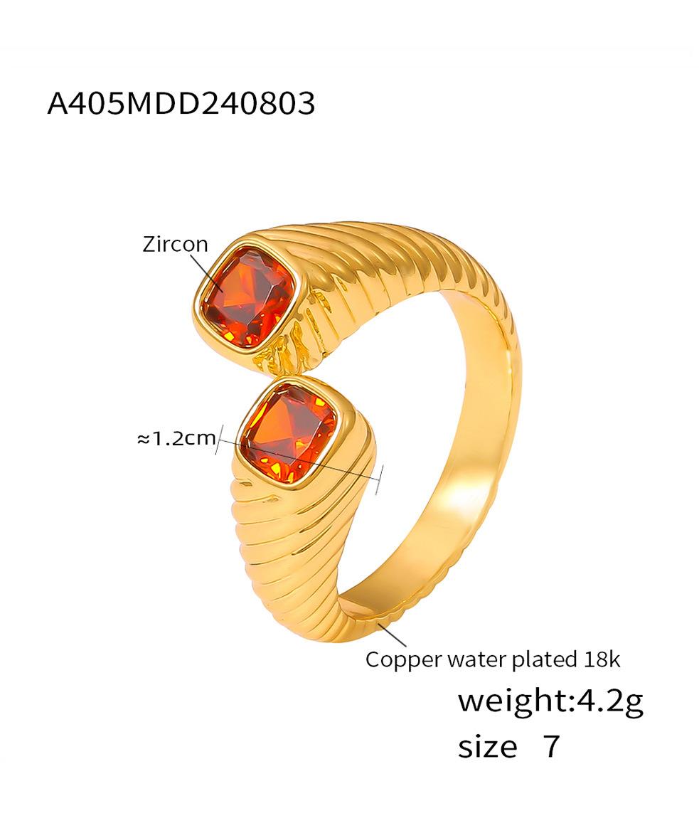 Anillo geométrico de circonita roja de estilo retro europeo y americano, abertura que no se desvanece, anillo para dedo de comida, joyería sencilla de estilo frío, material de cobre