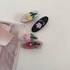 Horquilla ovalada con forma de pico de pato y flor de diamantes de imitación, con textura de ácido acético, para flequillo roto, con clip lateral, accesorios avanzados para el cabello