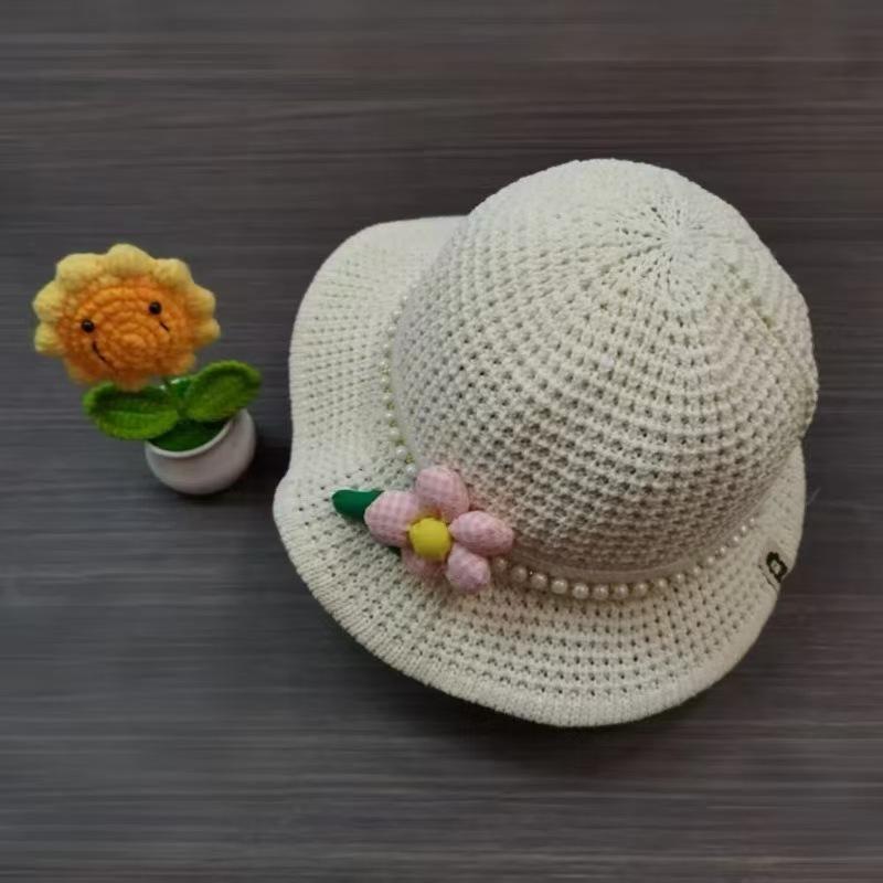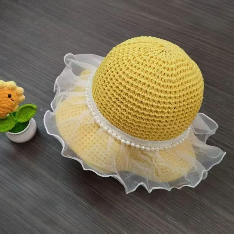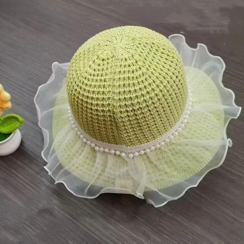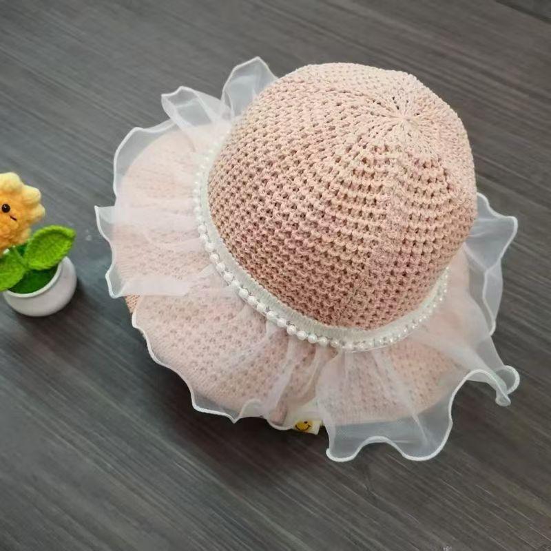 Pearl lace straw hat—beige, Pearl lace straw hat—khaki, Pearl lace straw hat—pink, Pearl lace straw hat—leathe...