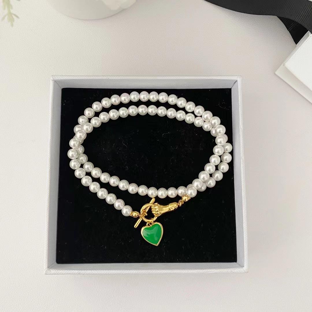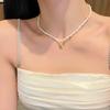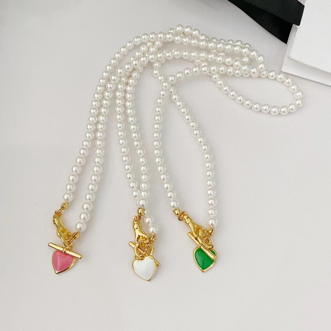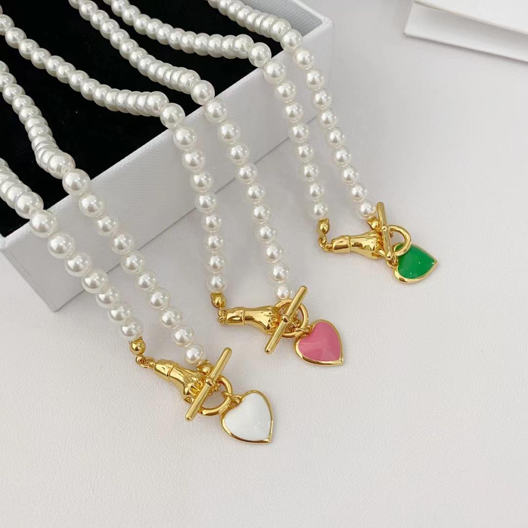 Collar de perlas con colgante de amor de colores de moda de celebridades de Internet, collar de perlas de lujo ligero y de alta gama que combina con todo.