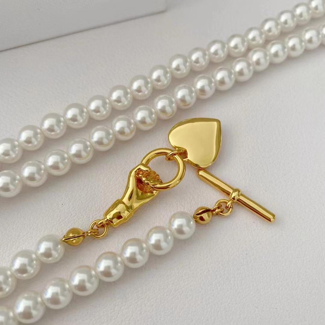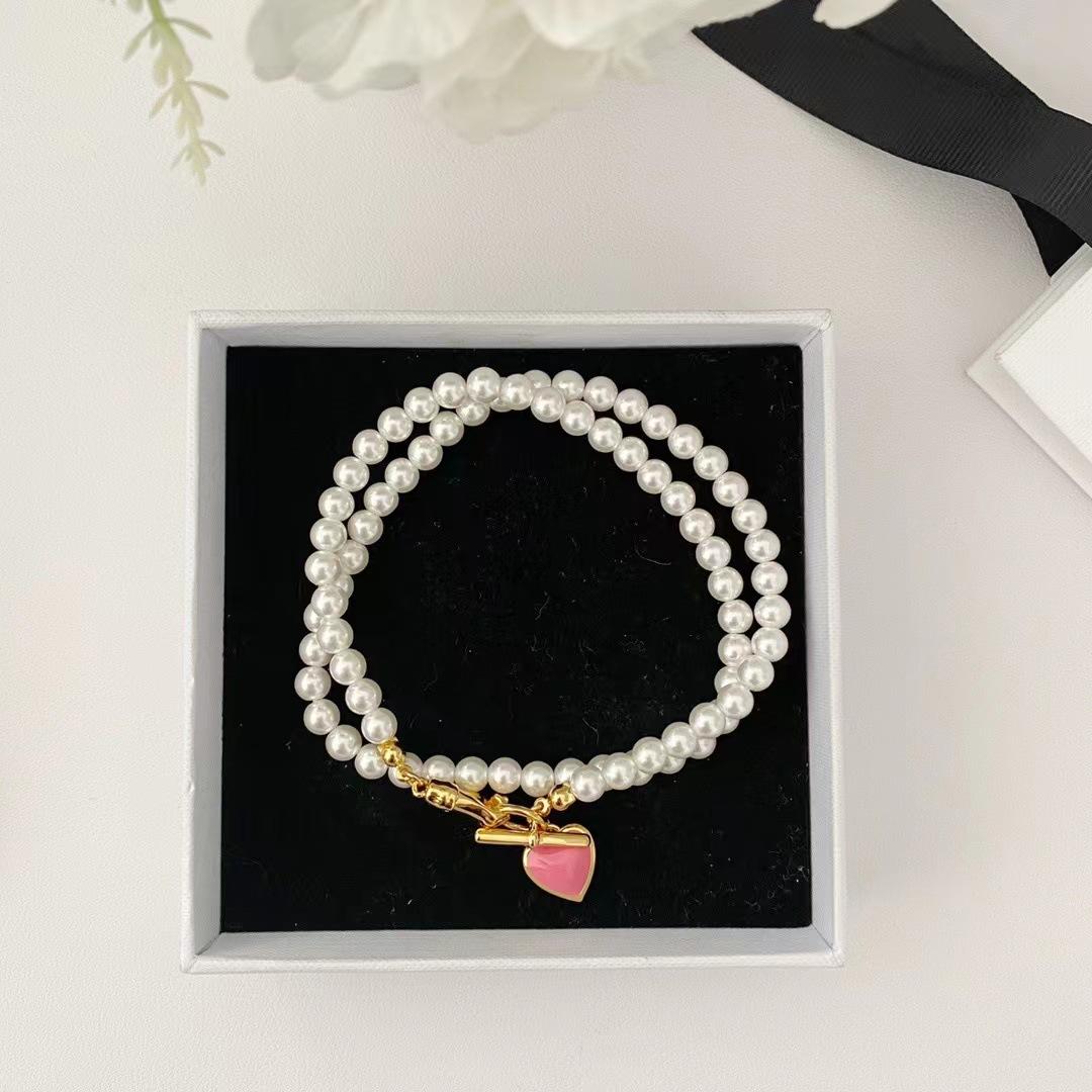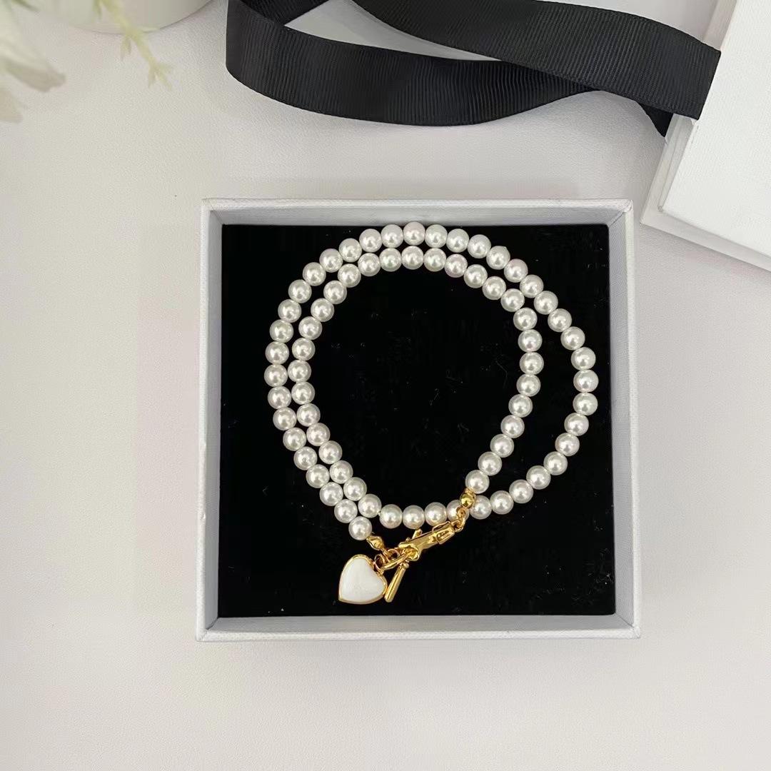 Collar de perlas con colgante de amor de colores de moda de celebridades de Internet, collar de perlas de lujo ligero y de alta gama que combina con todo.