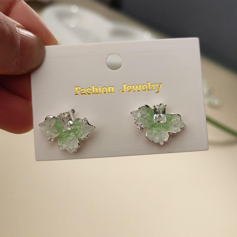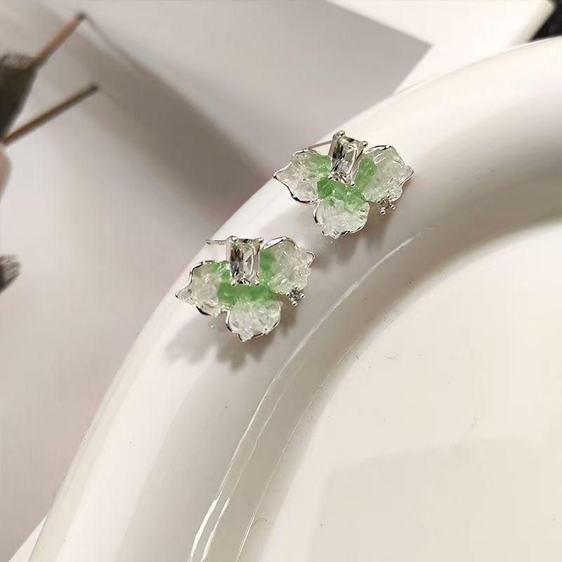 Aretes de Cristal Verde Degradado para Mujer 2025 Primavera y Verano Nuevo Estilo Aretes Frescos Nicho de Alta Gama Lindo Aretes de Flor de Iris