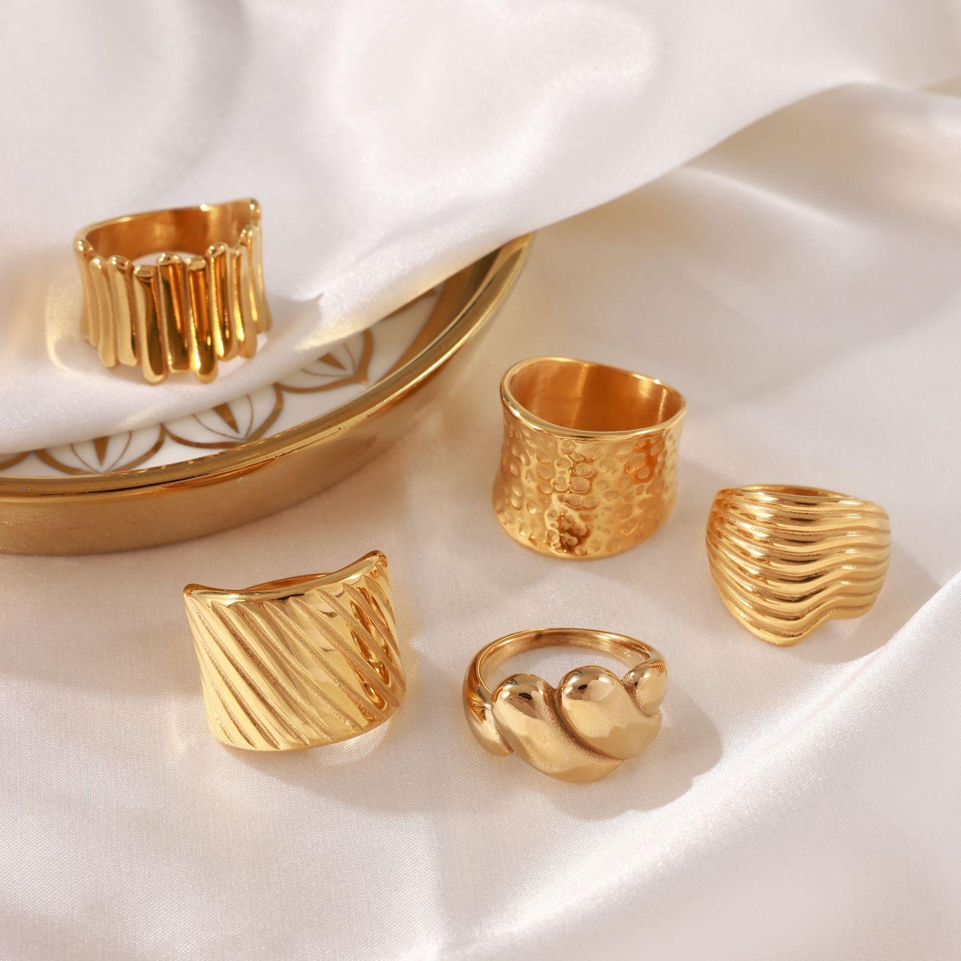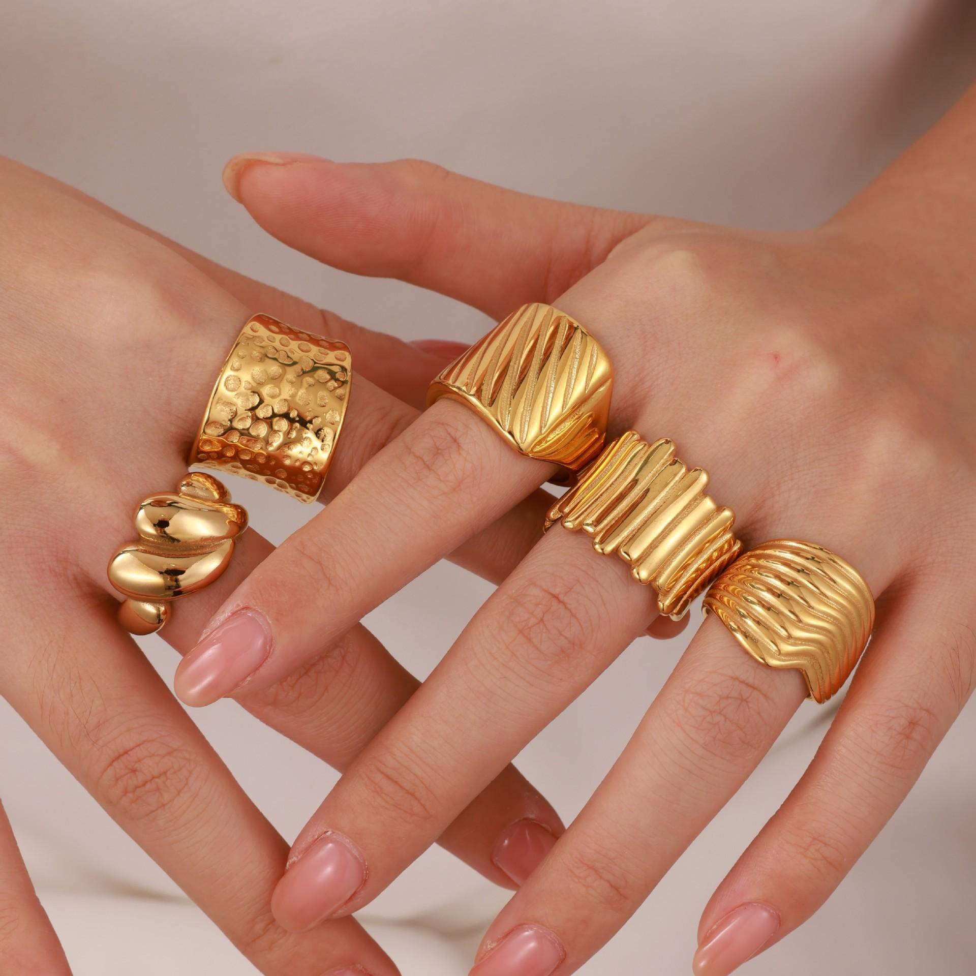 Anillo Europeo y Americano Transfronterizo Diseño de Sarga Sentido Avanzado Simple Anillo Acero Inoxidable Chapado en Oro de 18K Conservación de Color Moda Anillo para Viajeros