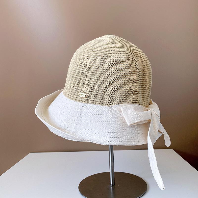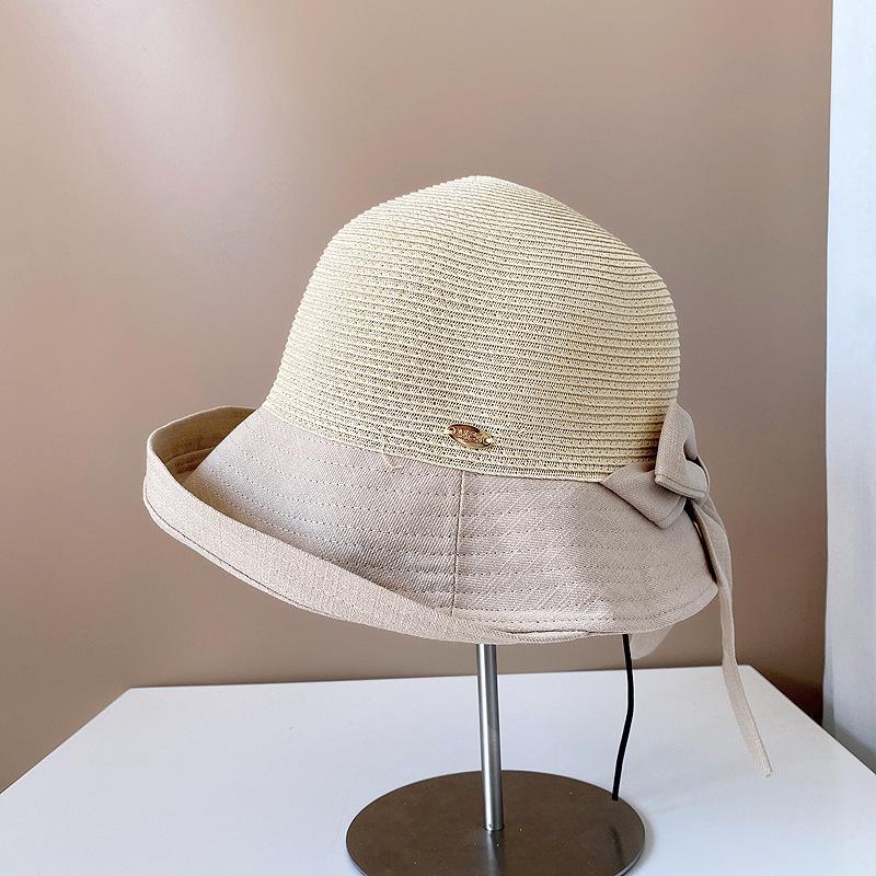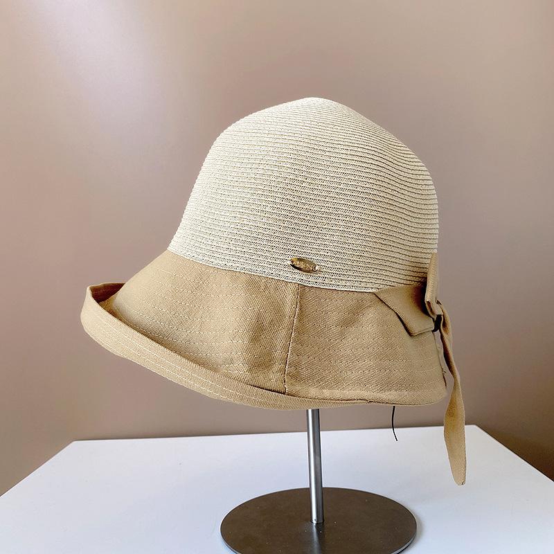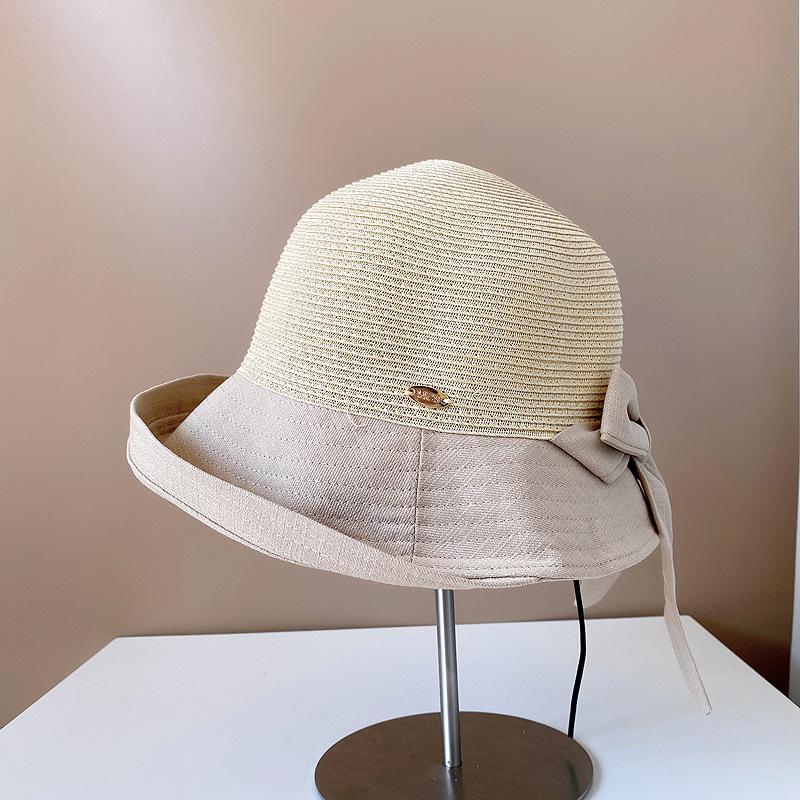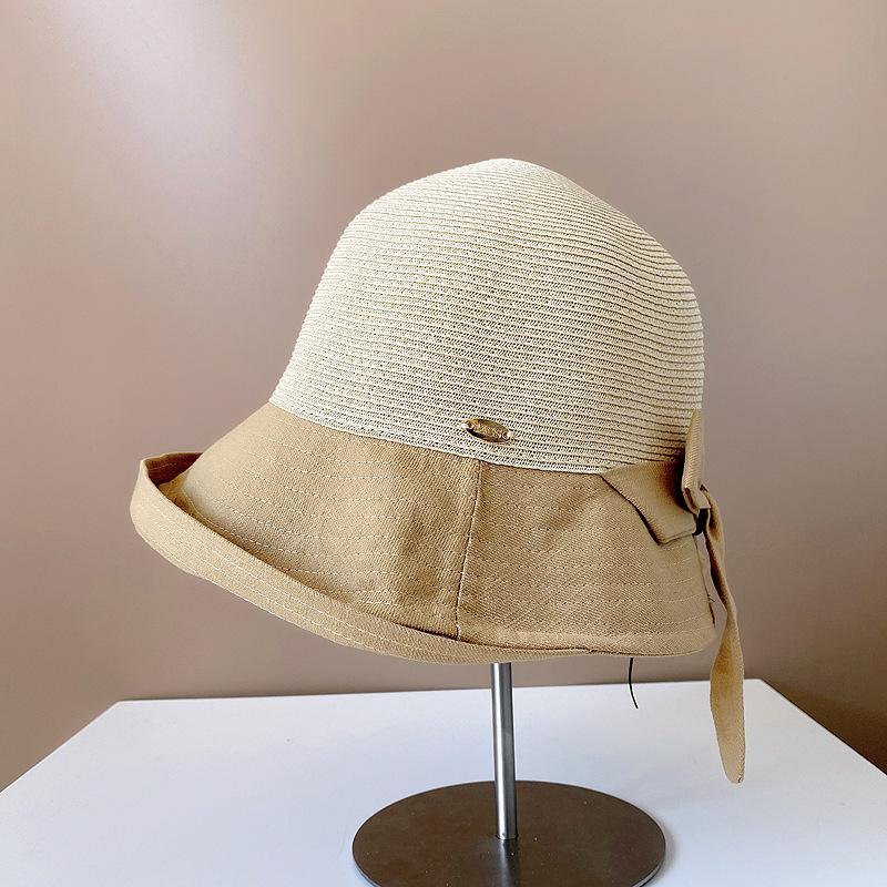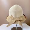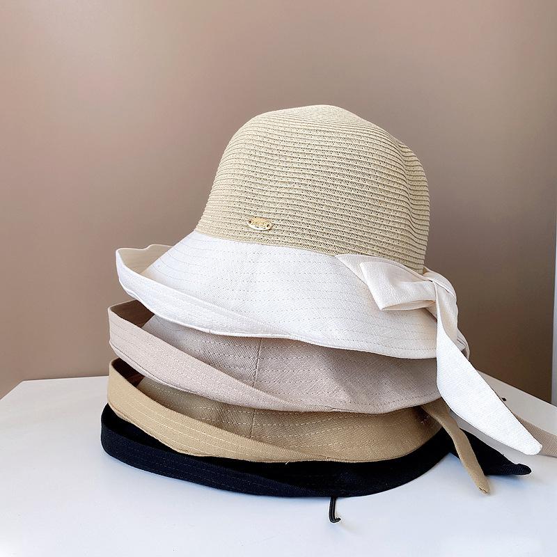 Sombrero de Paja para Mujer de Verano para Viaje y Protección Solar Estilo Japonés Costuras de Tela Lazo Cinta Sombrero de Pescador Sombrero de Sol Combinable
