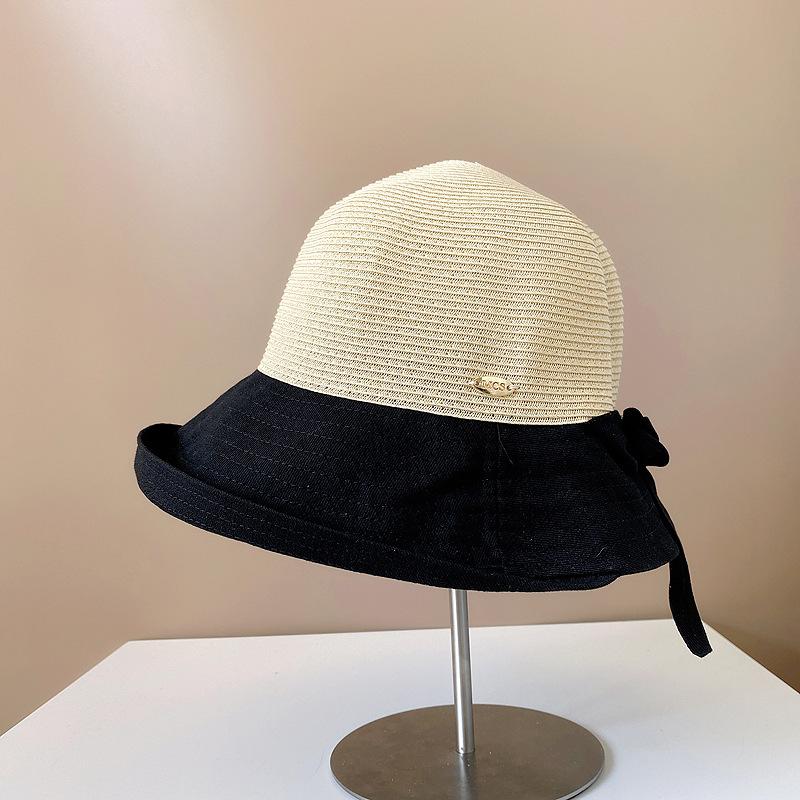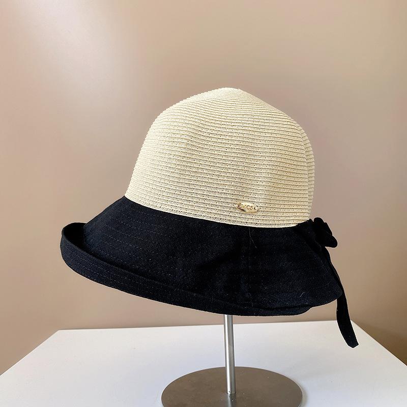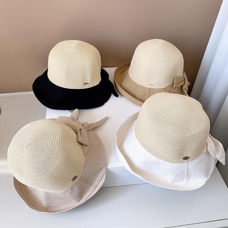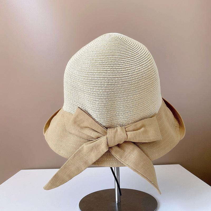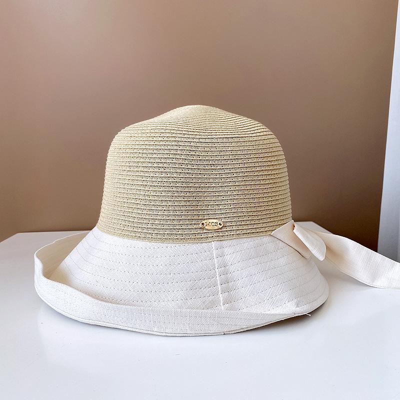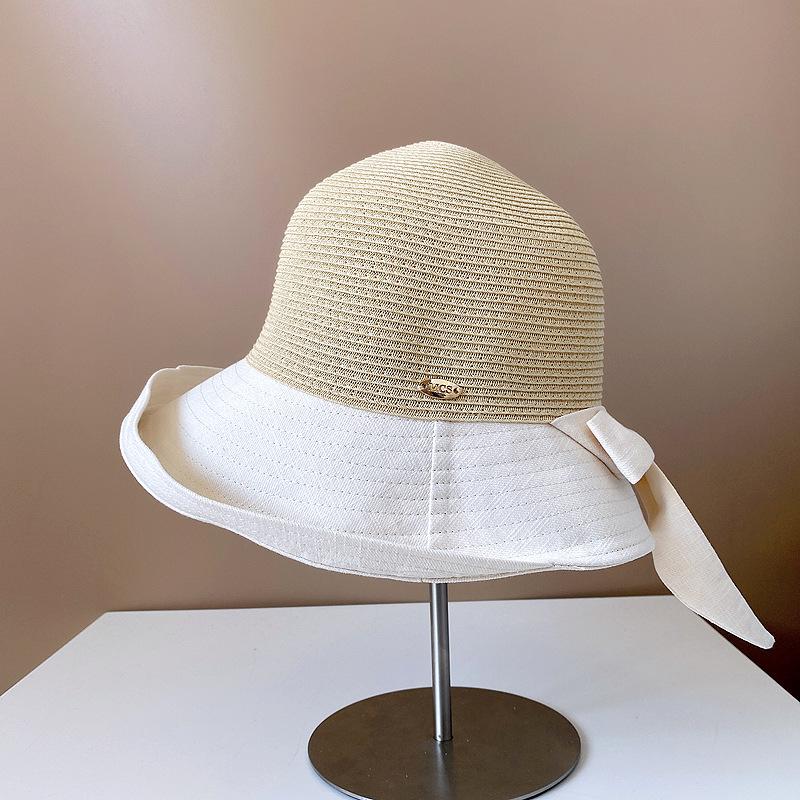 Sombrero de Paja para Mujer de Verano para Viaje y Protección Solar Estilo Japonés Costuras de Tela Lazo Cinta Sombrero de Pescador Sombrero de Sol Combinable