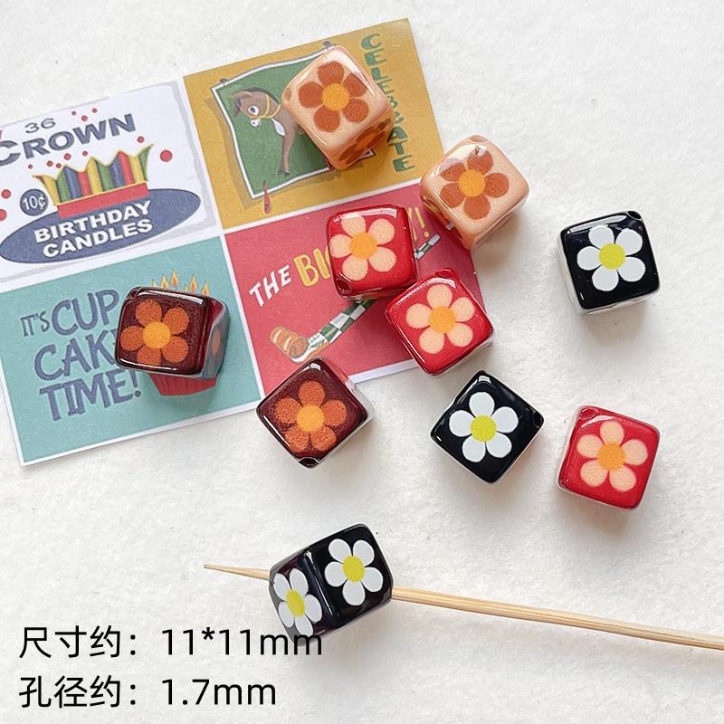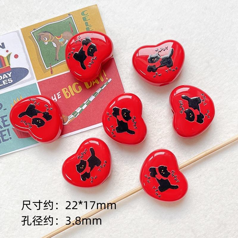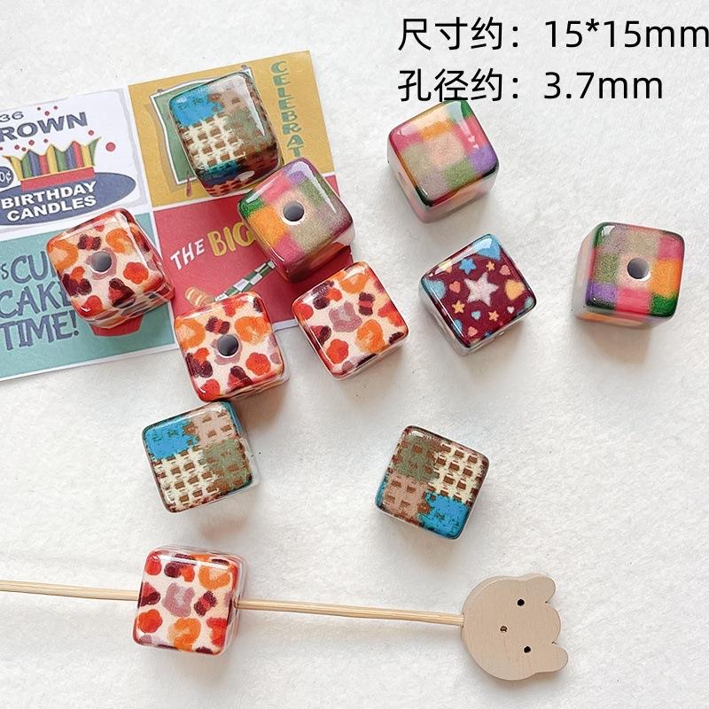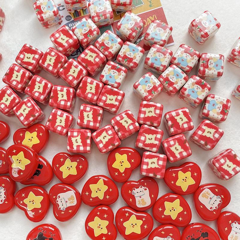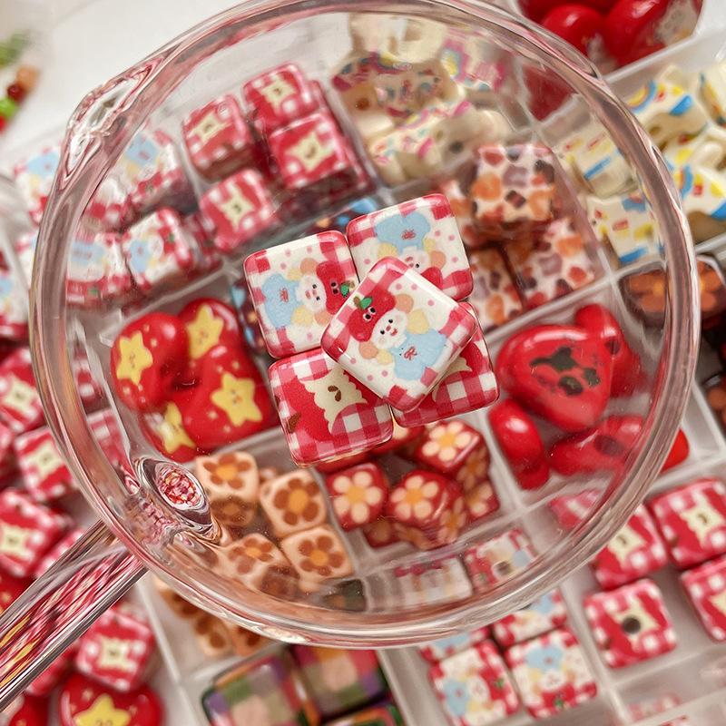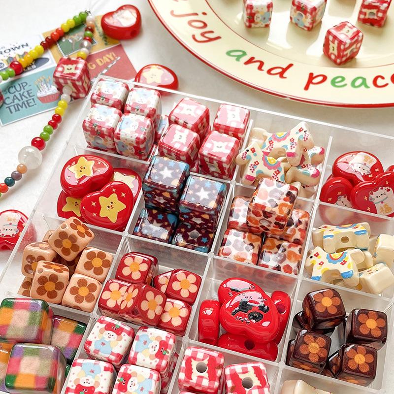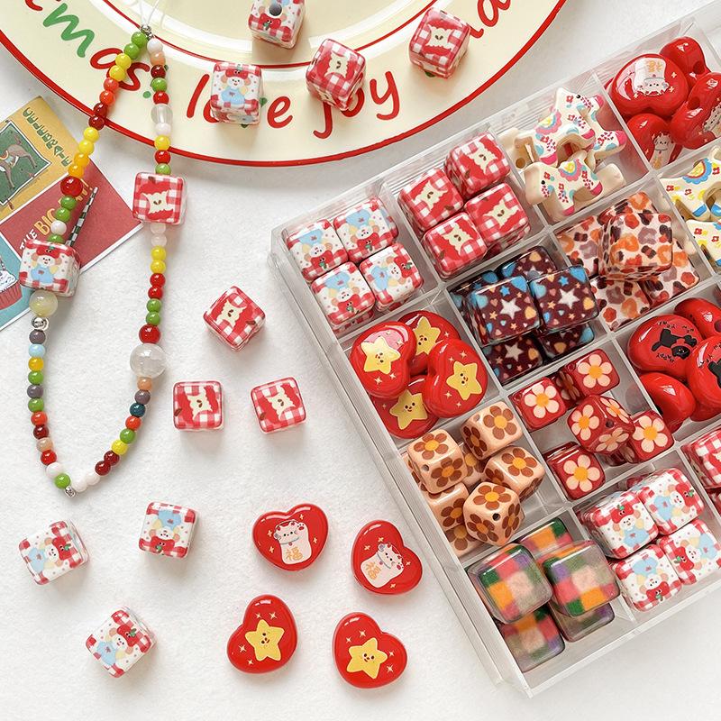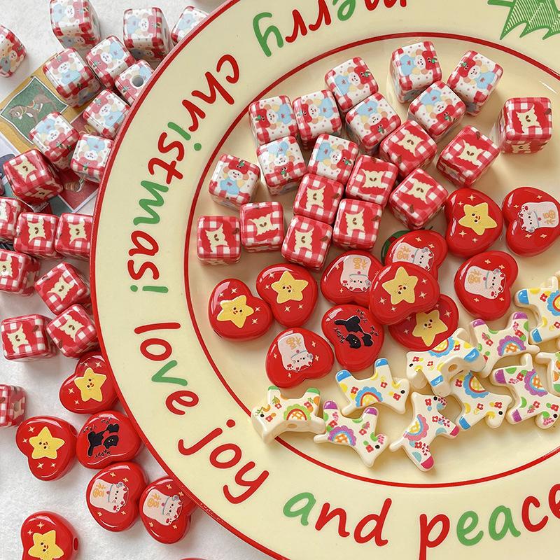 Cuentas cuadradas de acrílico rojo de invierno, cuentas para hacer tú mismo, joyería hecha a mano, pulsera, collar, accesorios con cuentas, material