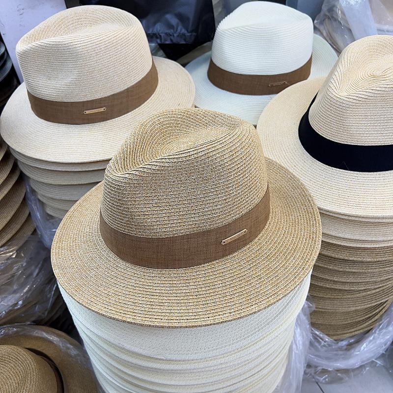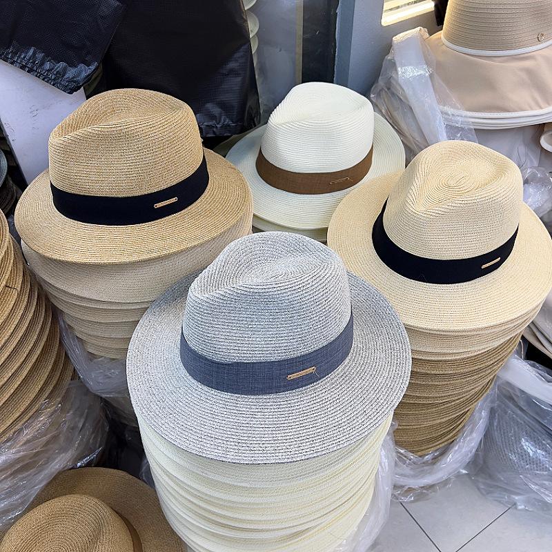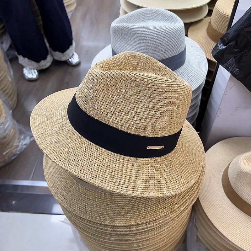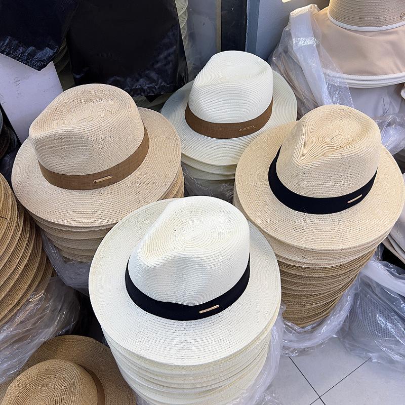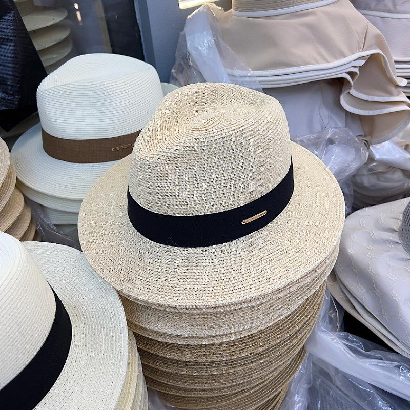 2025 Nuevo Sombrero de Paja Plegable para Mujer Verano Francés Jazz Sombrero de Copa Británico Retro Parasol Sombrero de Playa para la Costa
