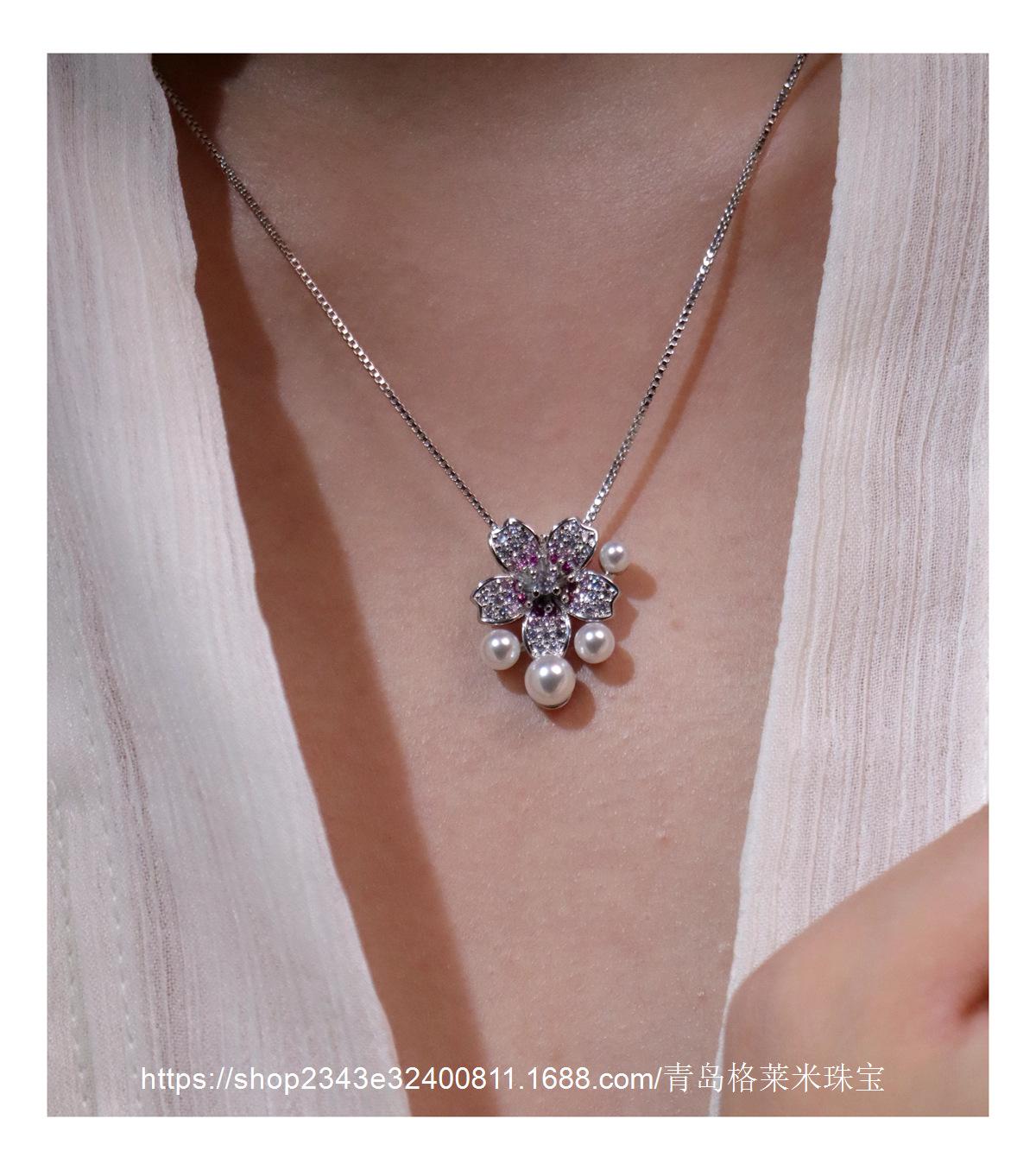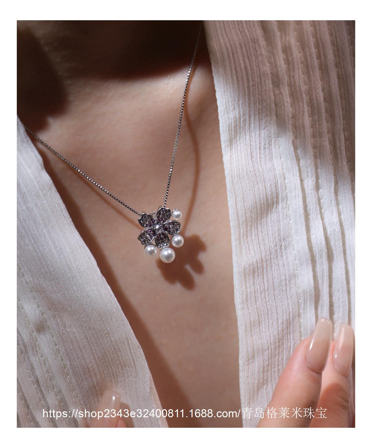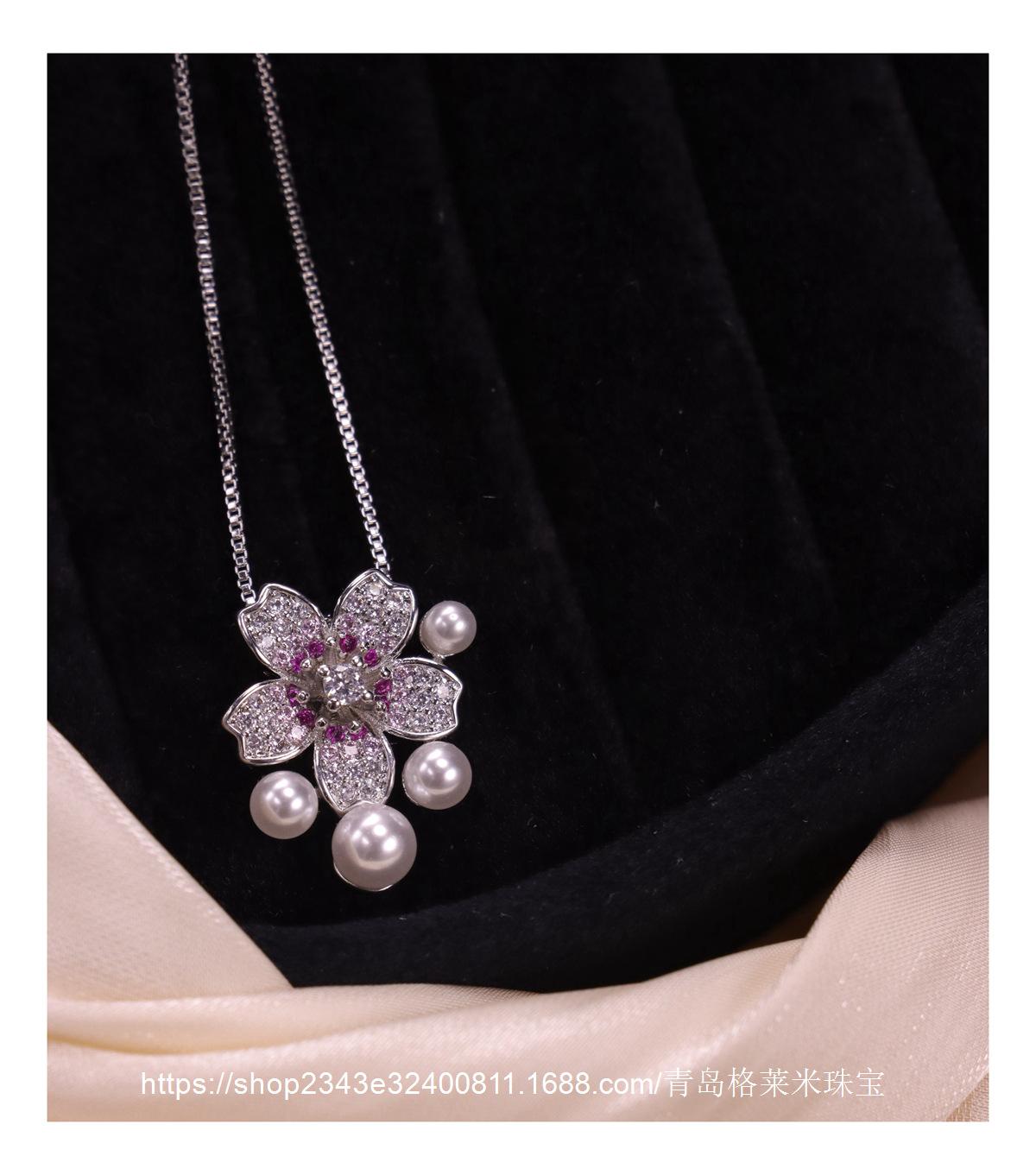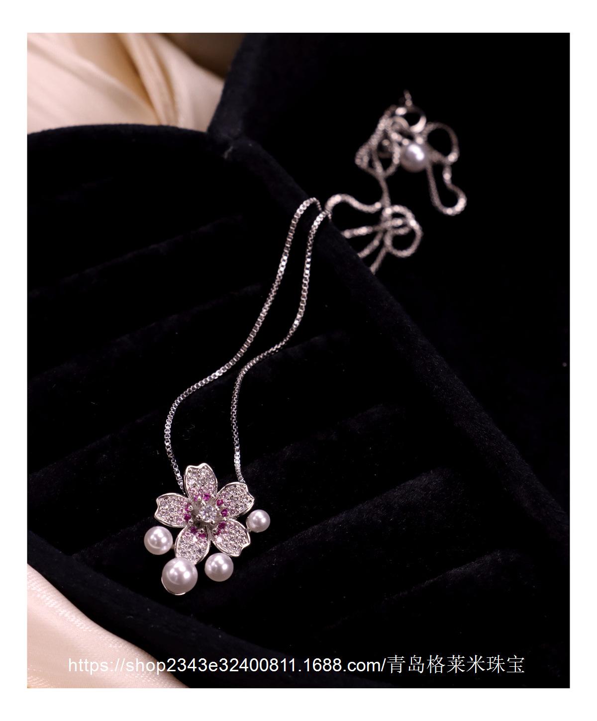 Collar con colgante de perlas y flores de moda para mujer, estilo dulce y moderno, personalizado, con explosiones transfronterizas, cadena de clavícula con microincrustaciones de circonitas de alta calidad.