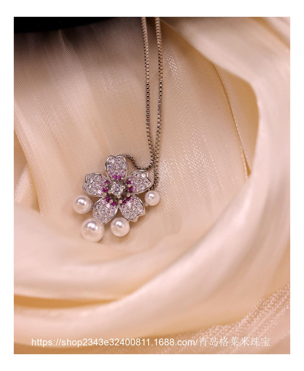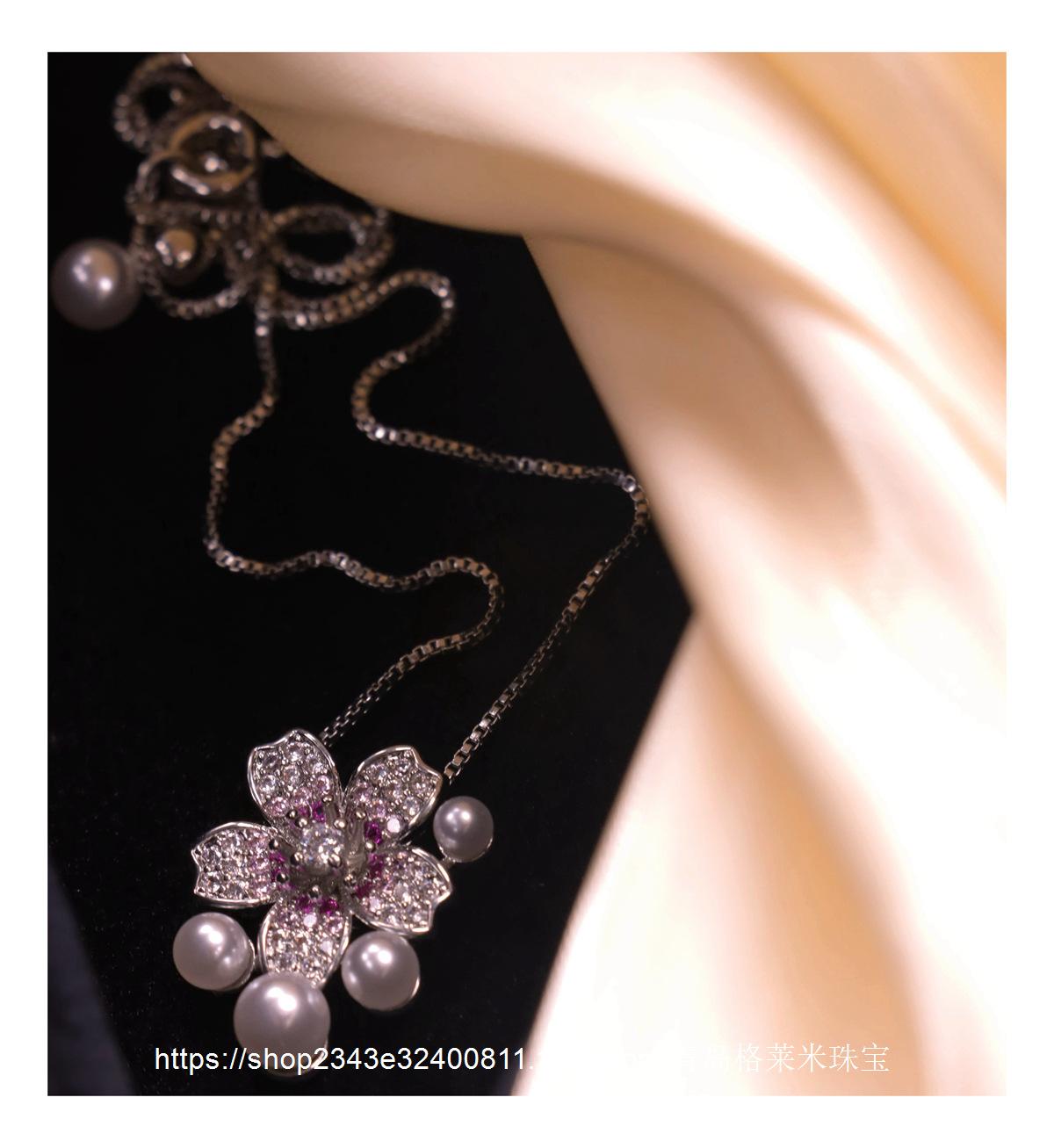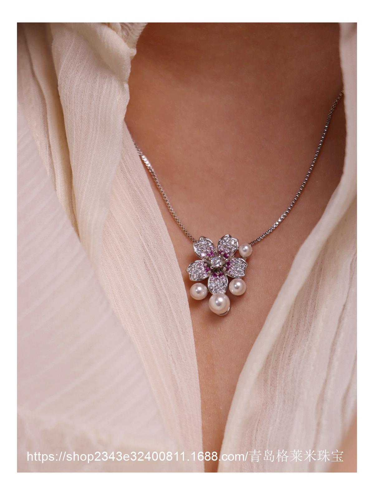 Collar con colgante de perlas y flores de moda para mujer, estilo dulce y moderno, personalizado, con explosiones transfronterizas, cadena de clavícula con microincrustaciones de circonitas de alta calidad.