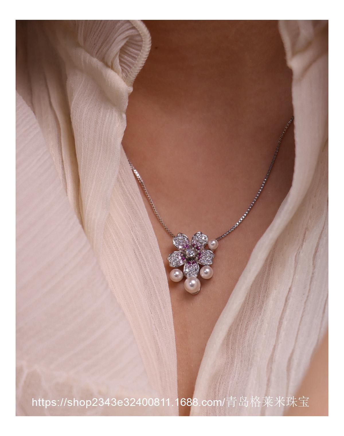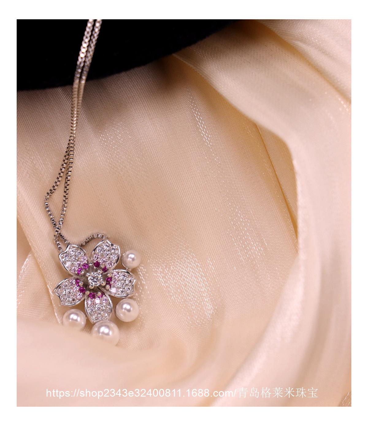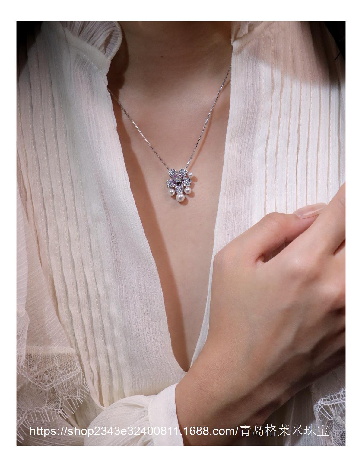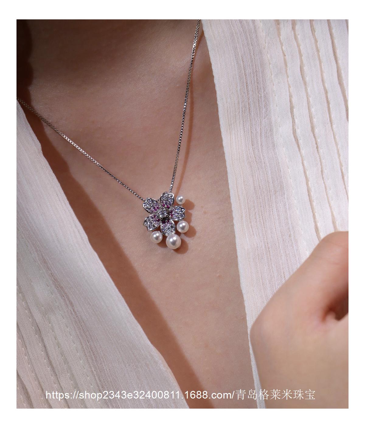 Collar con colgante de perlas y flores de moda para mujer, estilo dulce y moderno, personalizado, con explosiones transfronterizas, cadena de clavícula con microincrustaciones de circonitas de alta calidad.