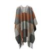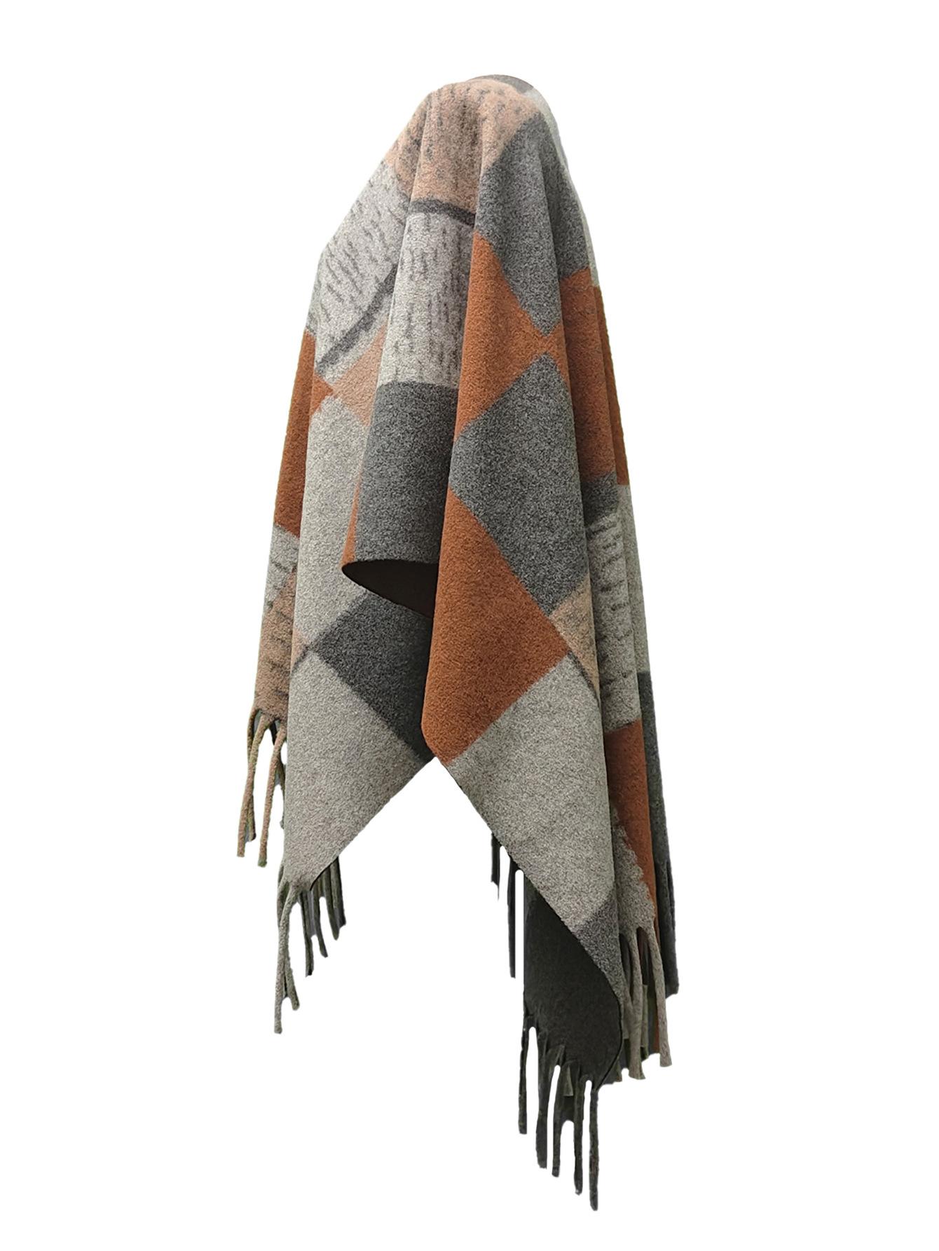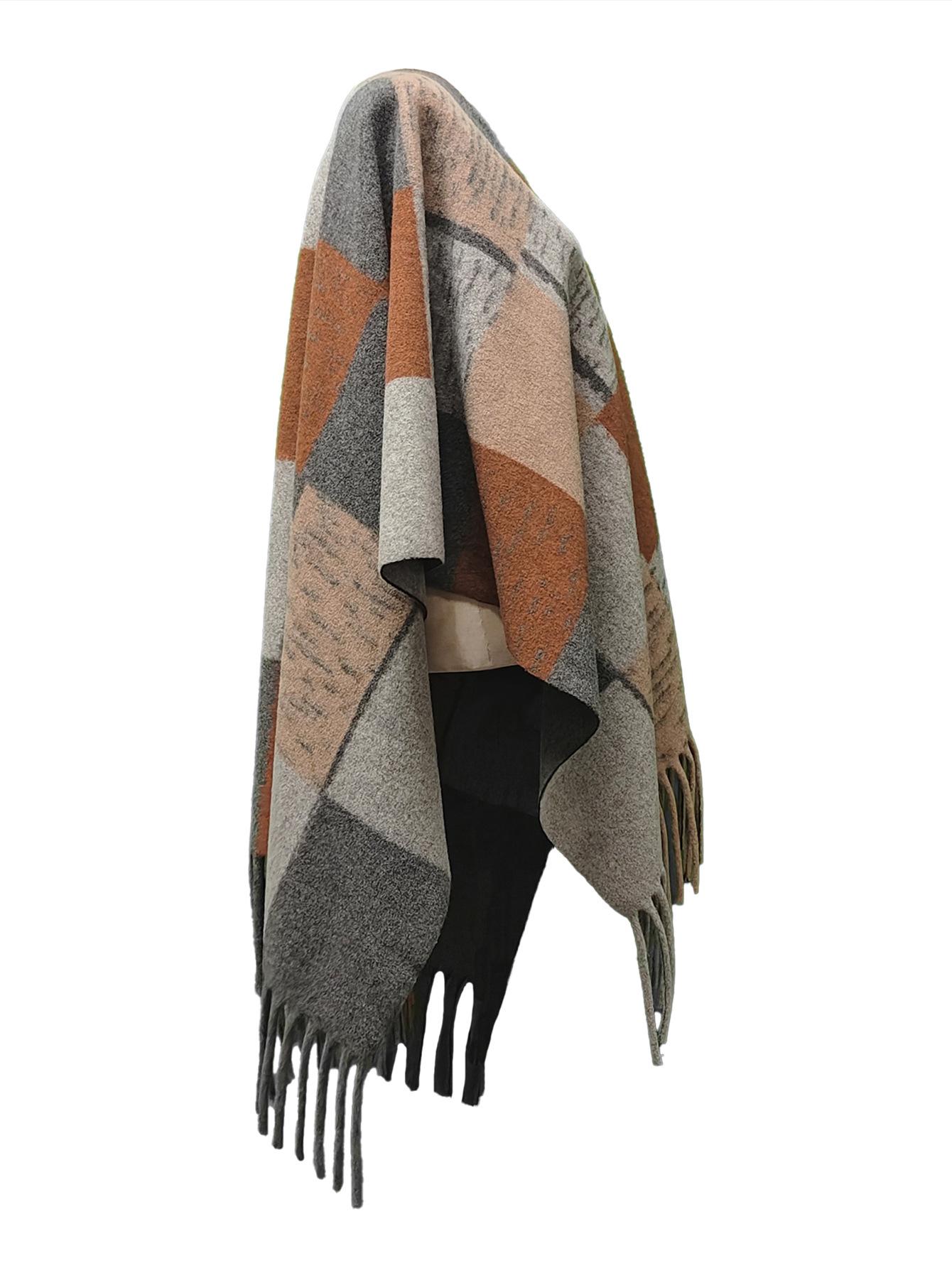 Orange and gray plaid slit shawl, length 1.7, width 1.82m grams