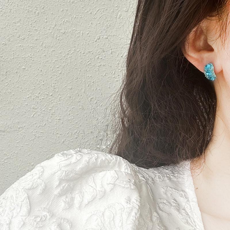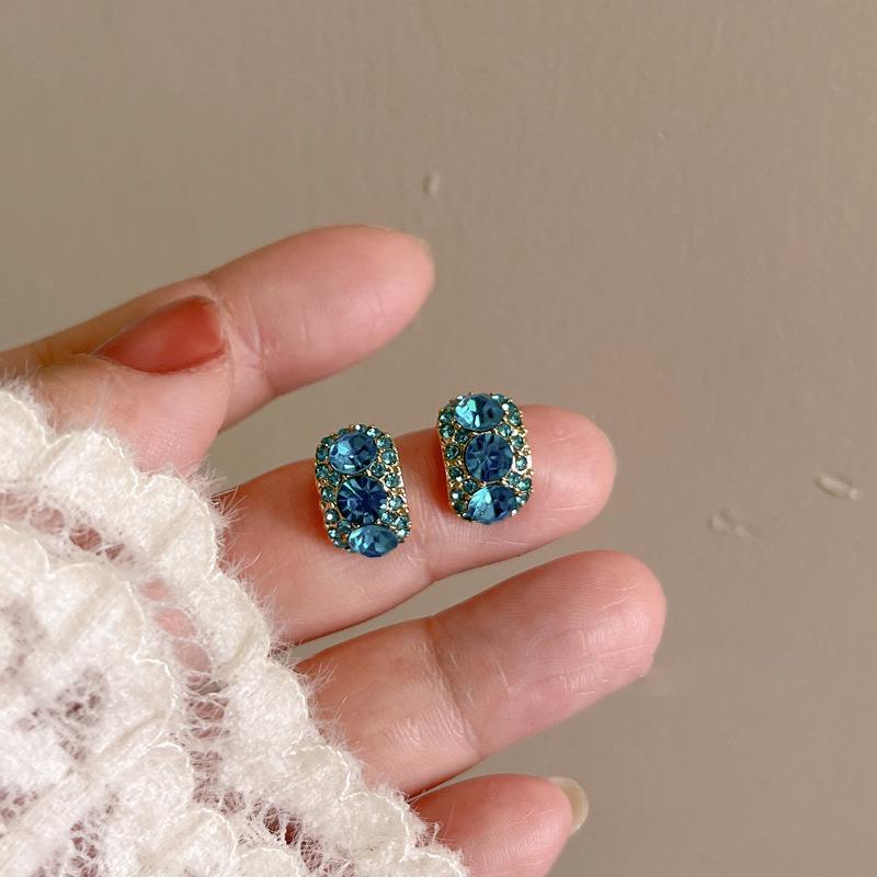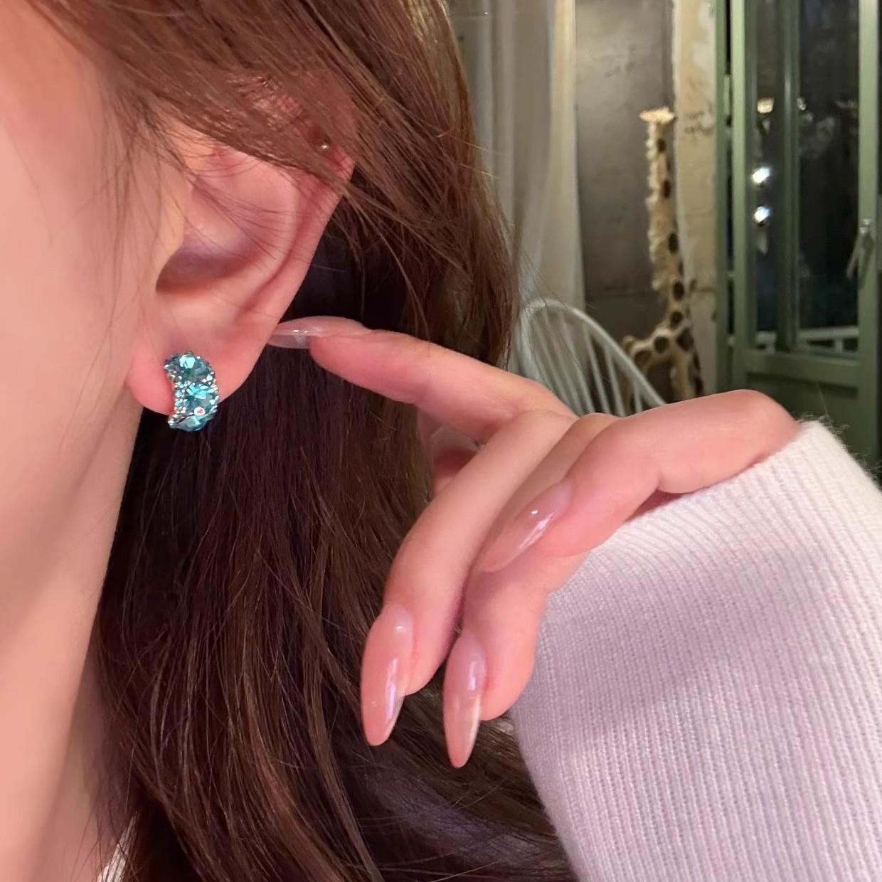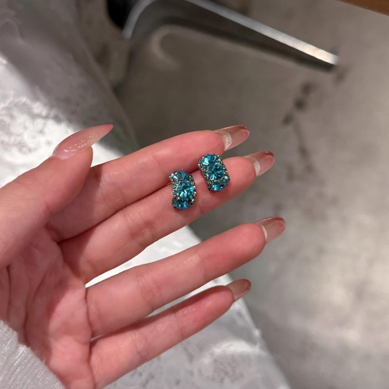 Aretes Azules Brillantes 2025 Nuevos Aretes de Cristal Diseño Nicho para Mujer de Alta Gama Lujo Ligero Elegantes Aretes Estilo Dama