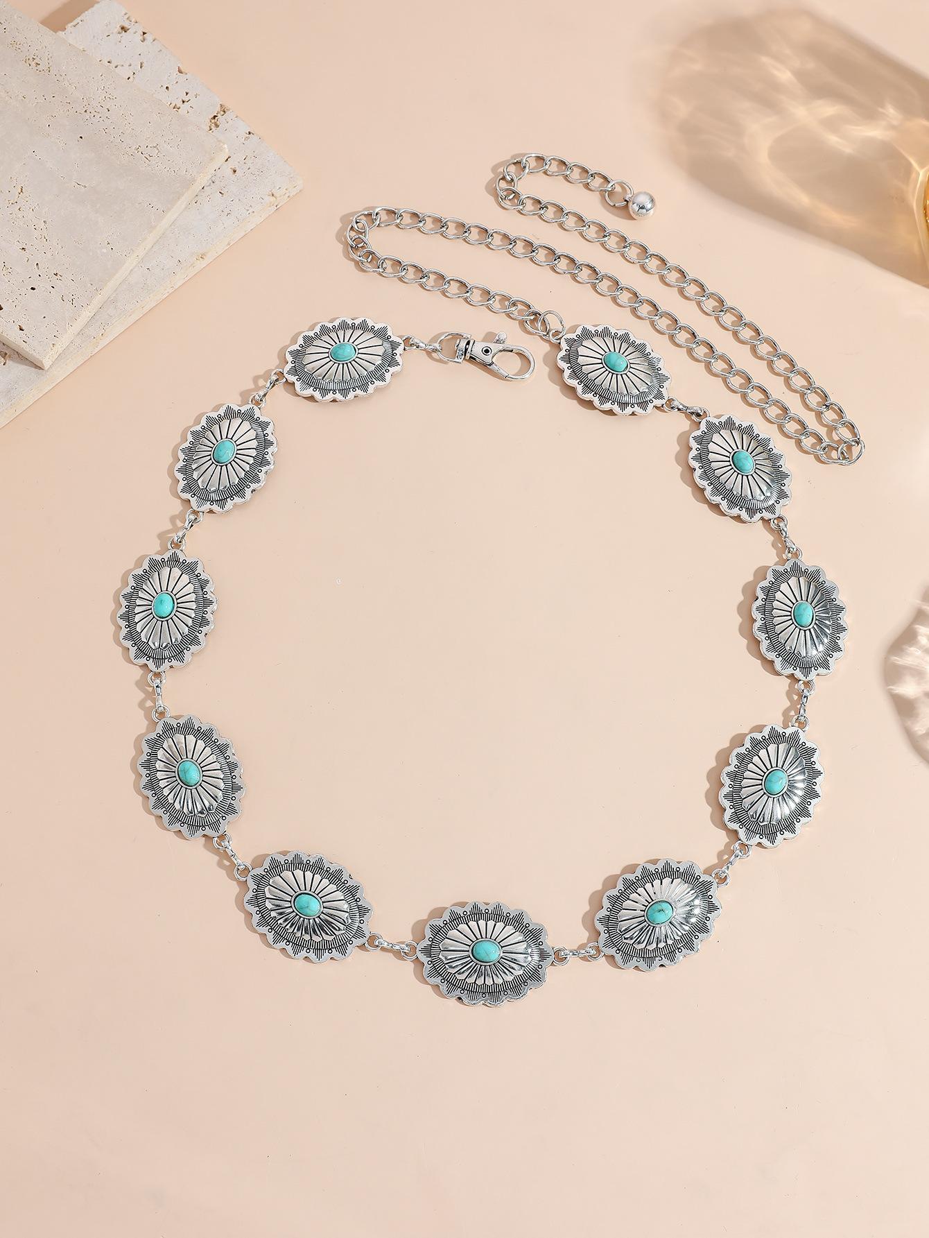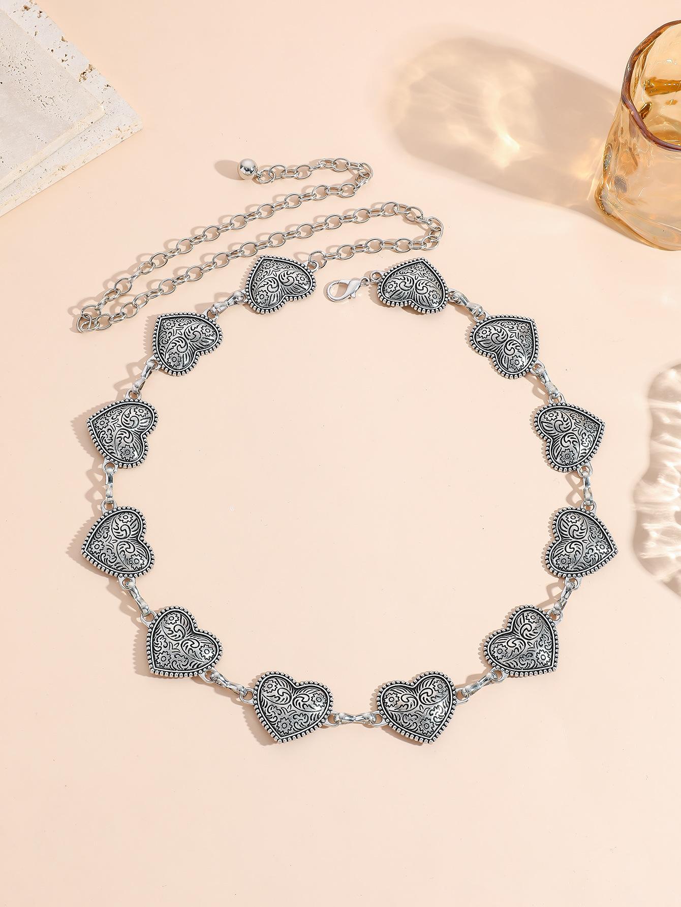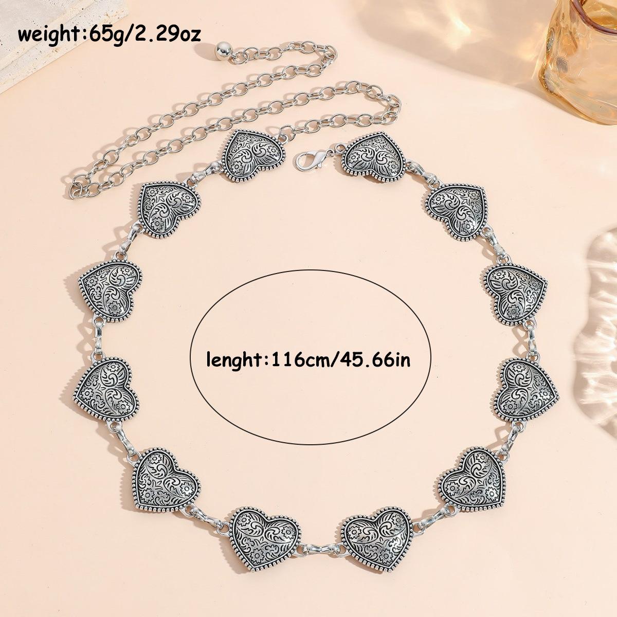 Joyería Transfronteriza Europea y Americana Bohemia Retro Plata Amor Cadena de Cintura Cinturón Metálico para Mujer Accesorios para Pantalones Falda