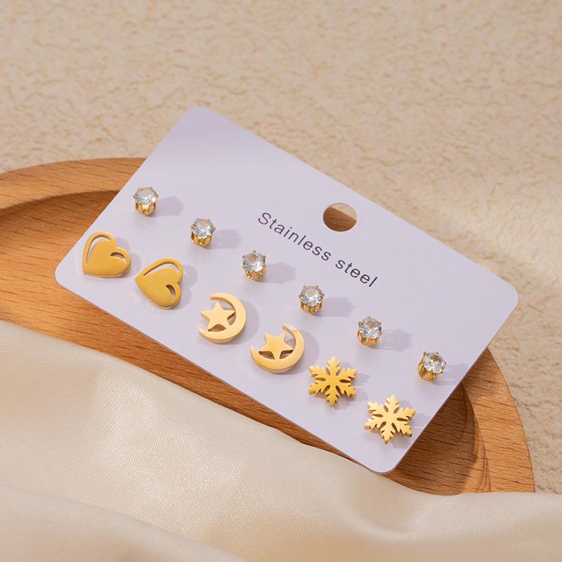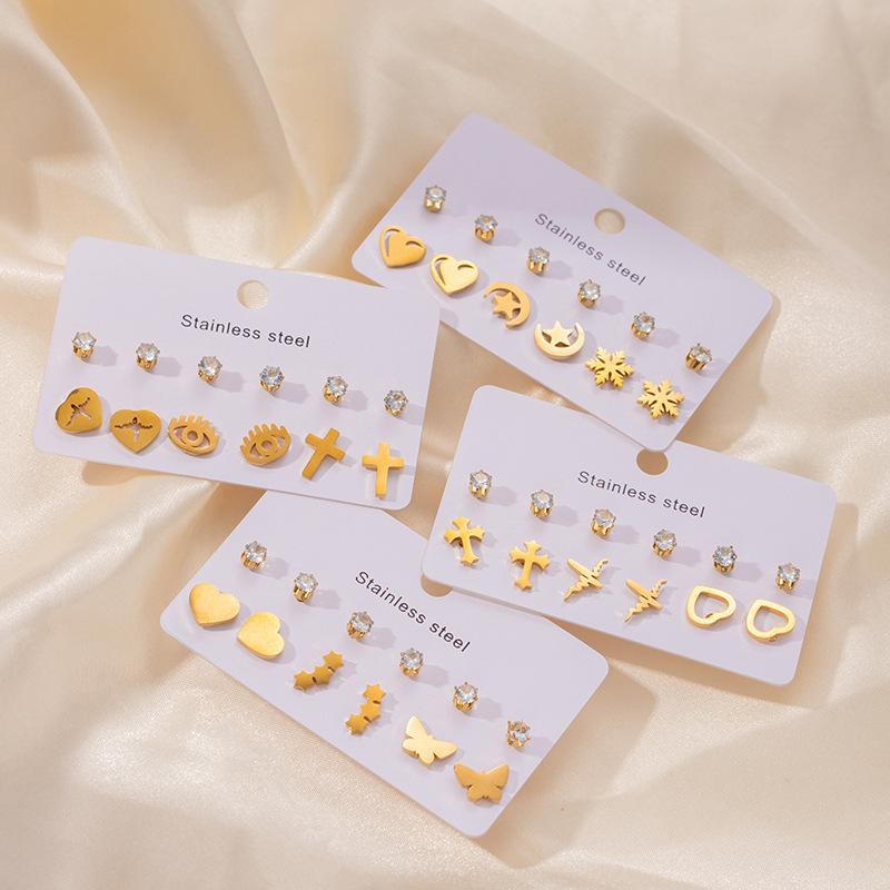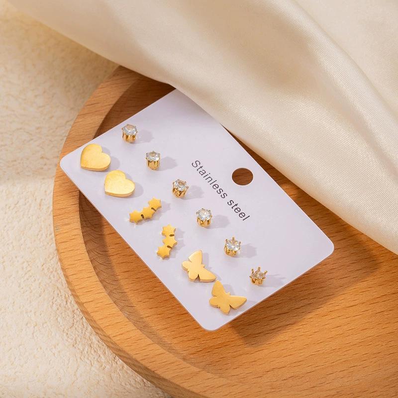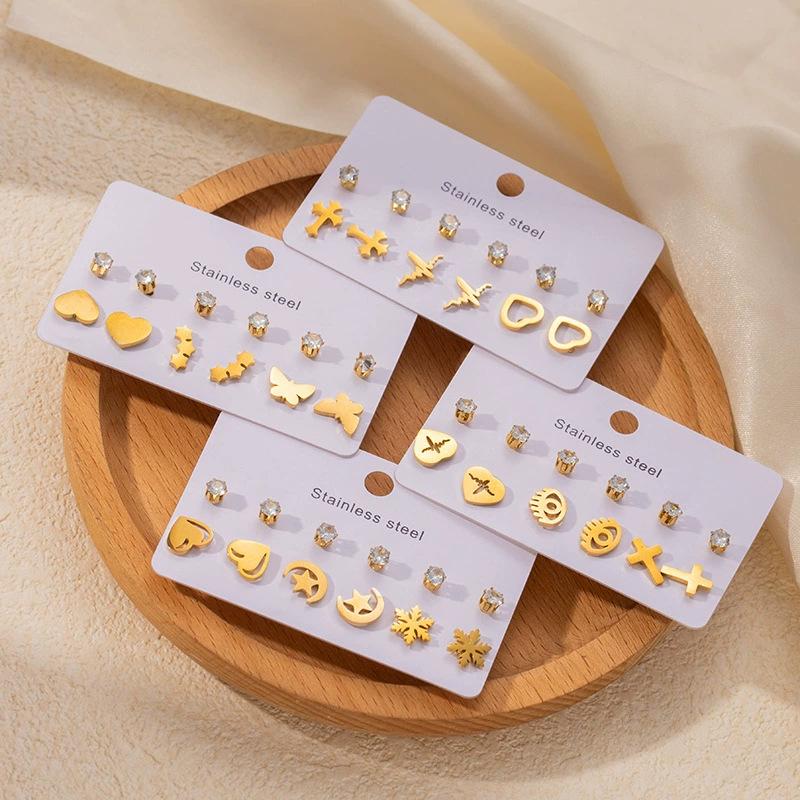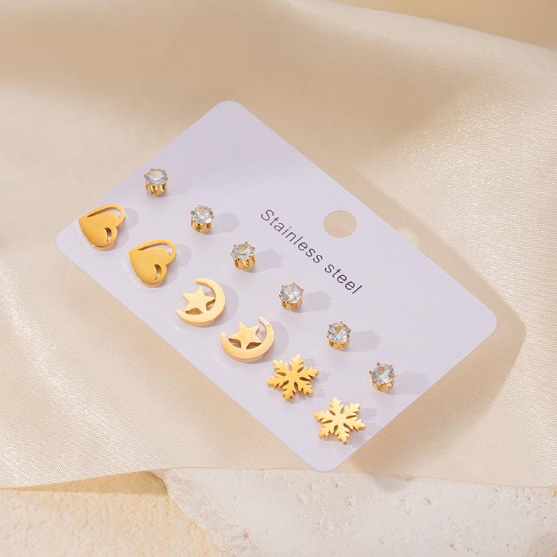 Pendientes de acero inoxidable con circonitas, pendientes de clip de una semana, pendientes de acero de titanio dorado, pendientes pequeños chapados en oro K.