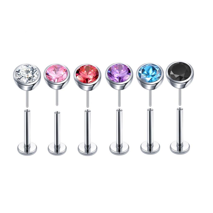 Pendientes de acero inoxidable 316L de verano con circonitas redondas para labio, uñas, estilo europeo y americano, con varillas insertables, joyería para piercings.