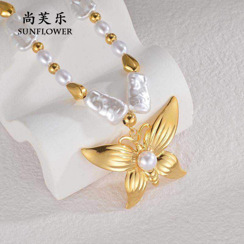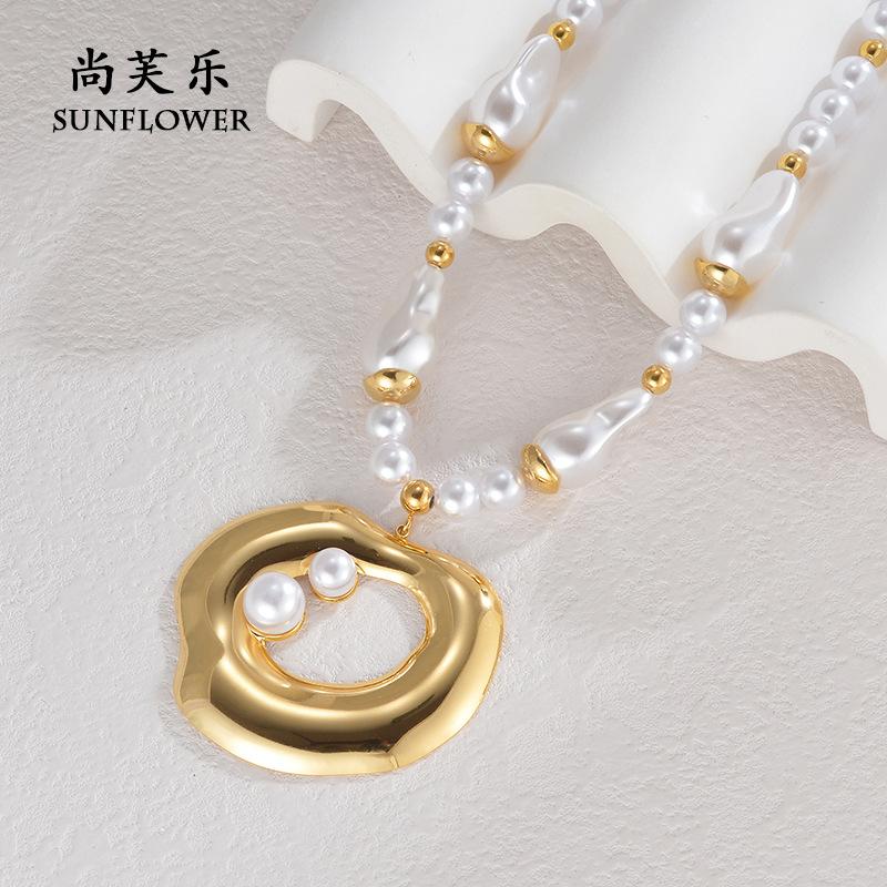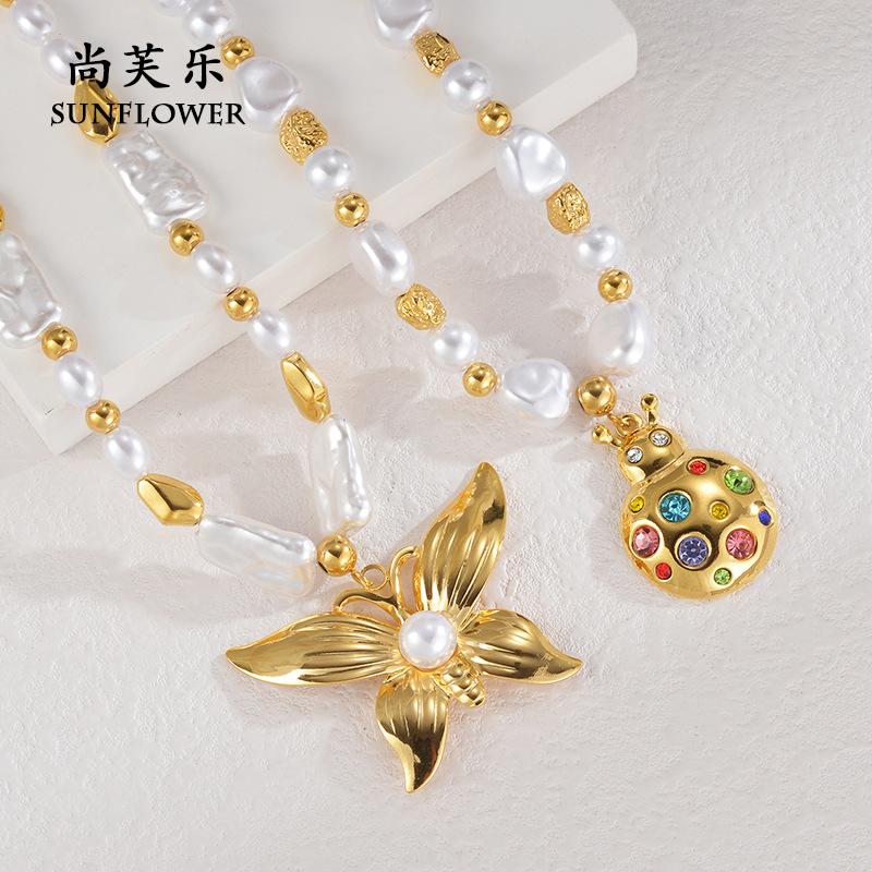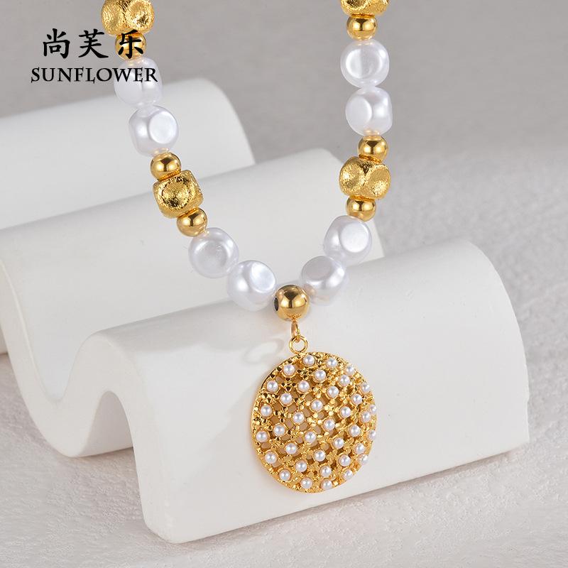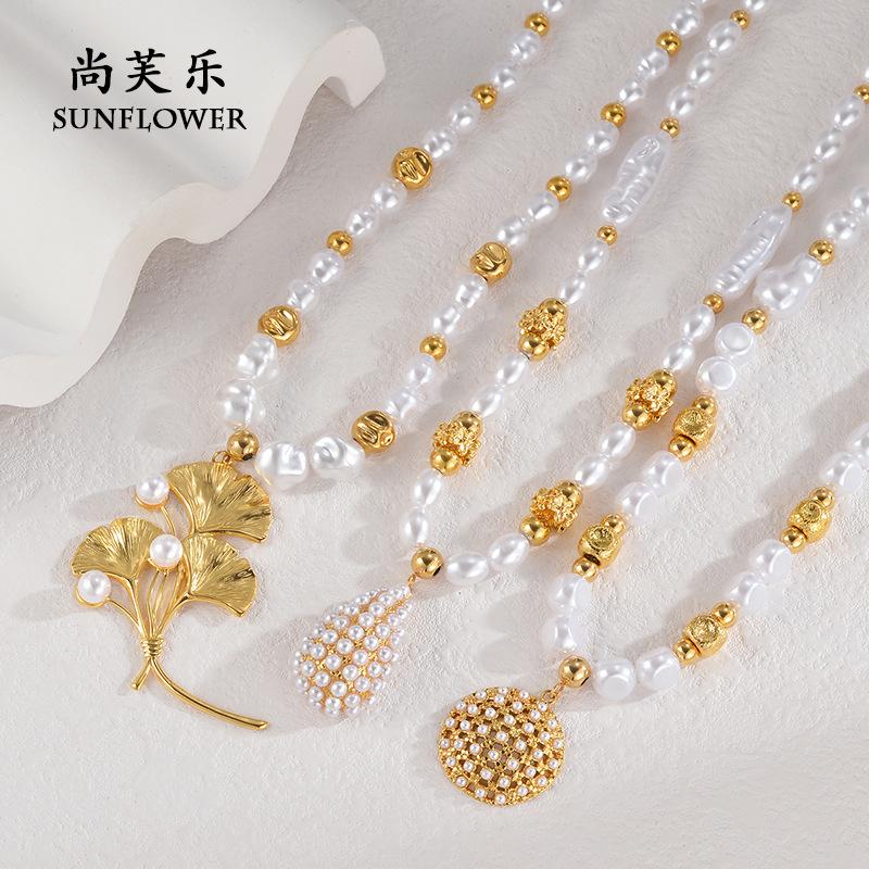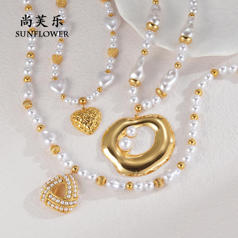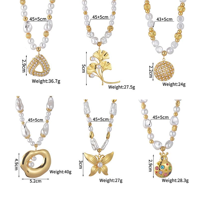 Moda Transfronteriza Elegante Collar de Perlas de Acero Inoxidable Oro de 18K Lujo Accesible Cadena de Clavícula Multielemento de Alta Gama