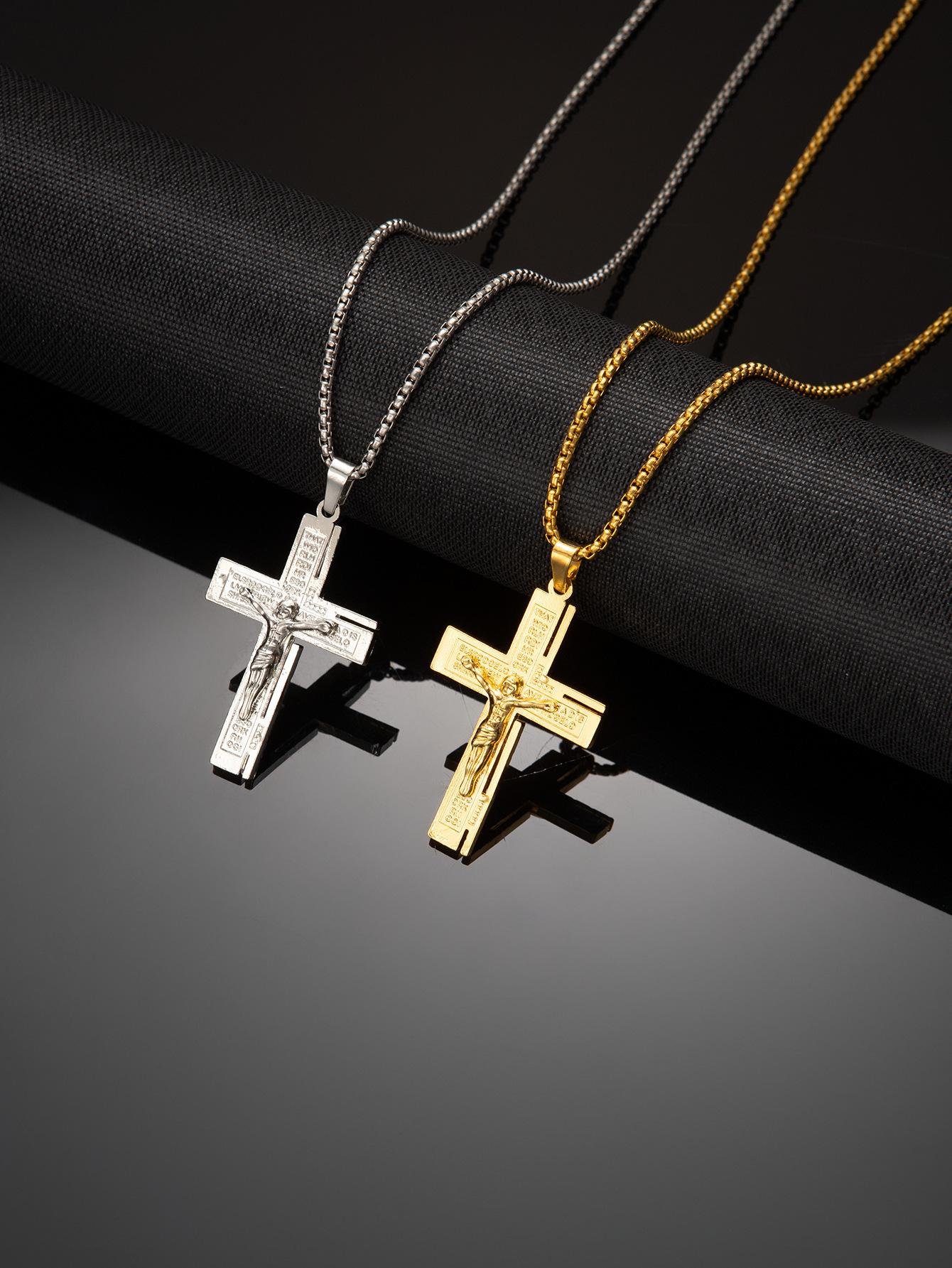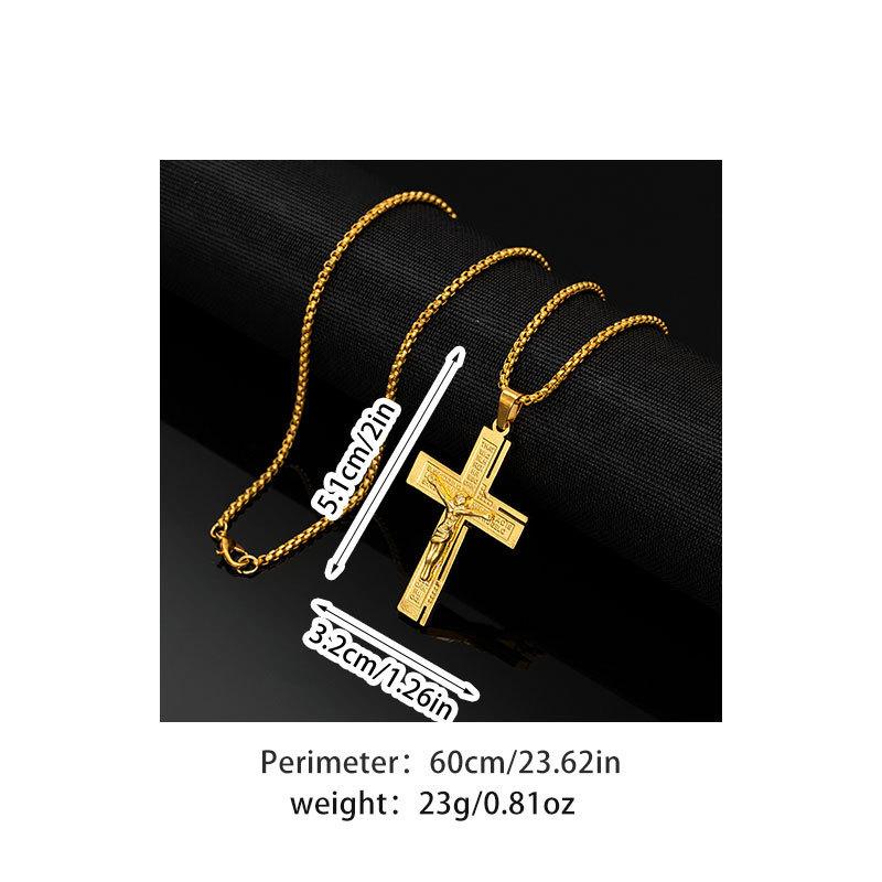 Collar Europeo y Americano Transfronterizo con Letras en Relieve Grabadas Cruz Acero Titanio Moderno Cool Lujo Ligero Sensación de Alta Gama Cadena de Lana para Hombres y Mujeres