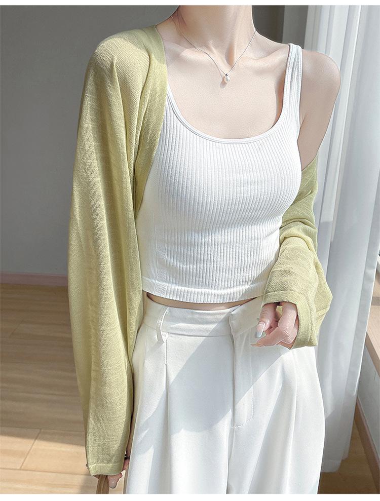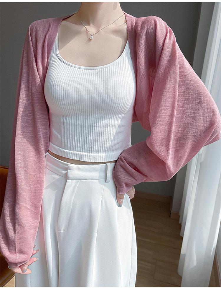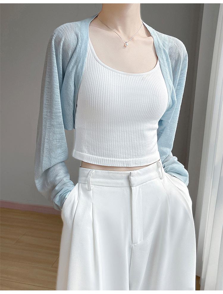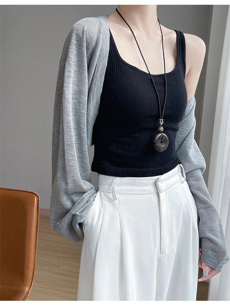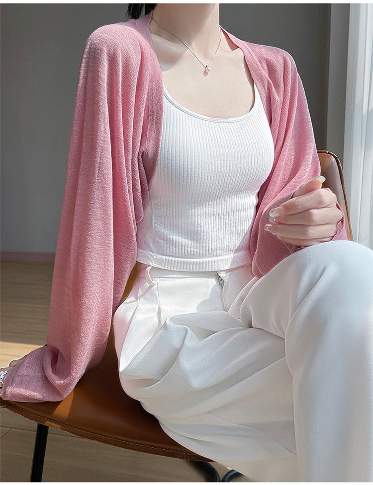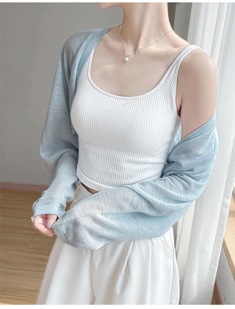 Cárdigan Delgado de Verano, Falda Delgada para Mujer, Blusa Blanca, Camisa de Manga Larga para Protección Solar, Chal Holgado de Punto con Chaleco Pequeño