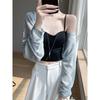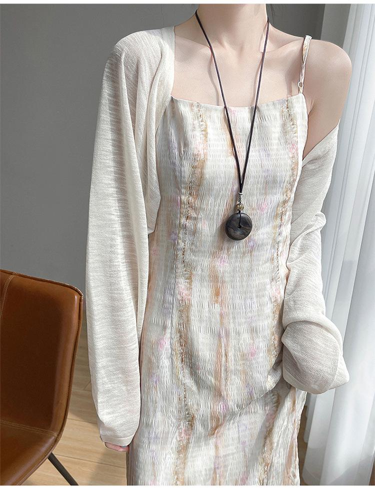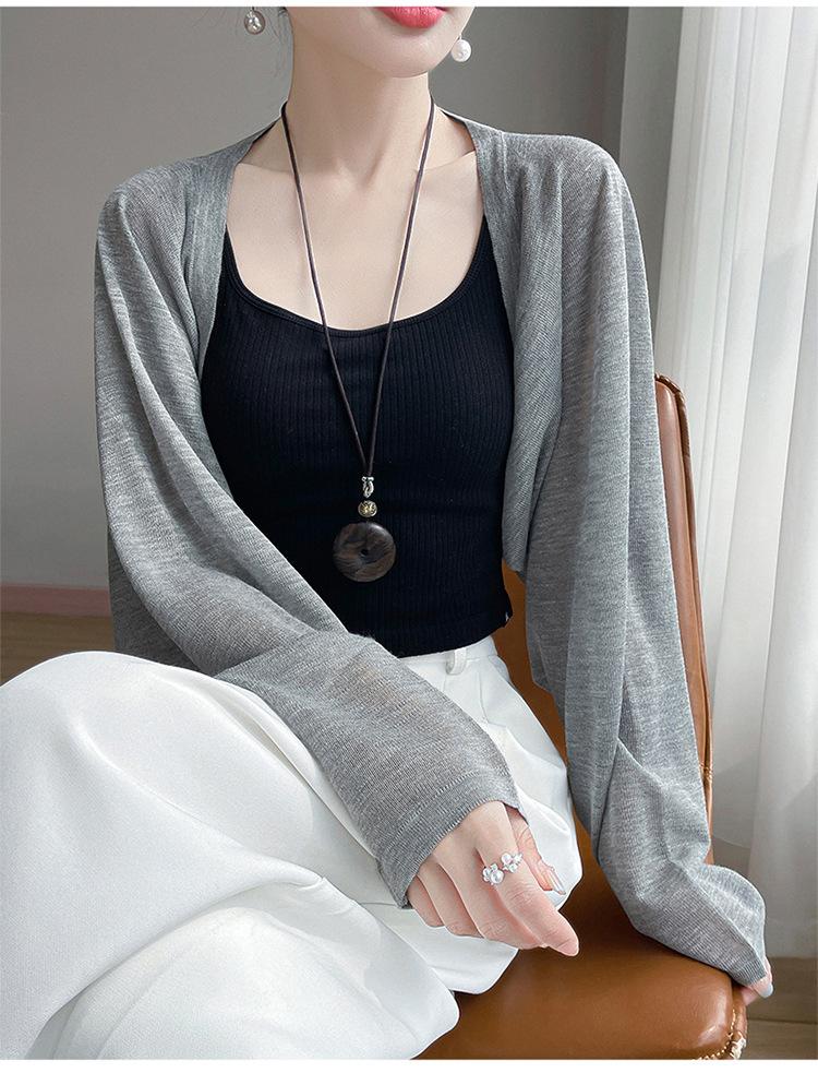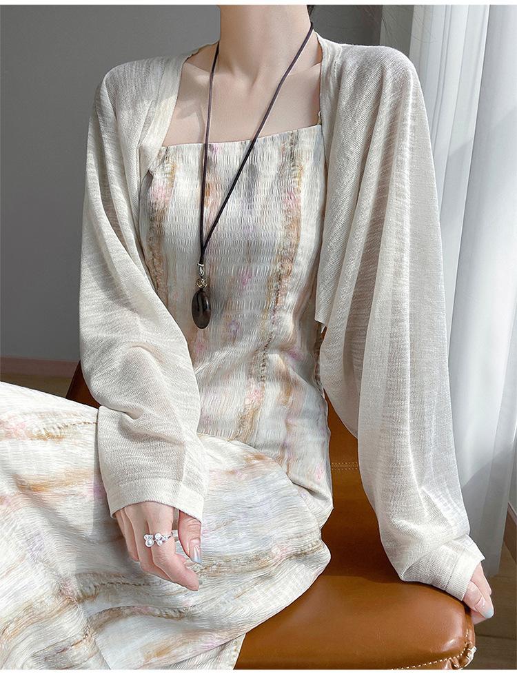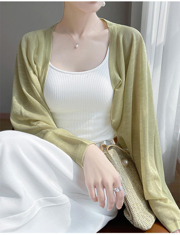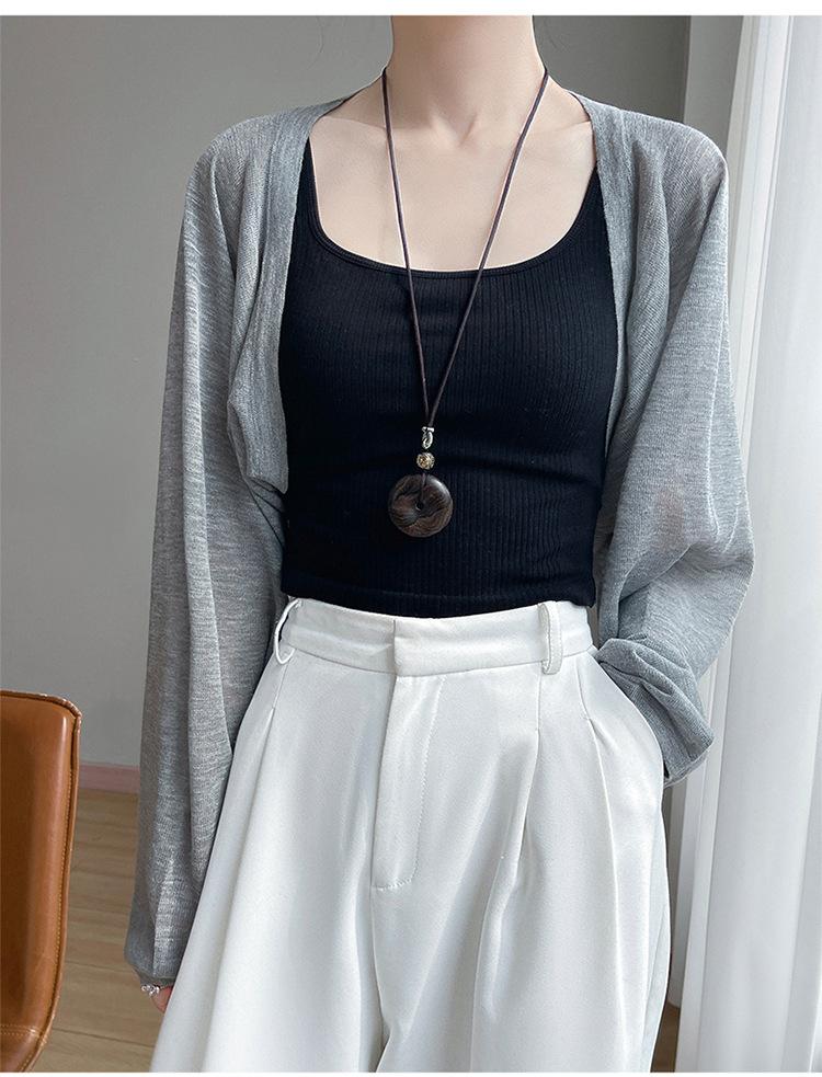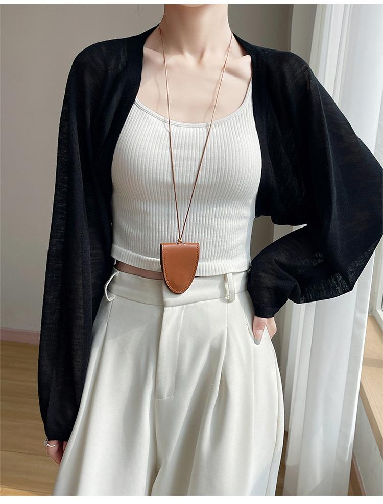 Cárdigan Delgado de Verano, Falda Delgada para Mujer, Blusa Blanca, Camisa de Manga Larga para Protección Solar, Chal Holgado de Punto con Chaleco Pequeño