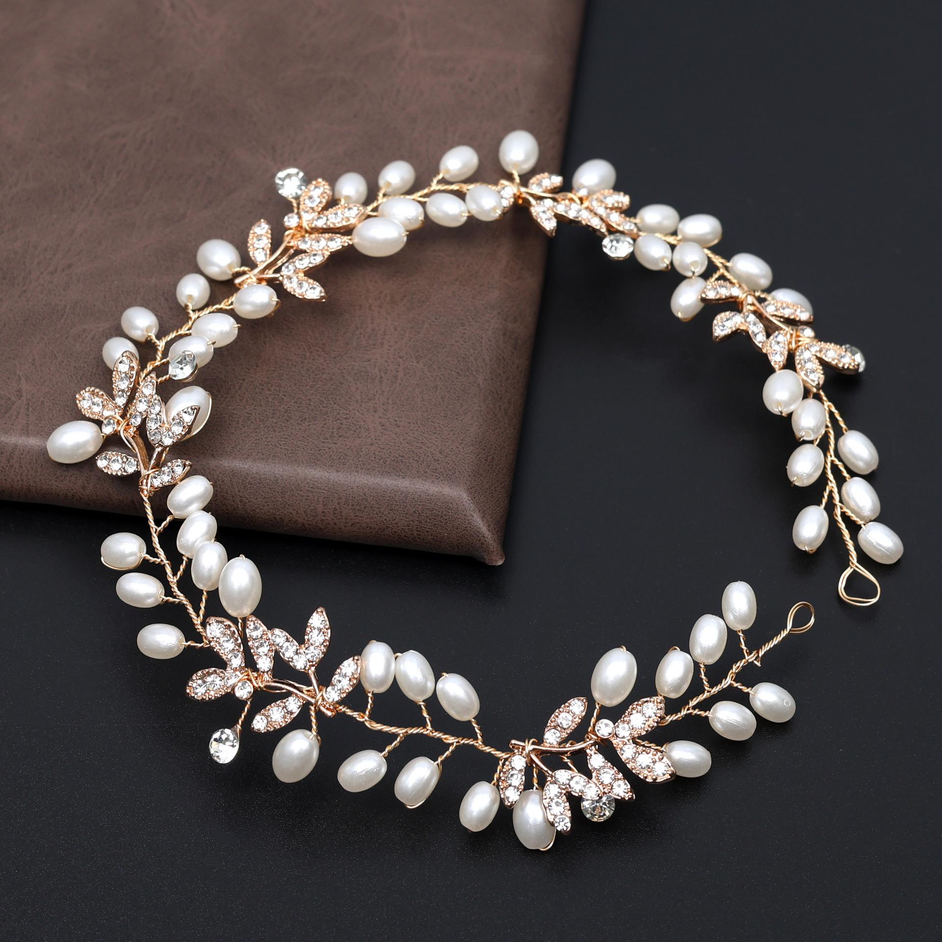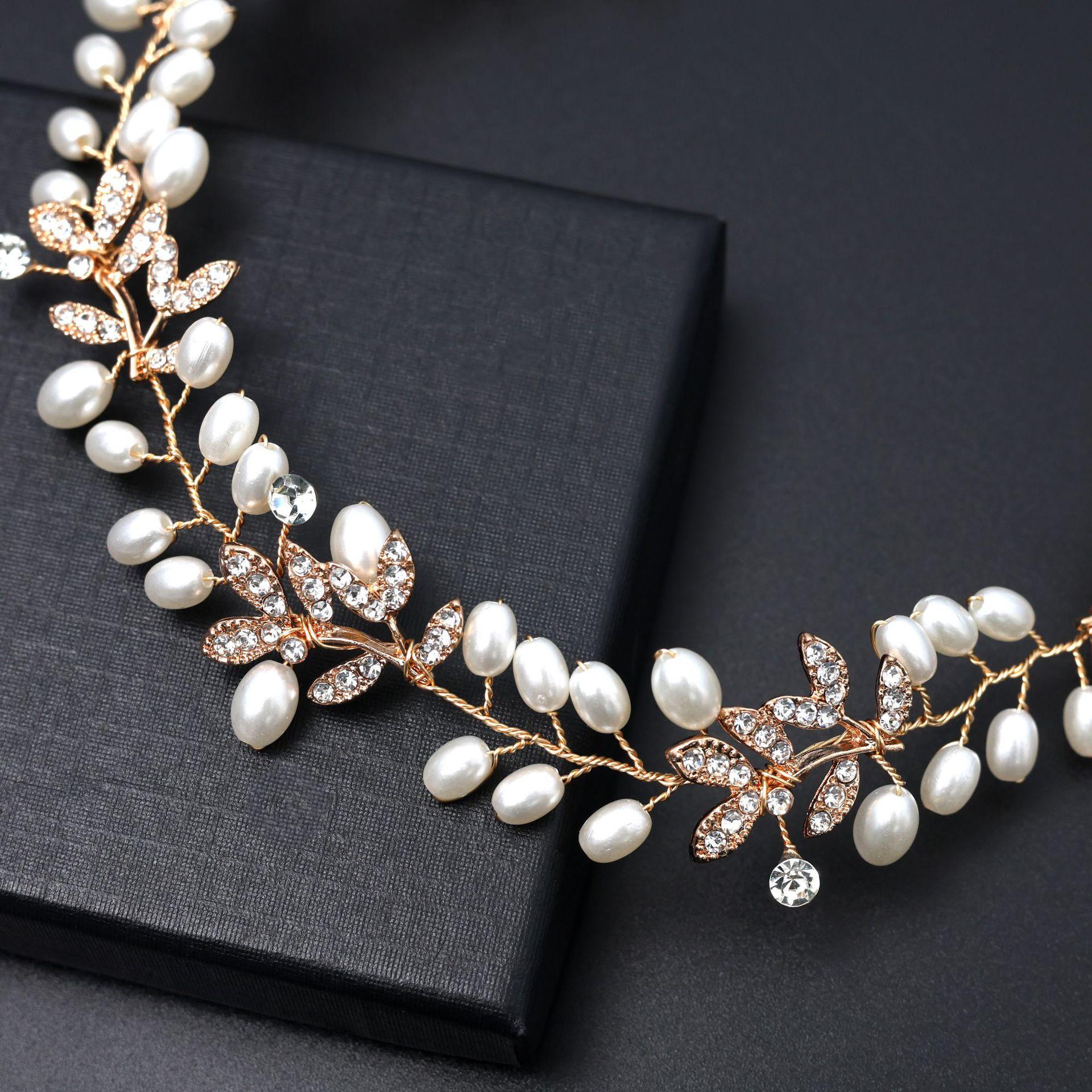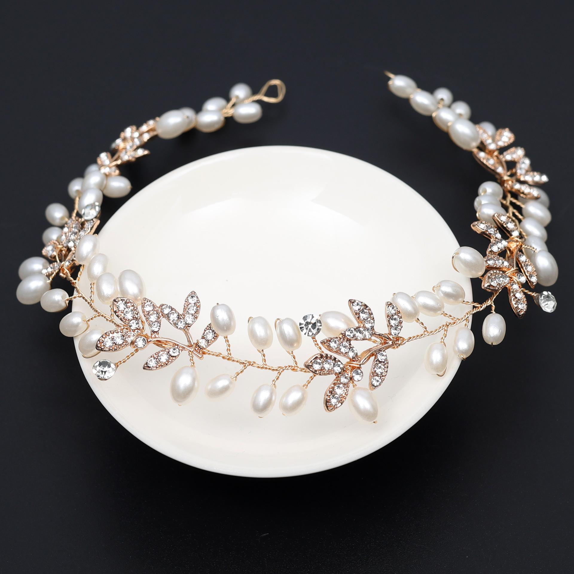 Diadema Nupcial de Comercio Exterior Decoración de Aleación de Pedrería Amazon Hecho a Mano Tocado Aro para el Cabello de Perlas Tocado para el Cabello