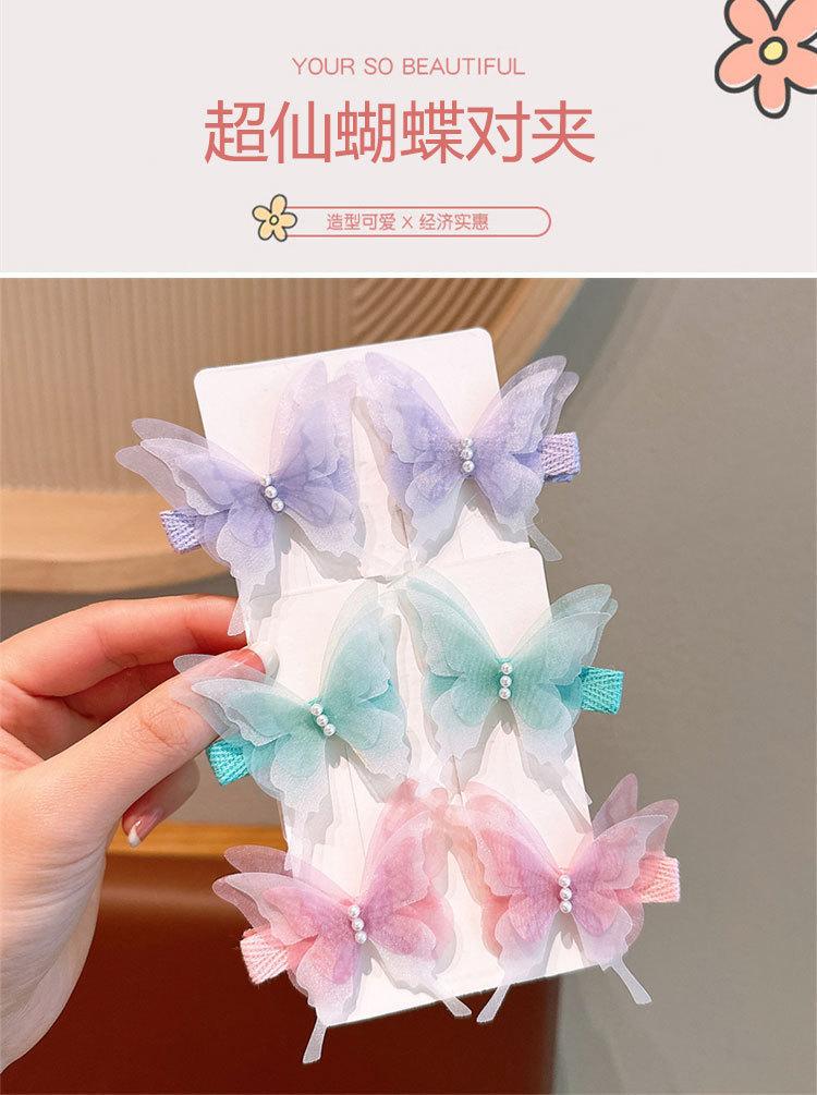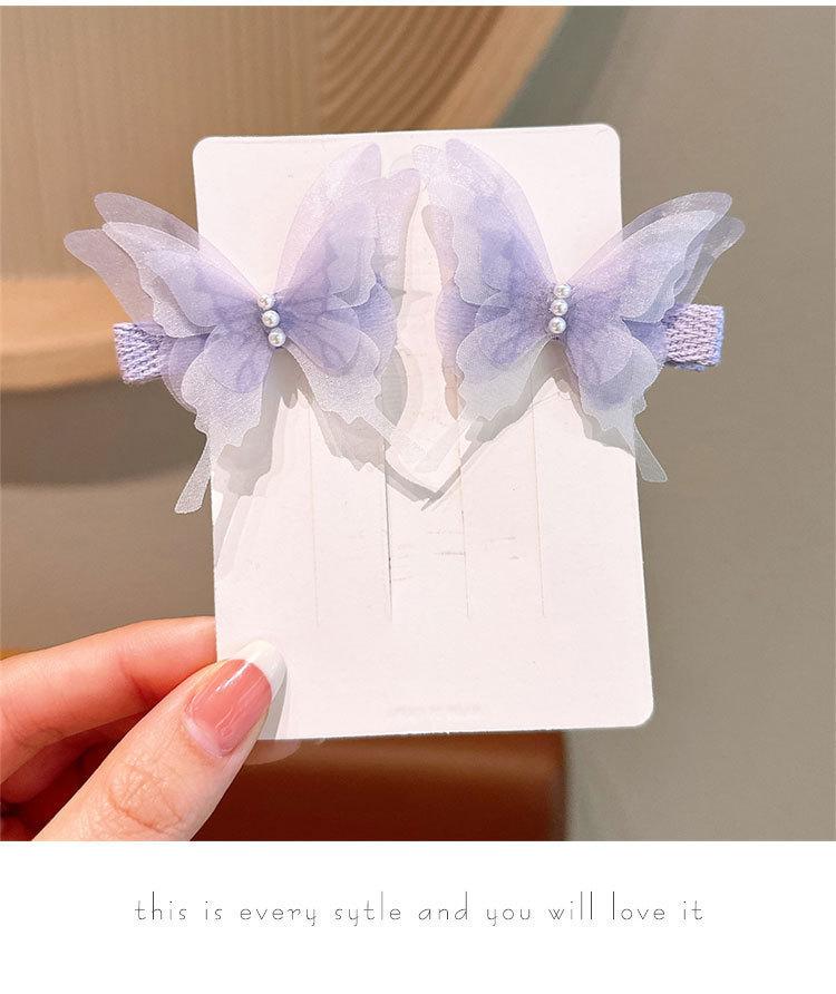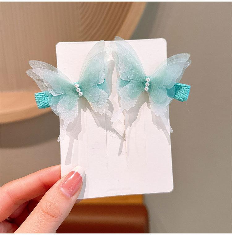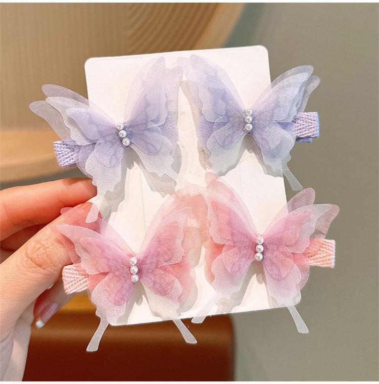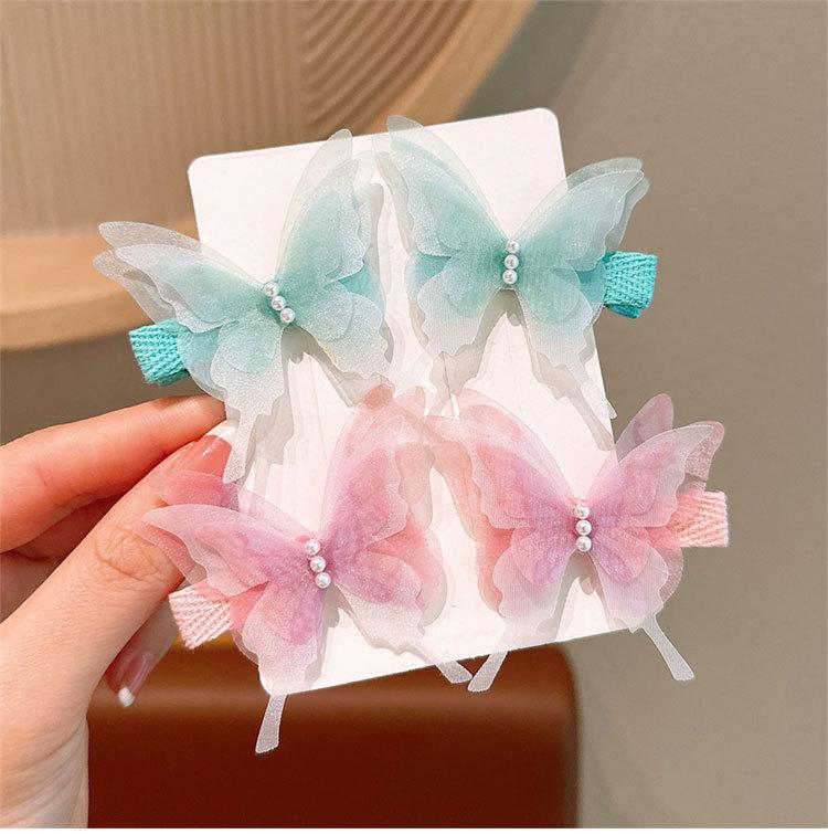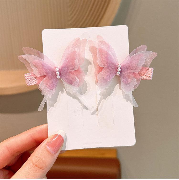 Horquilla de mariposa tridimensional antigua, lindos accesorios para el cabello para niños, horquilla de tela para niñas, tocado con clip lateral de perla para niñas
