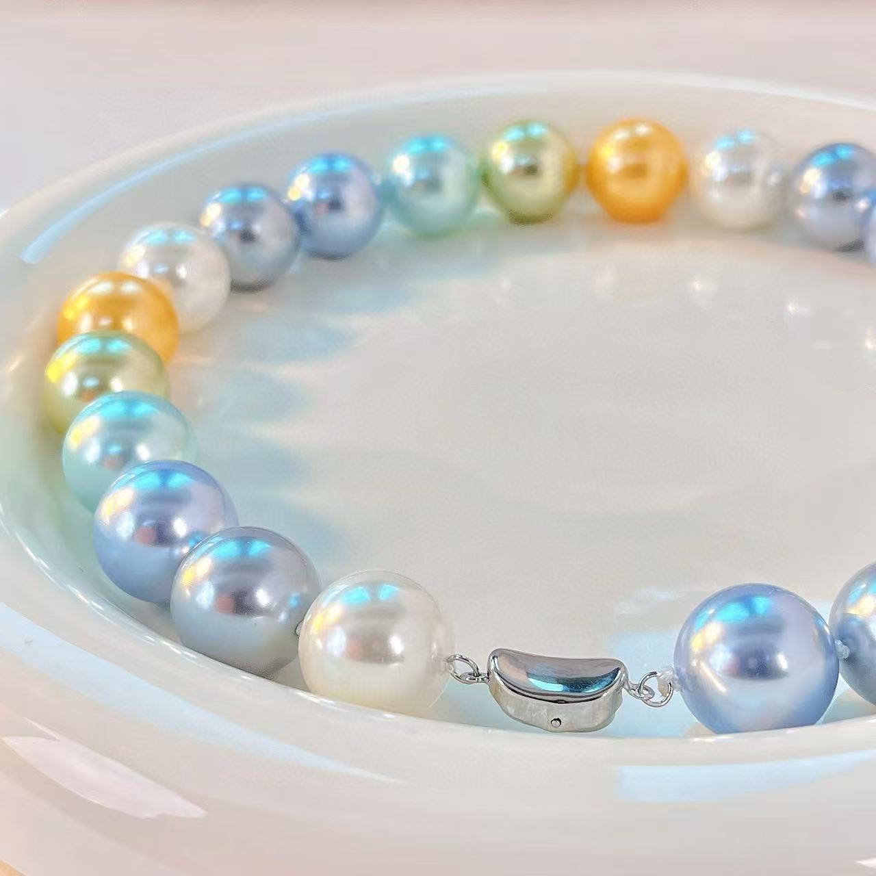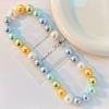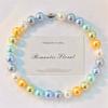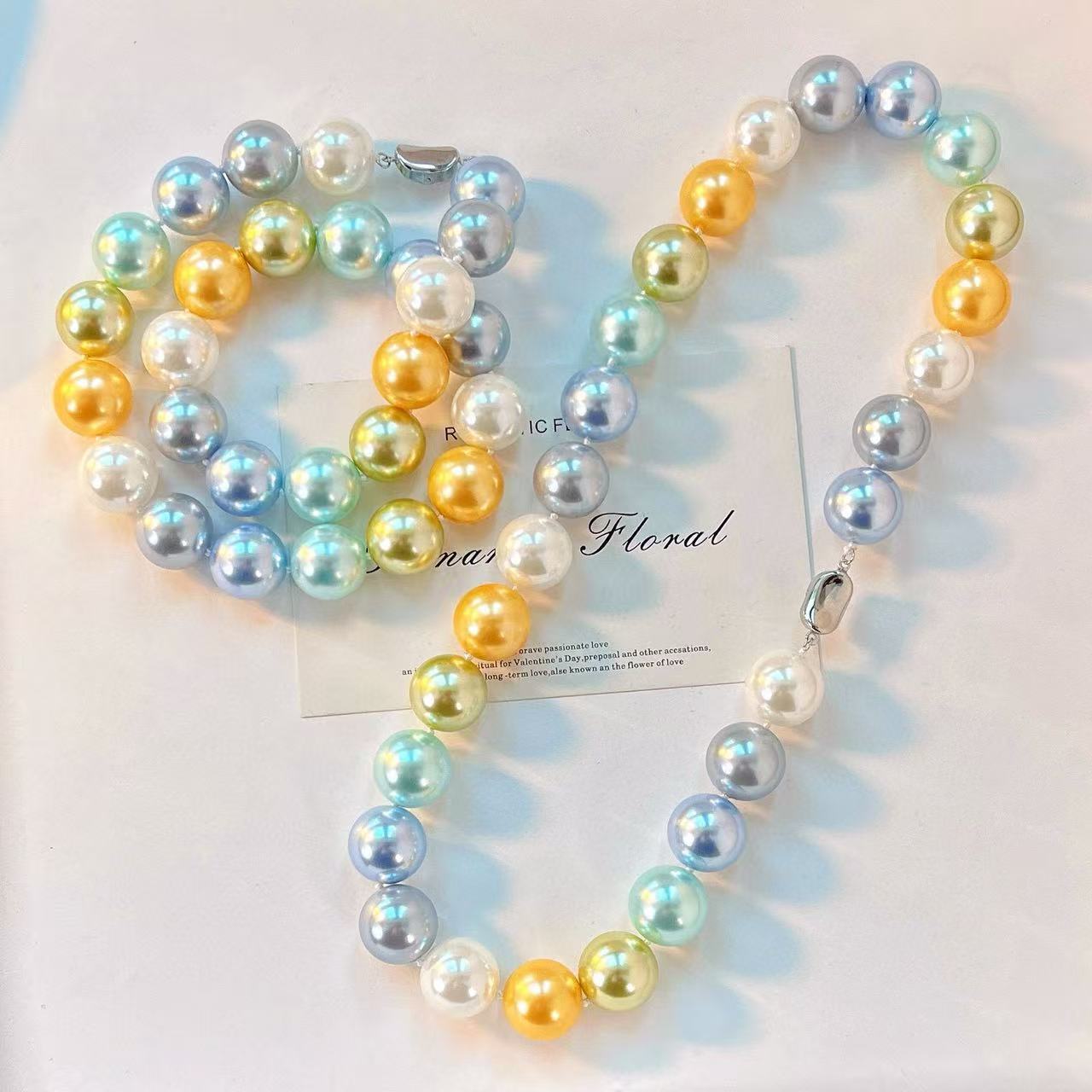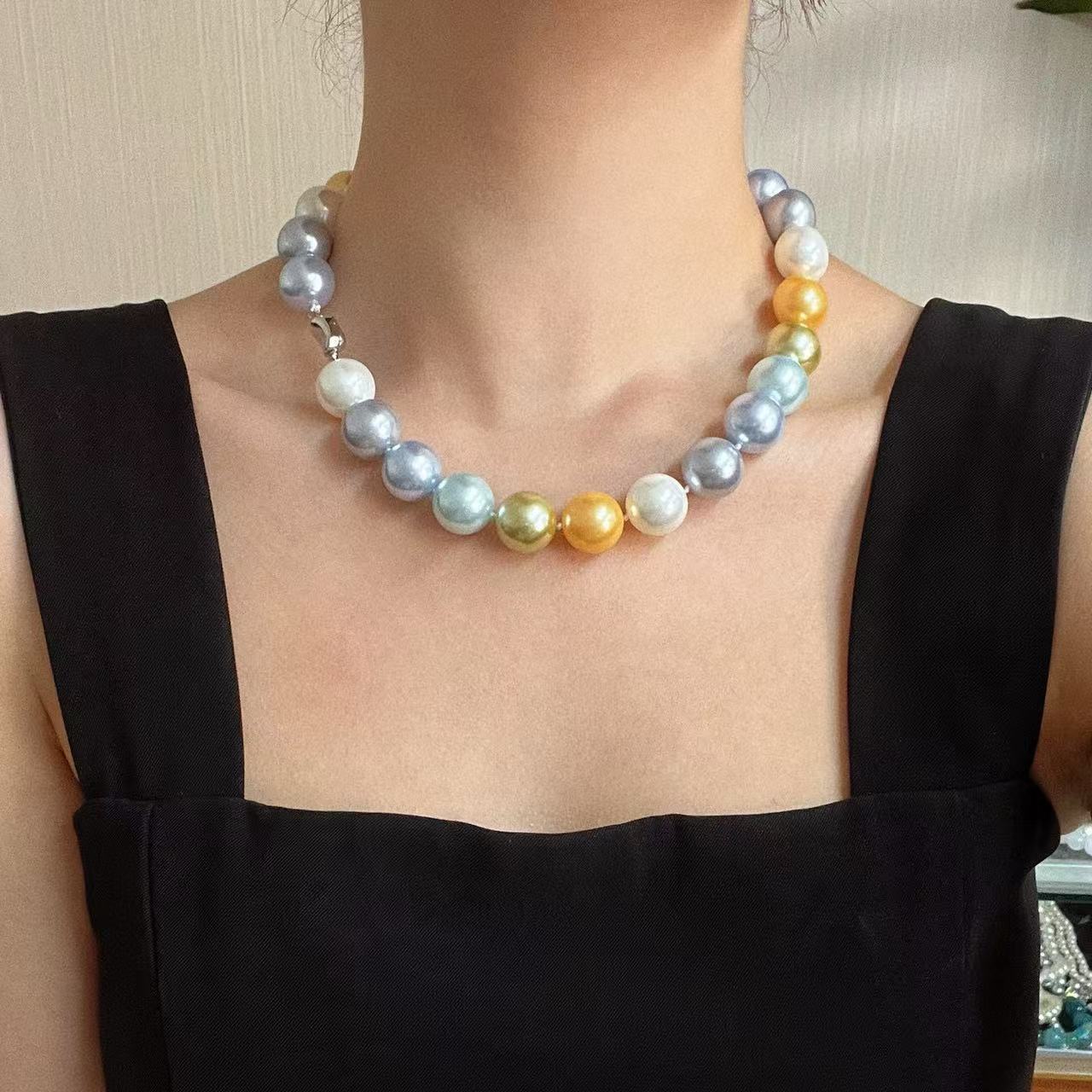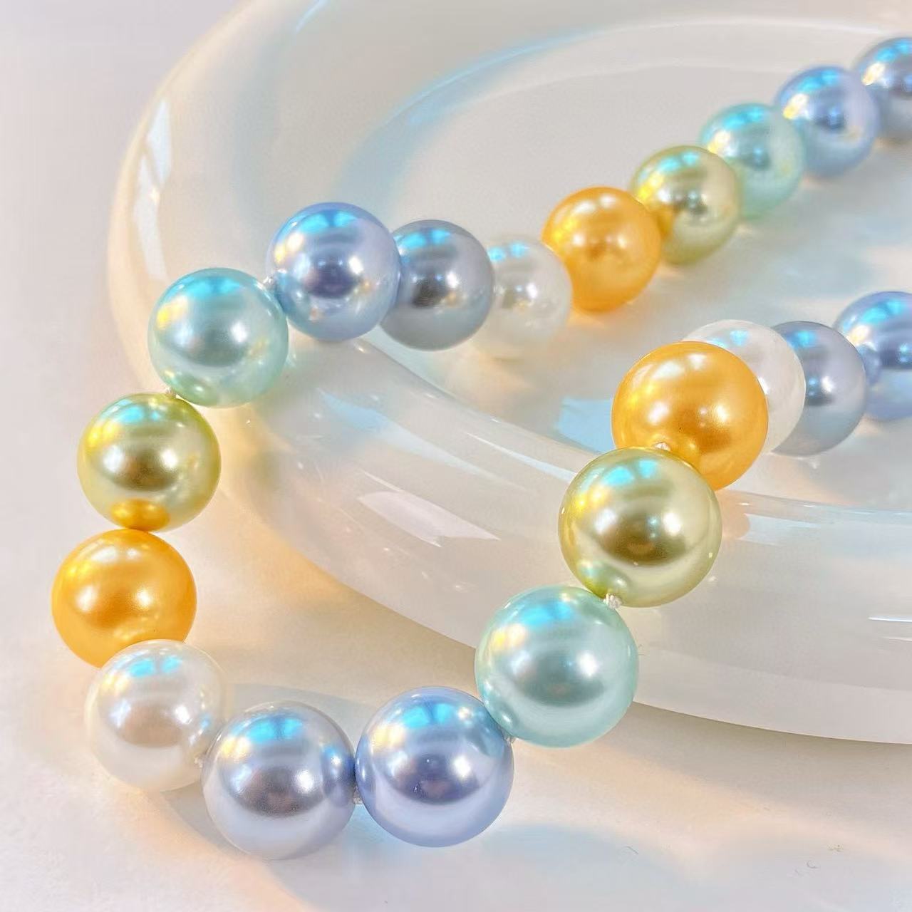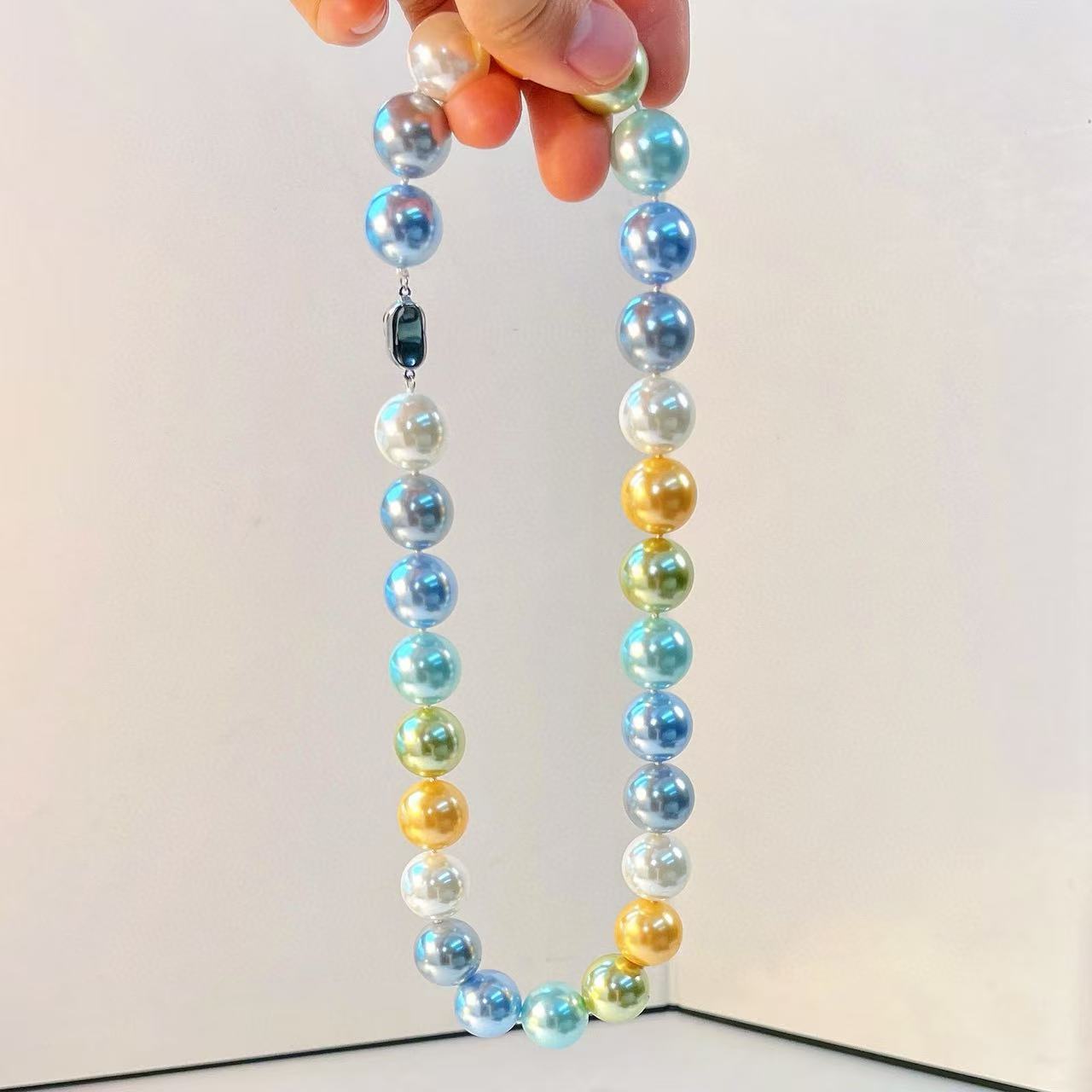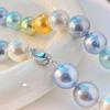 Collar de perlas artificiales de cristal azul neblina redondas de grano grande de alta calidad con resorte de 16 mm y cadena de clavícula.