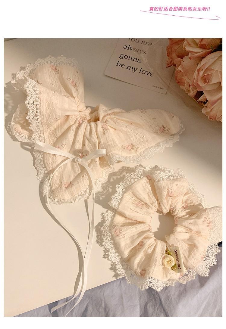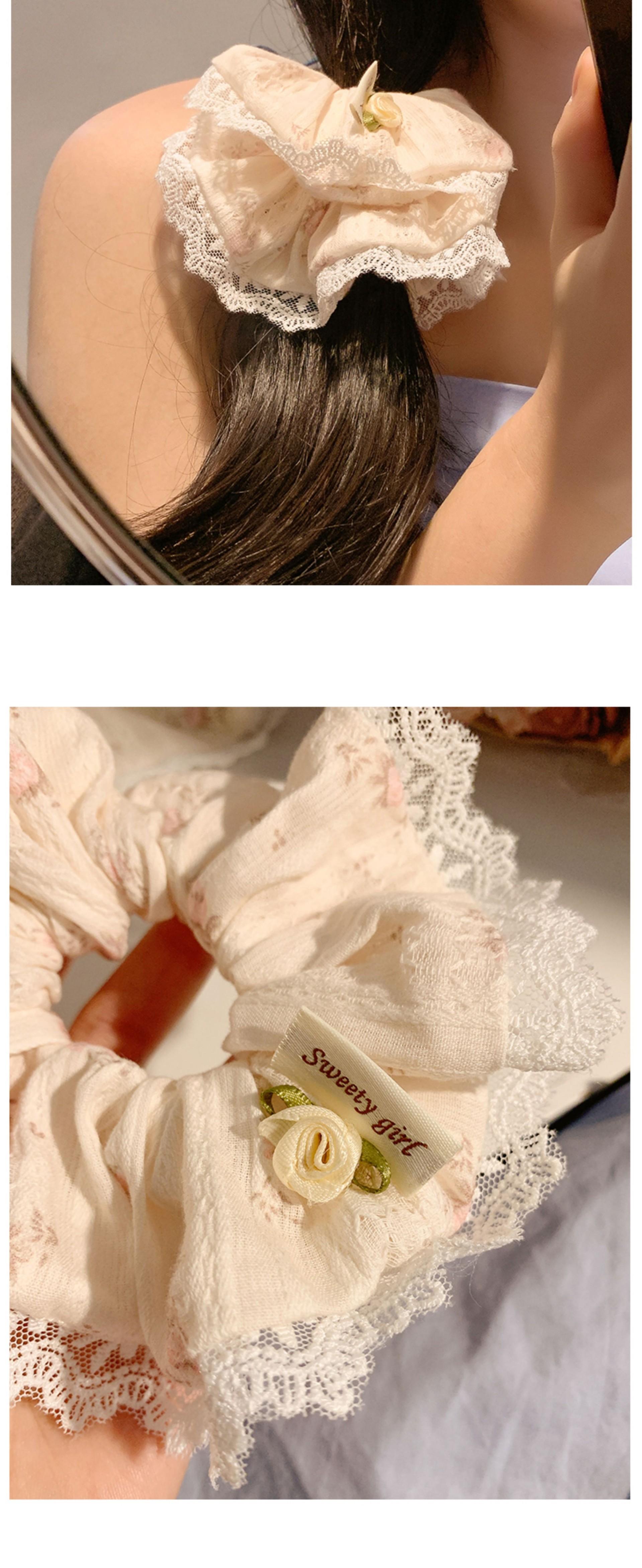 Lazo coreano encaje floral cuadrado anillo para el cabello de intestino grueso cuerda para la cabeza femenina estilo pastoral tocado accesorios para el cabello al por mayor
