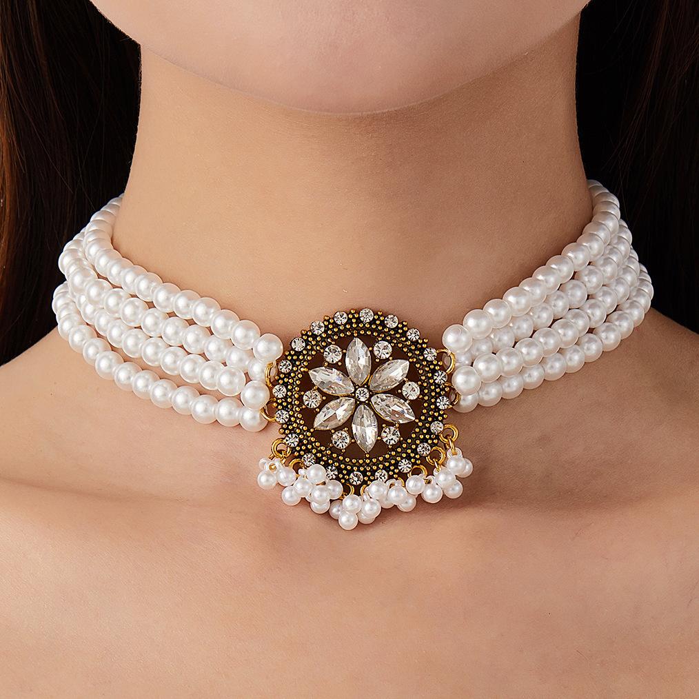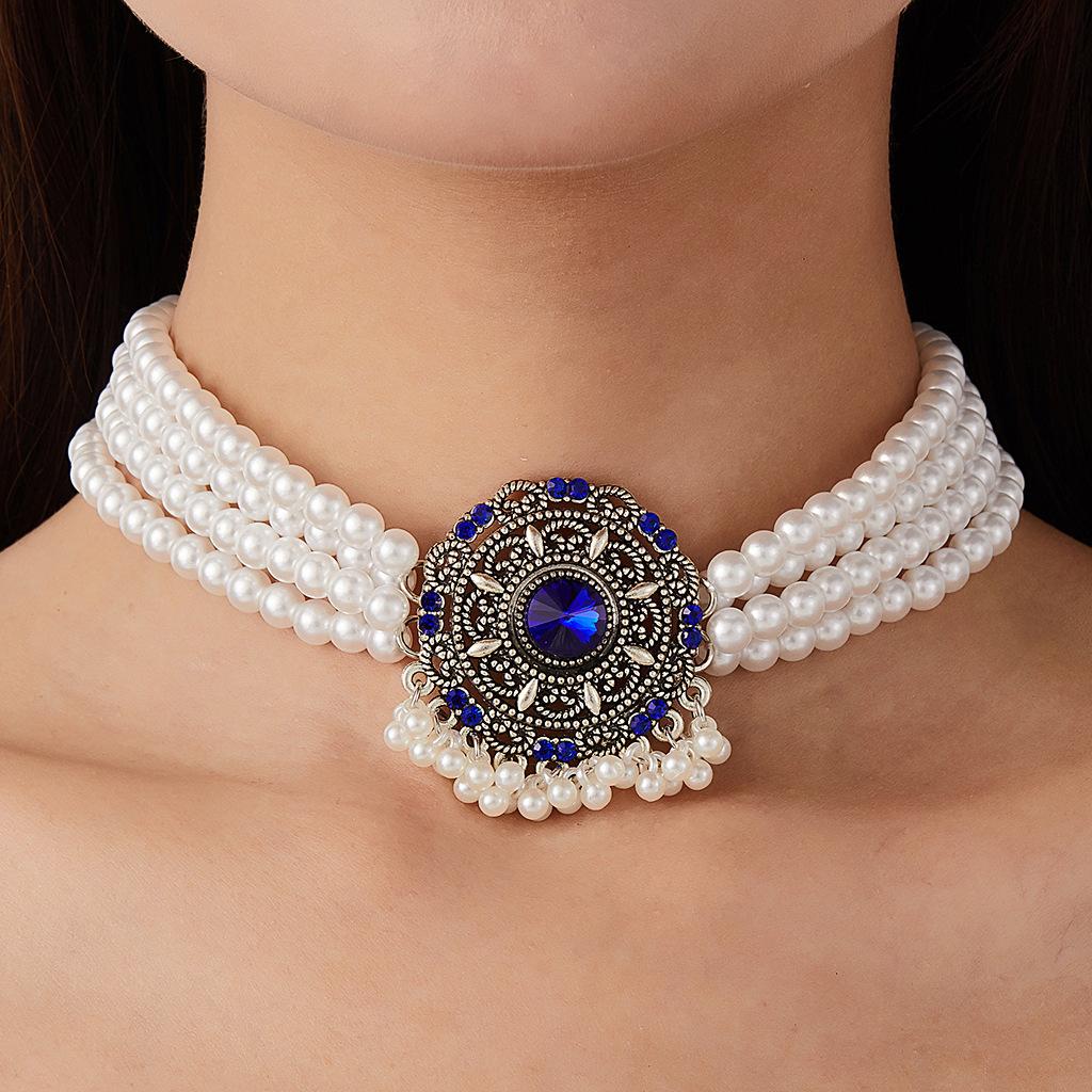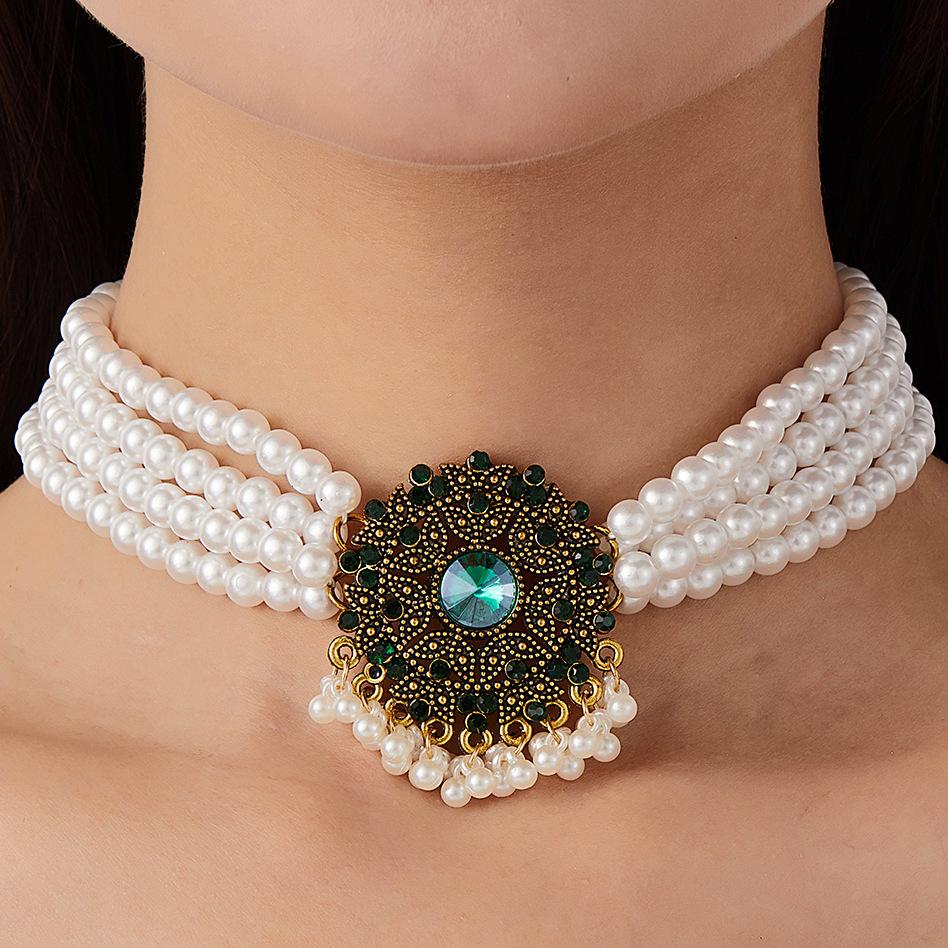 Collar de perlas de cristal con diseño europeo y americano, estilo étnico, temperamento, cadena de clavícula estilo retro, estilo corte para mujer