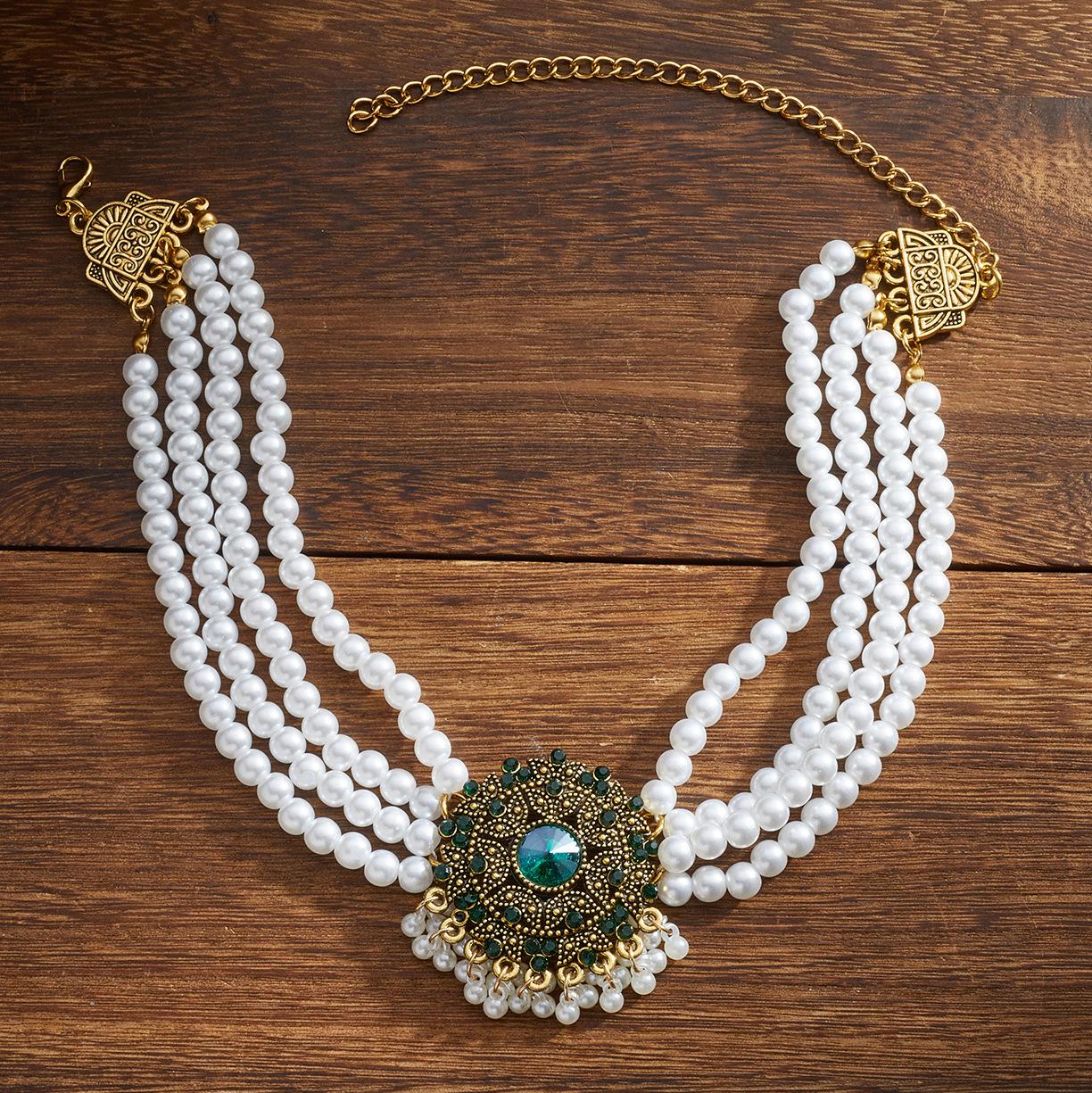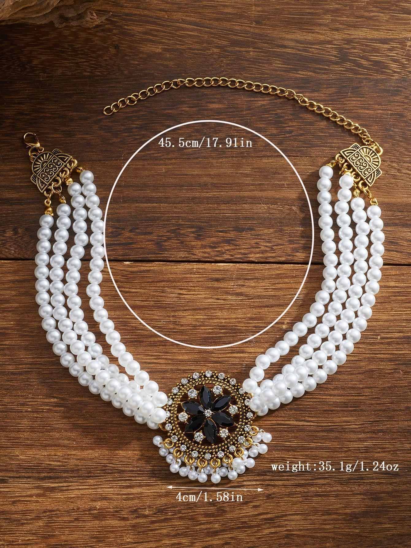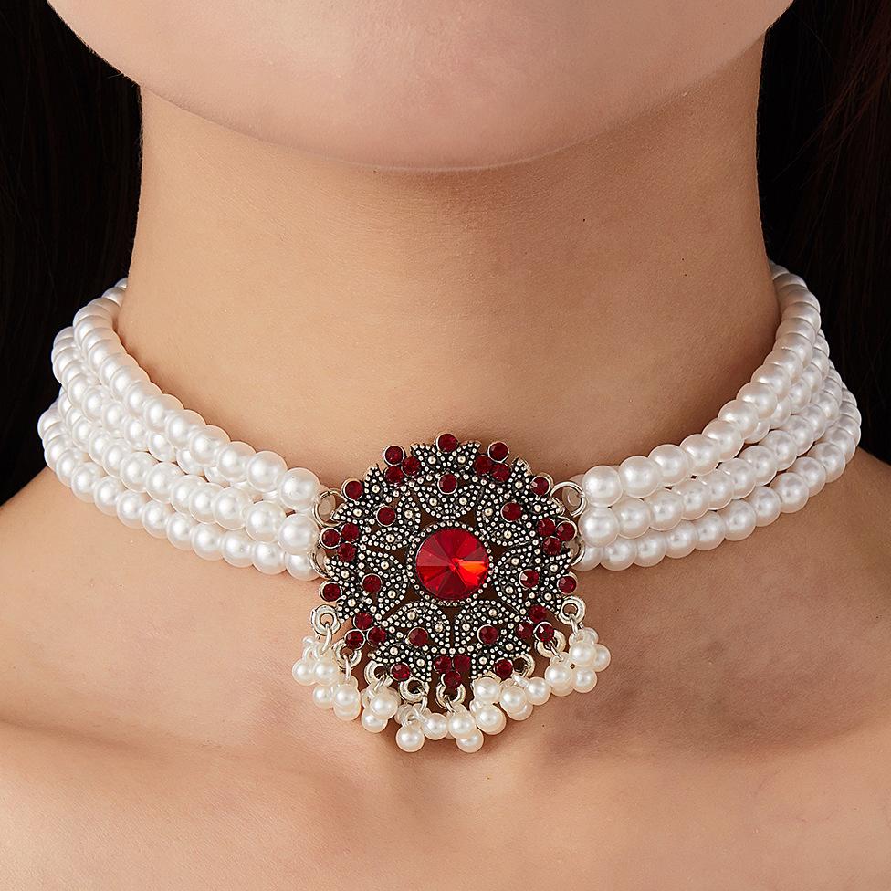Collar de perlas de cristal con diseño europeo y americano, estilo étnico, temperamento, cadena de clavícula estilo retro, estilo corte para mujer