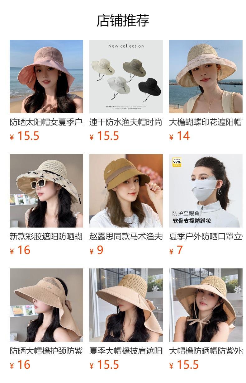 Sombrero de Sol de Nuevo Estilo Ala Ancha Protección para el Cuello Cola de Caballo Integrada Sombrero de Pescador Playa Viaje Combinable Moda Sombrero Parasol