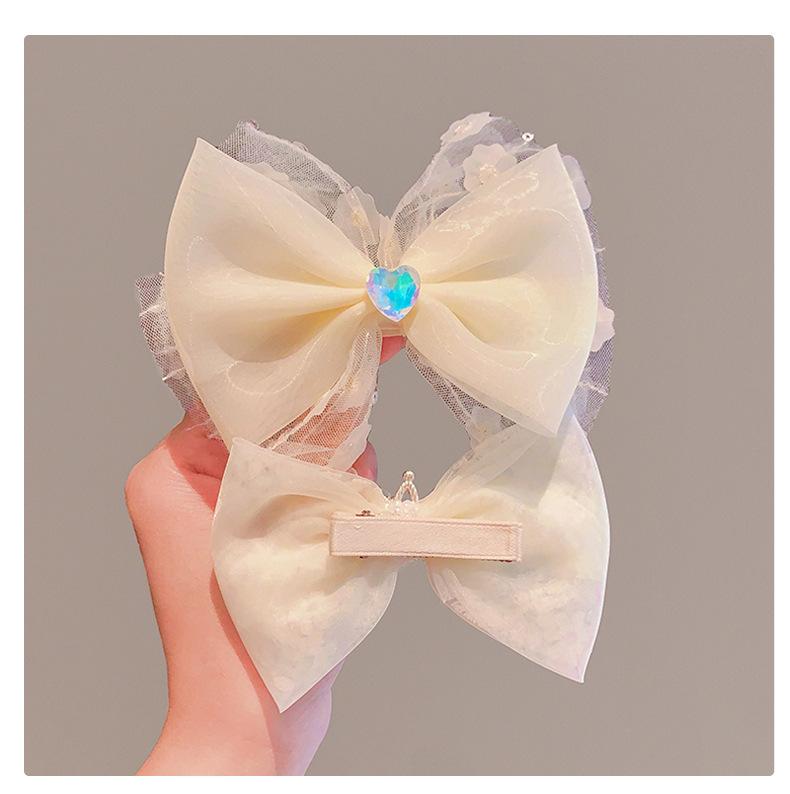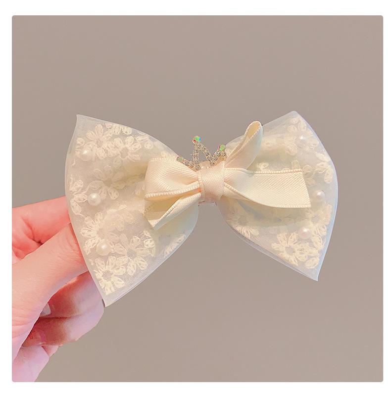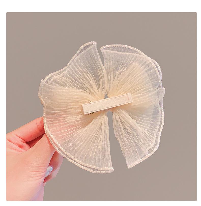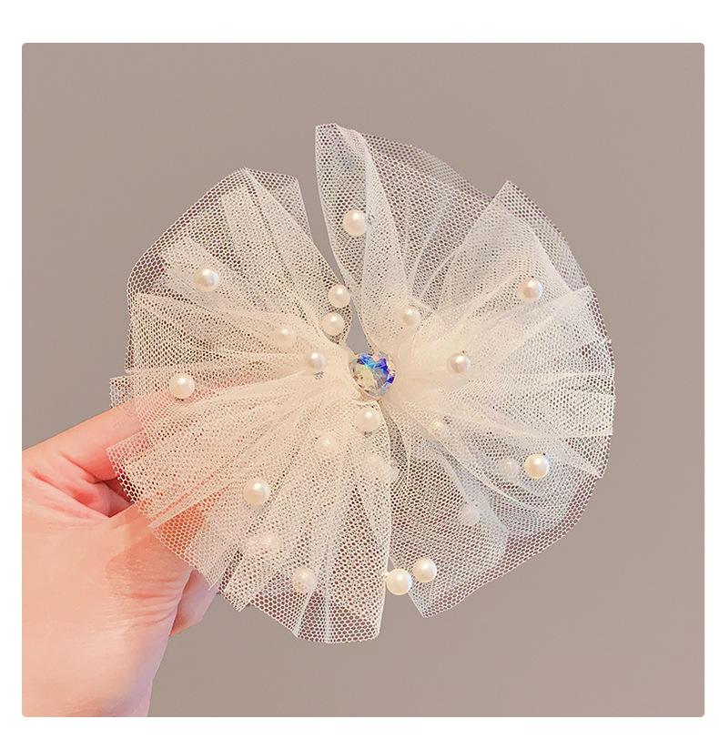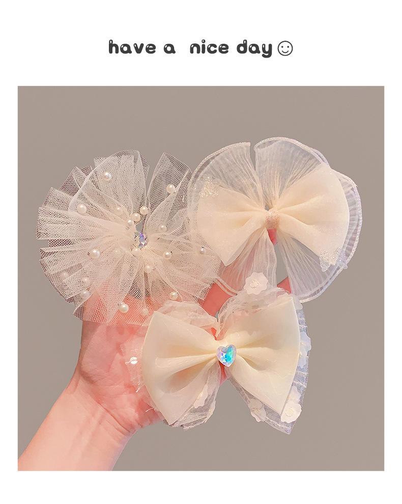 Horquilla para el pelo con lazo grande para niña, de malla, con perlas, de hada, con clip superior, accesorios para vestido, tocados para niña, horquilla de princesa
