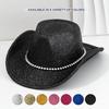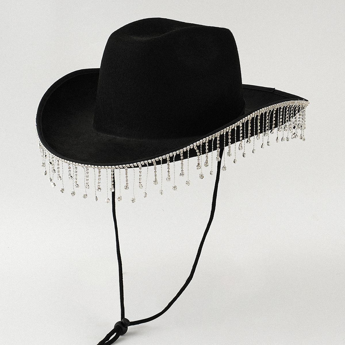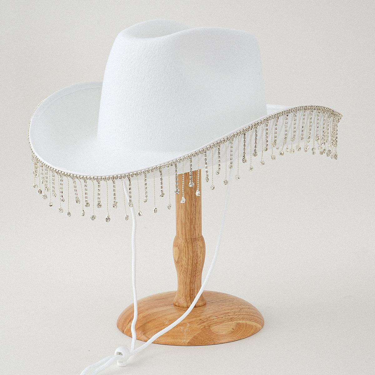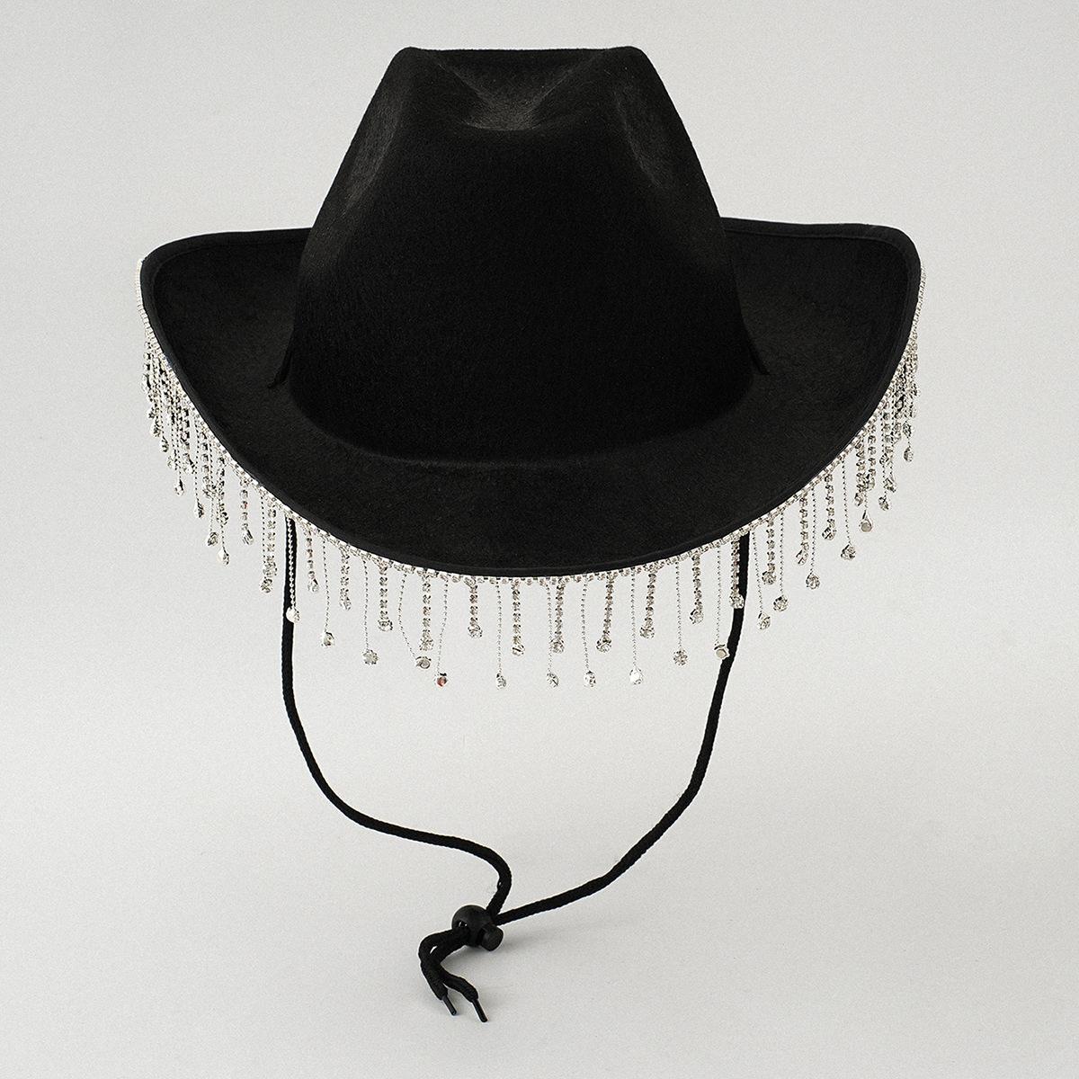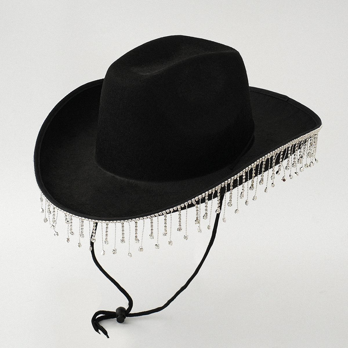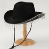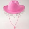 Sombrero de vaquero occidental para hombre y mujer, con borlas decorativas de diamantes de imitación, ajustable, con cuerda fija para vacaciones.