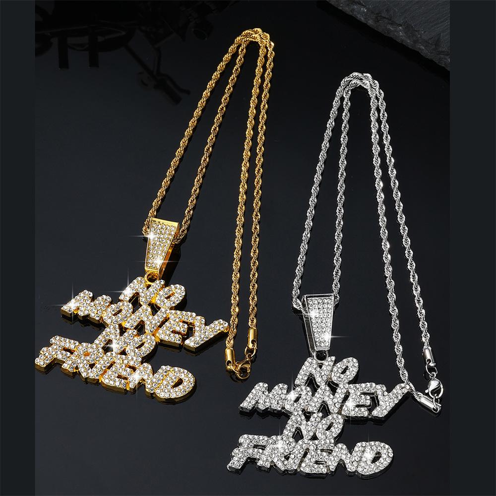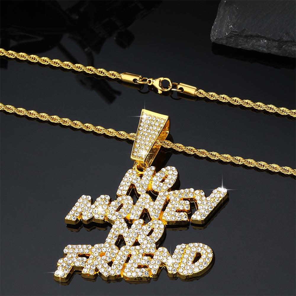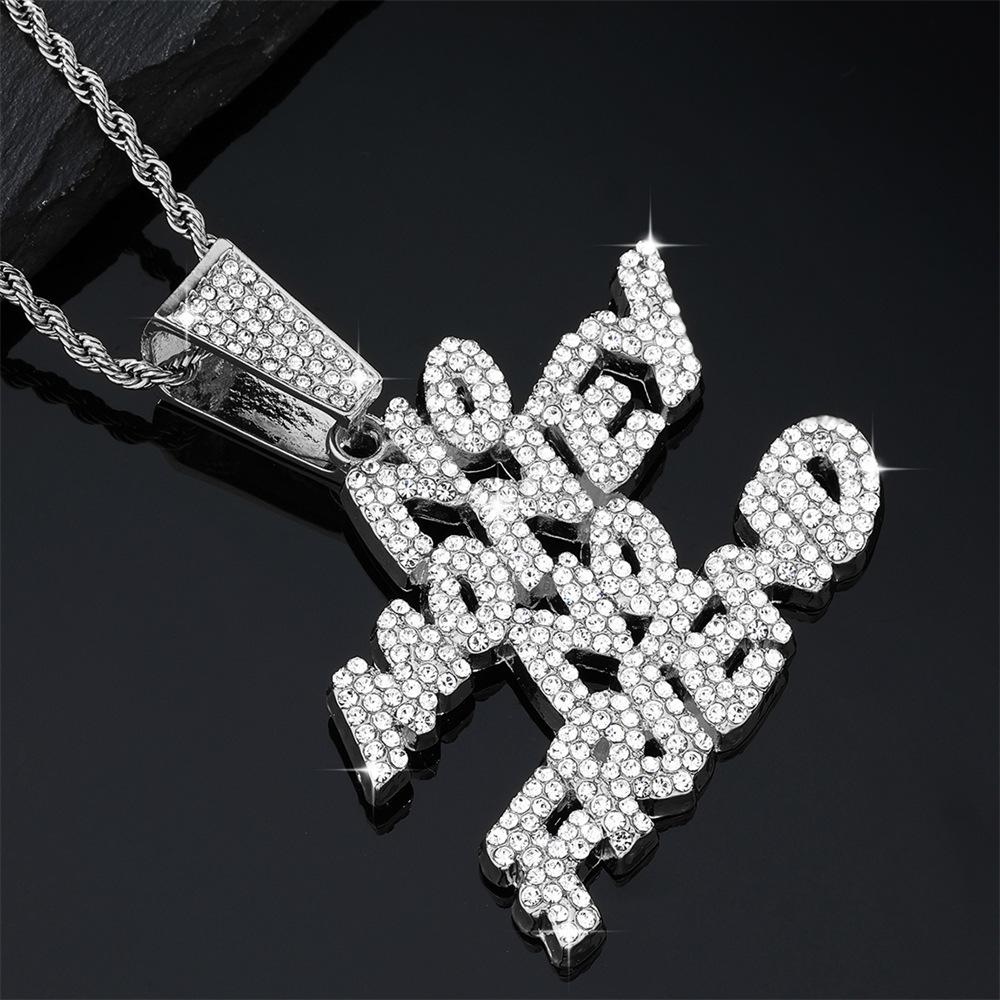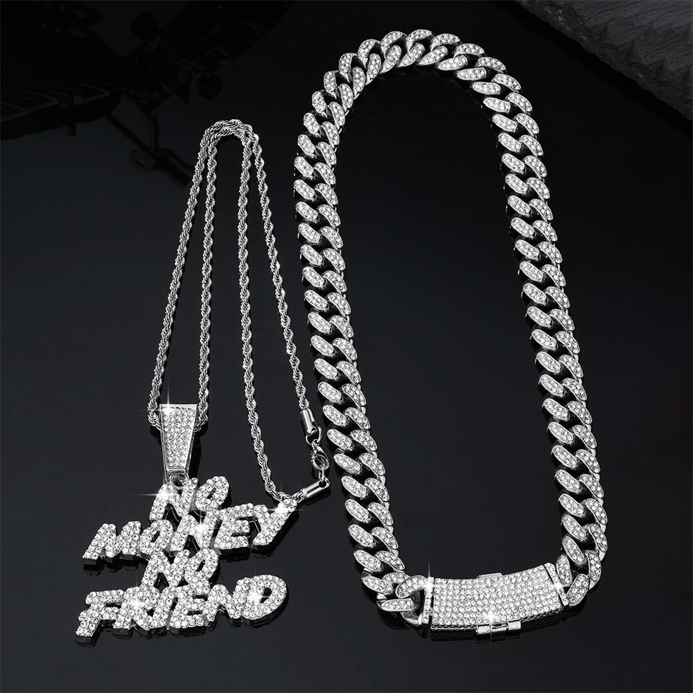 Collar con colgante de letra de diamante de estilo hip hop con cadena cubana de Amazon, venta al por mayor en stock.