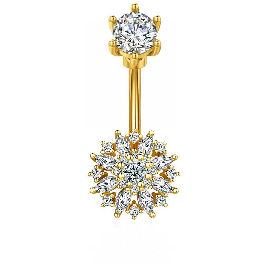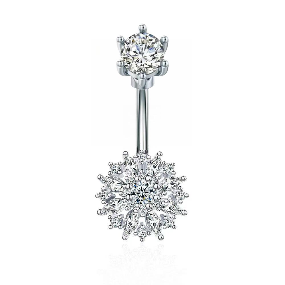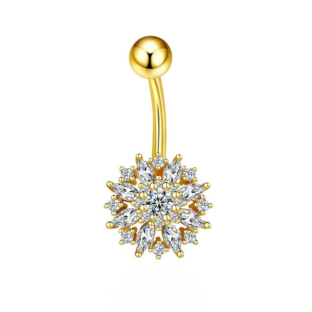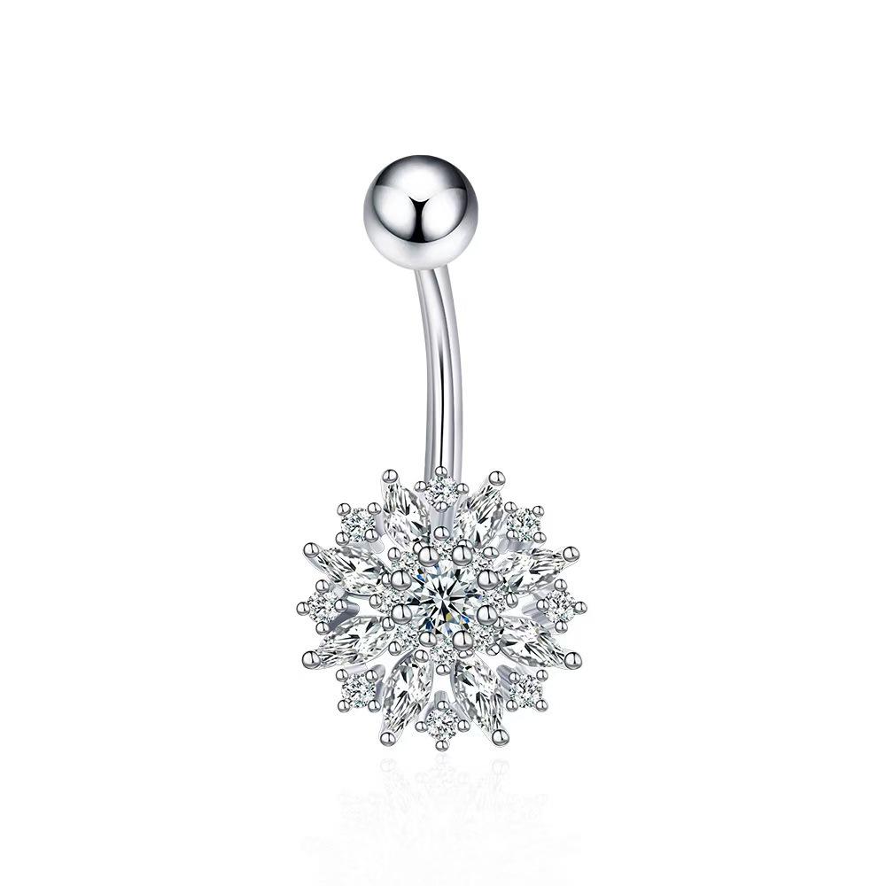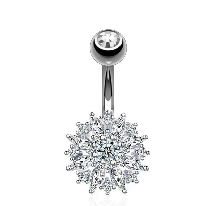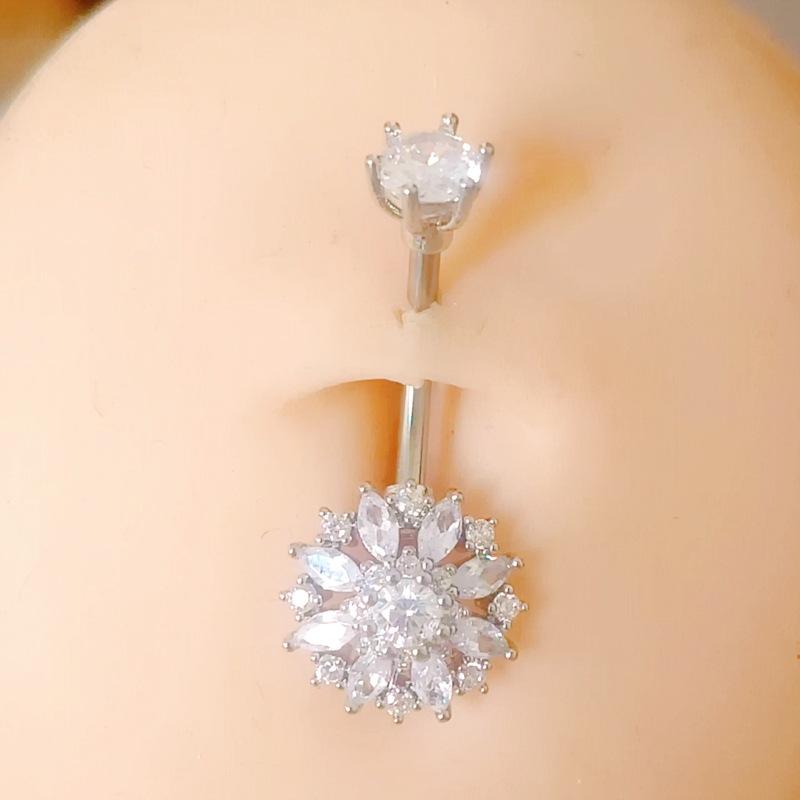 Nueva moda transfronteriza flor ombligo uña incrustada circonita acero inoxidable joyería para perforaciones accesorios danza del vientre venta al por mayor mujeres