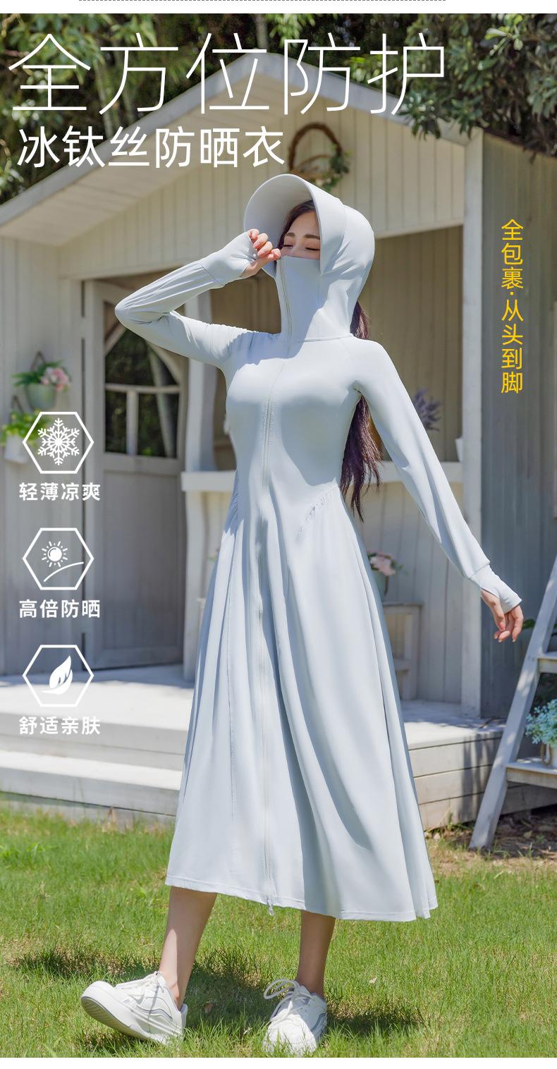 Bajo los rayos ultravioleta de alta intensidad al aire libre, la ropa larga de protección solar puede proporcionar una protección solar más completa para todo el cuerpo.