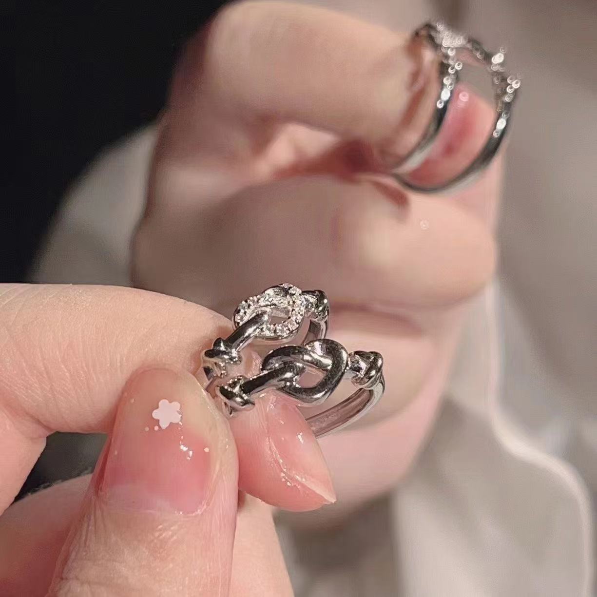 Anillo de Corazón Anudado con Temperamento Minimalista de Nicho de Lujo Ligero a la Moda para Hombres y Mujeres, Anillo de Corazón Estilo Influencer