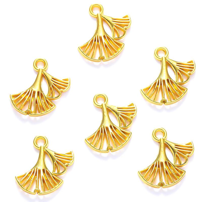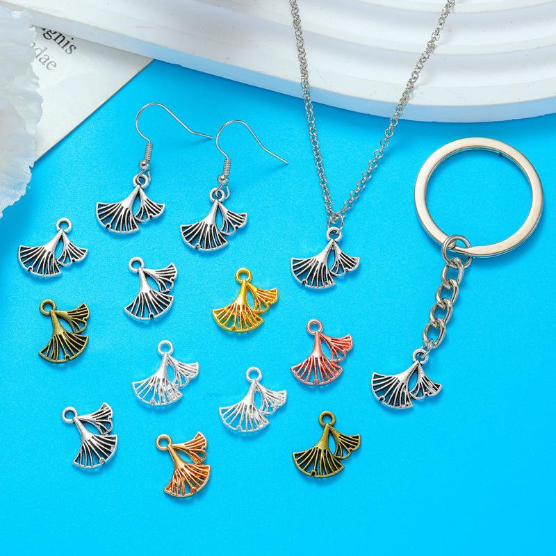 Accesorios de joyería de aleación para bricolaje, colgante de hoja de ginkgo con hojas huecas, pulsera, llavero, decoración, colgante Q392