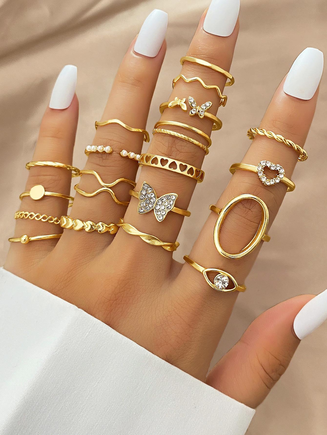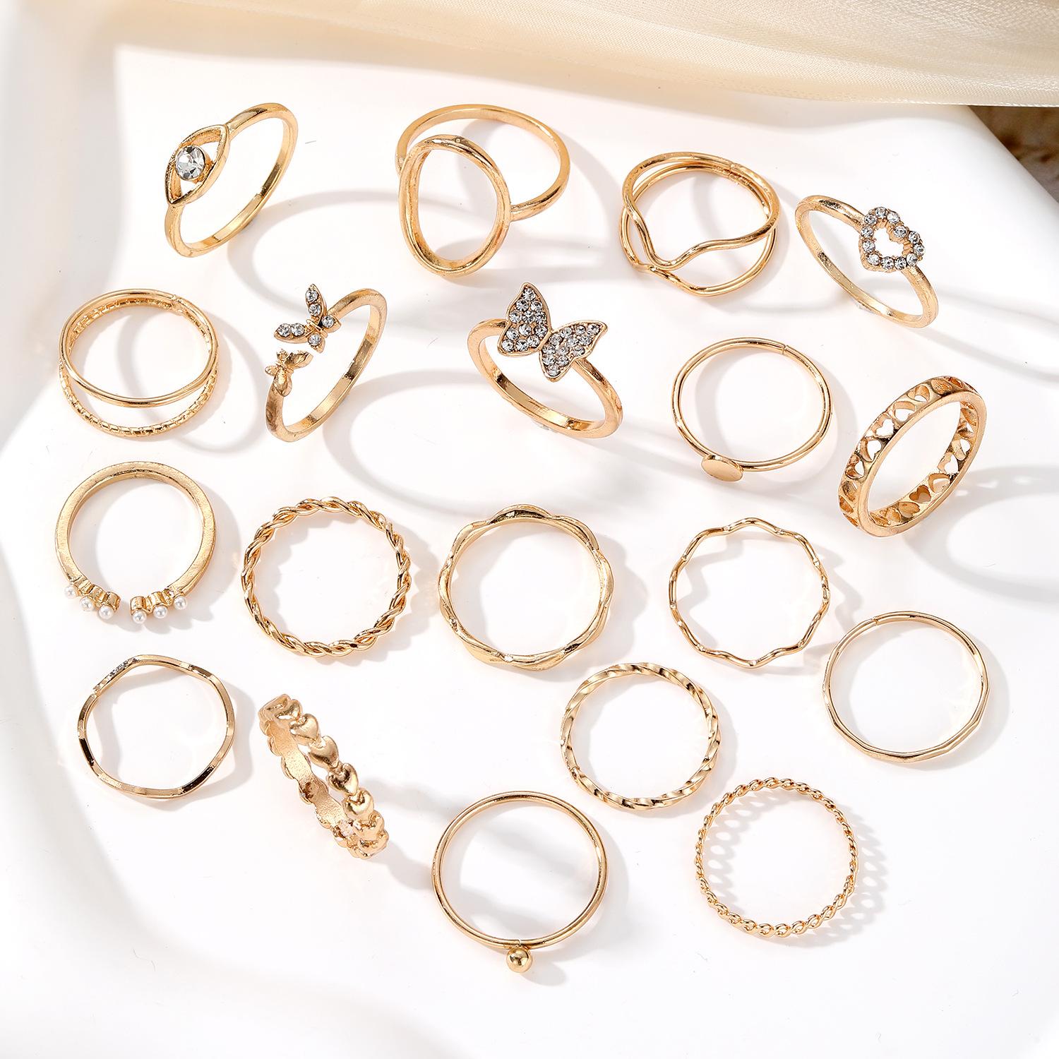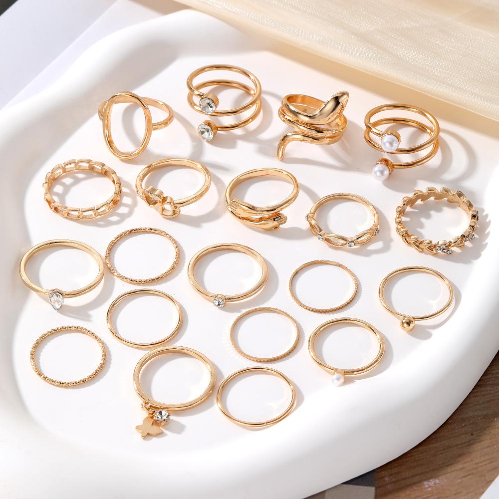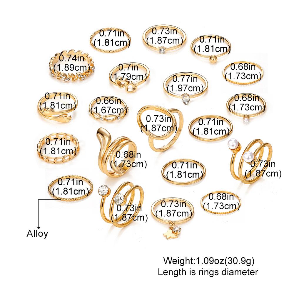 Europa y Estados Unidos amor mariposa caliente transfronterizo perla trigo serpiente diamante anillo de apertura traje anillo multiarticulado al por mayor