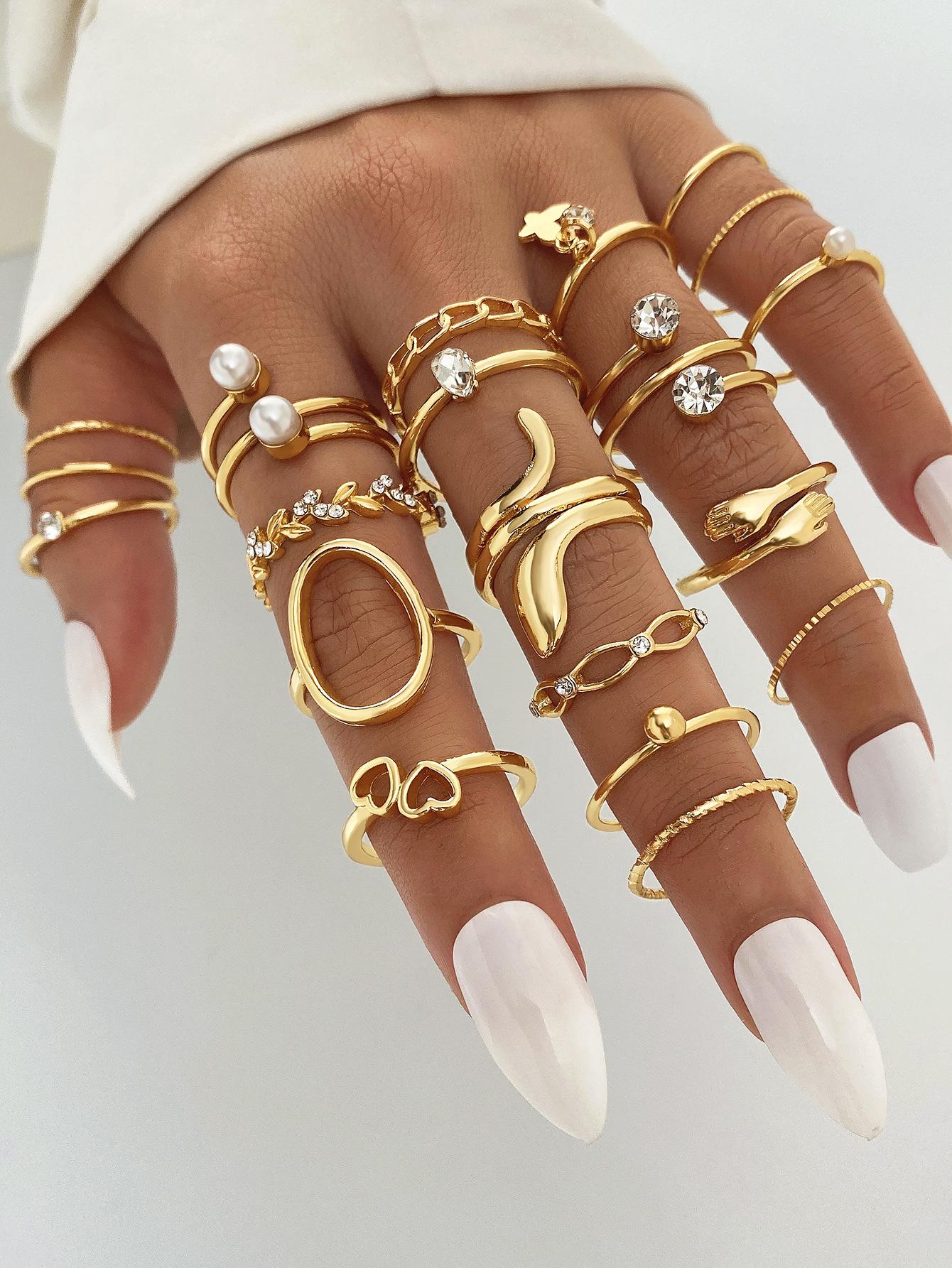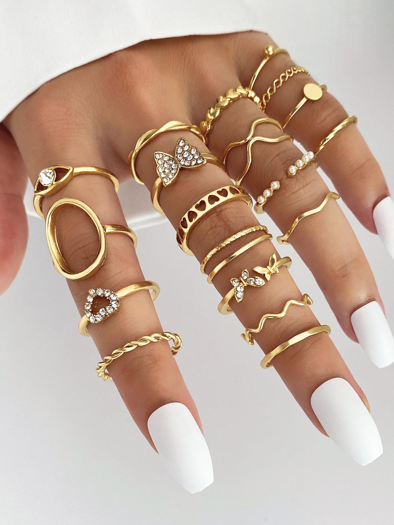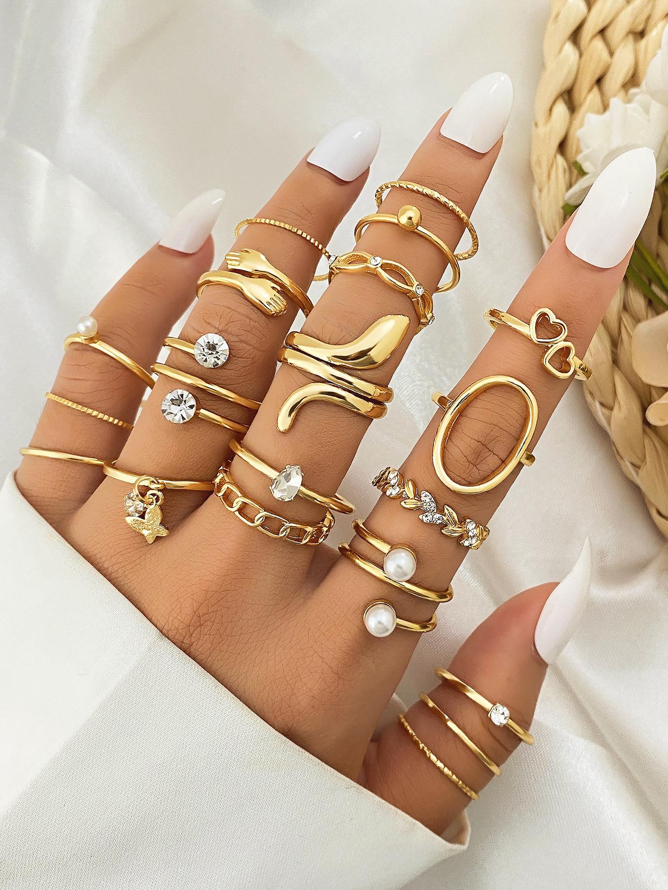 Europa y Estados Unidos amor mariposa caliente transfronterizo perla trigo serpiente diamante anillo de apertura traje anillo multiarticulado al por mayor