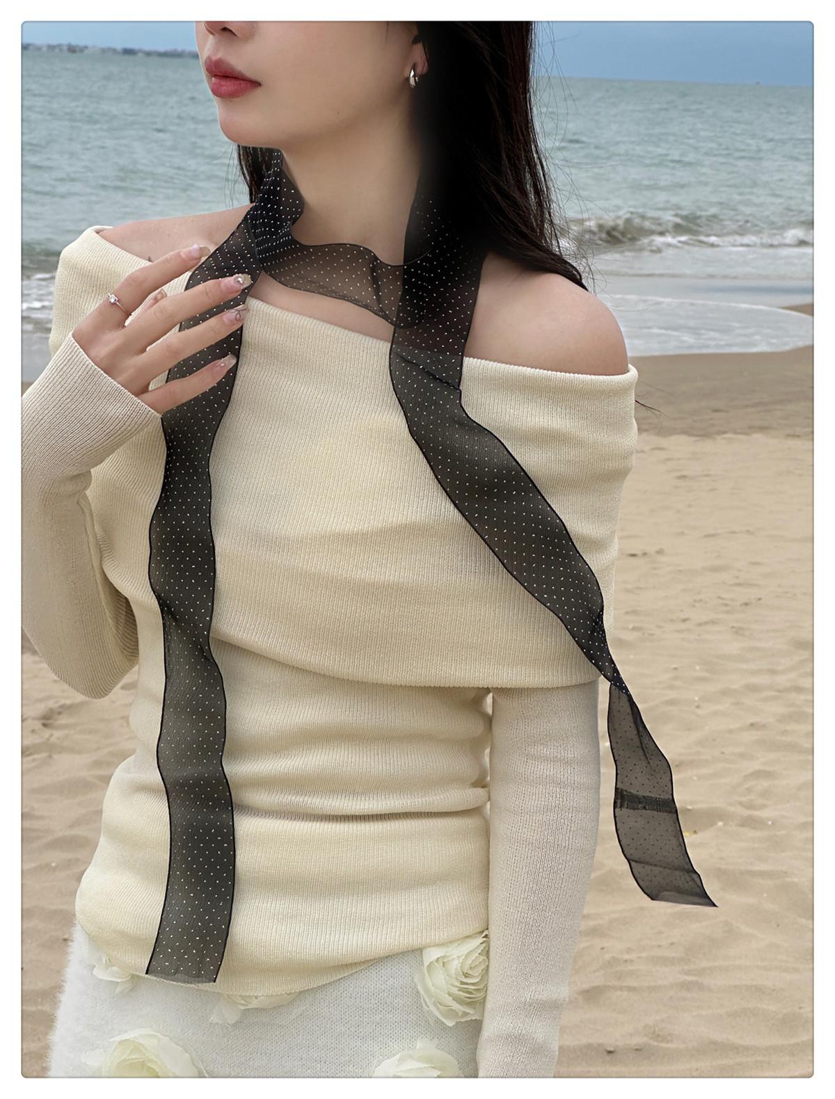 Corbata de lunares de encaje negro para mujer, primavera y verano, nueva y elegante cinta con escote, cuello decorativo, accesorios florales, moda a juego.