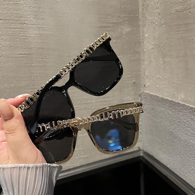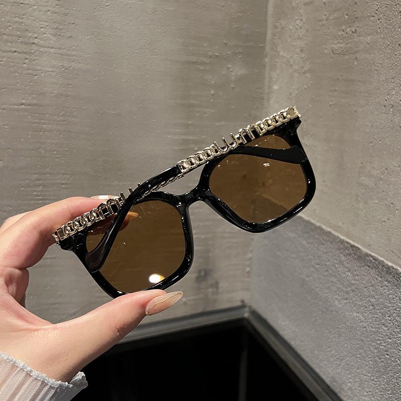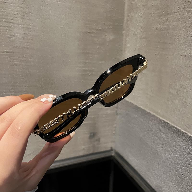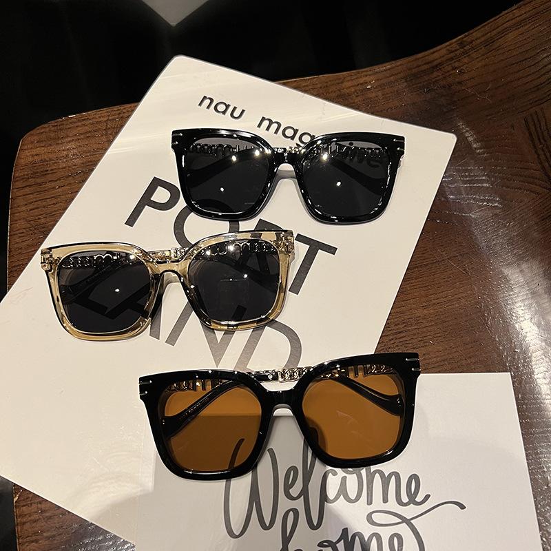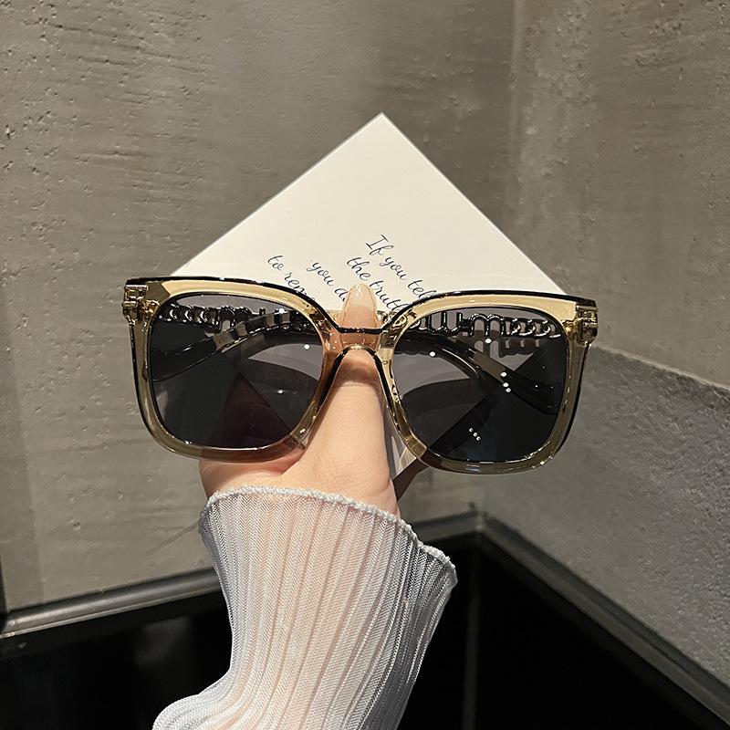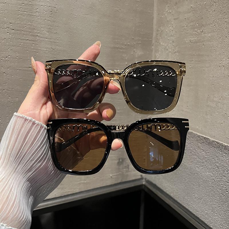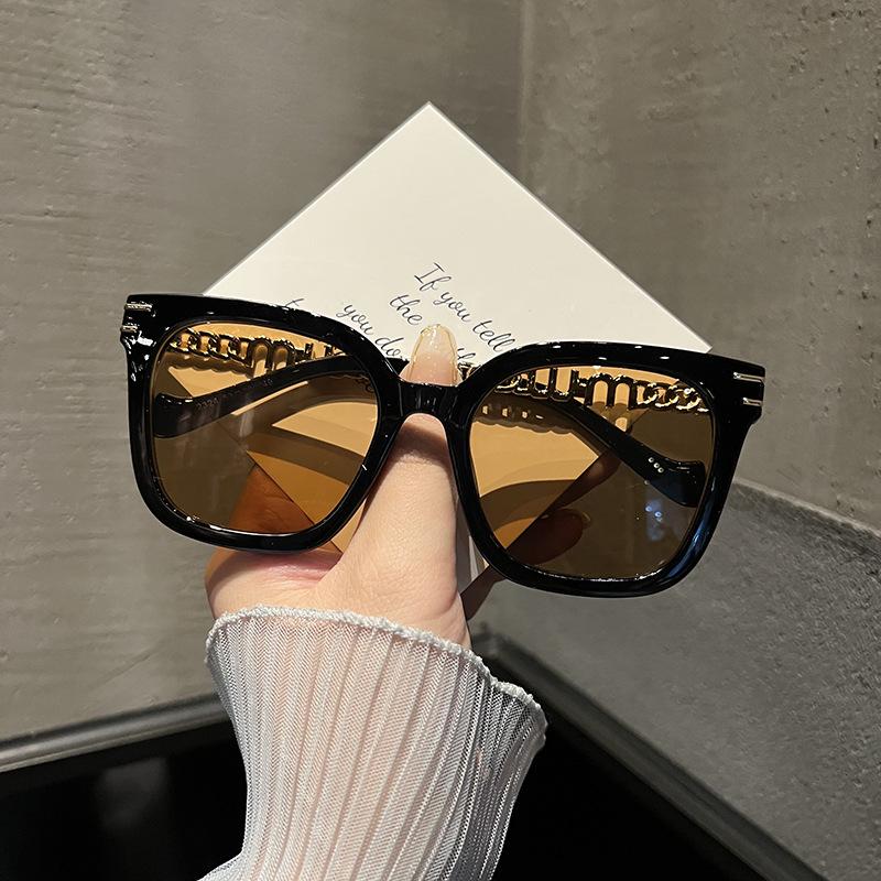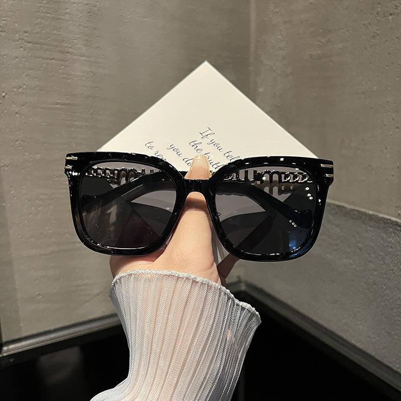 Gafas de sol negras de alta gama para mujer, famosas en Internet, con protección solar hueca y pata de metal, montura grande personalizada, para hombre, 2023