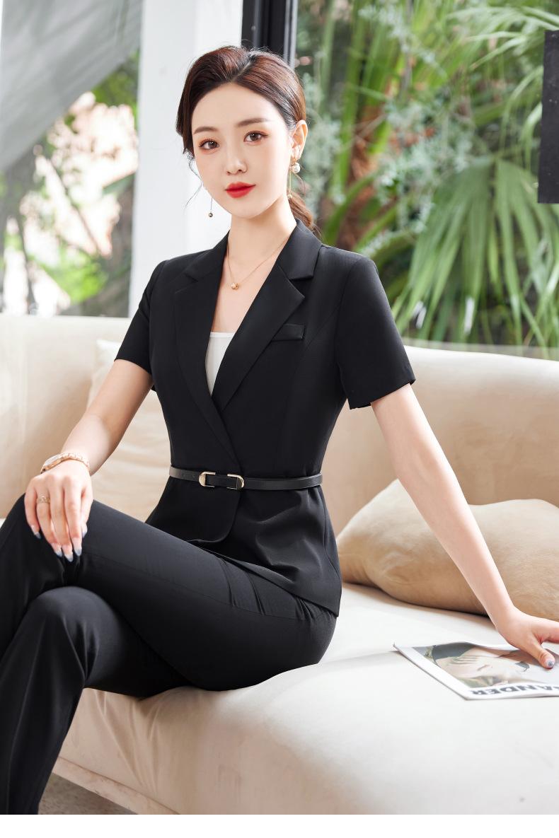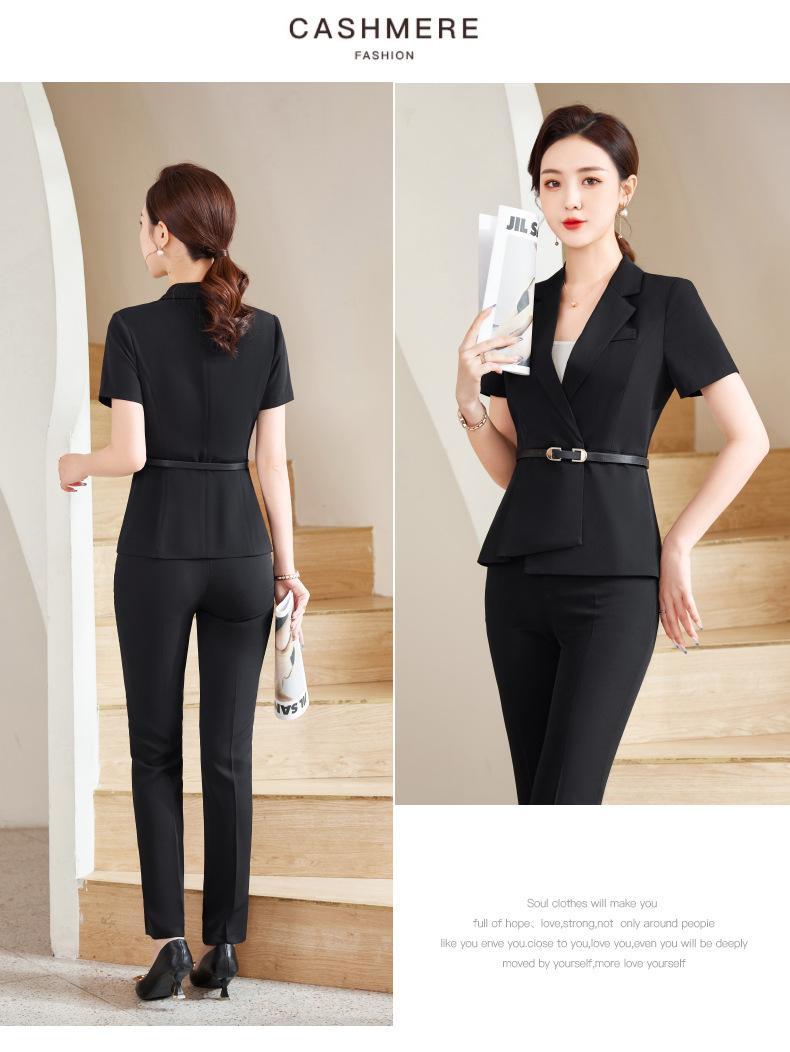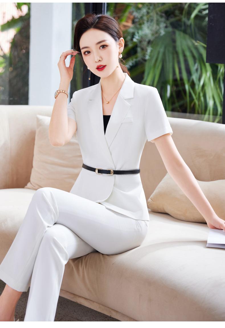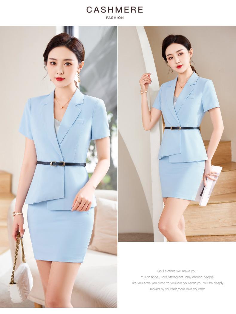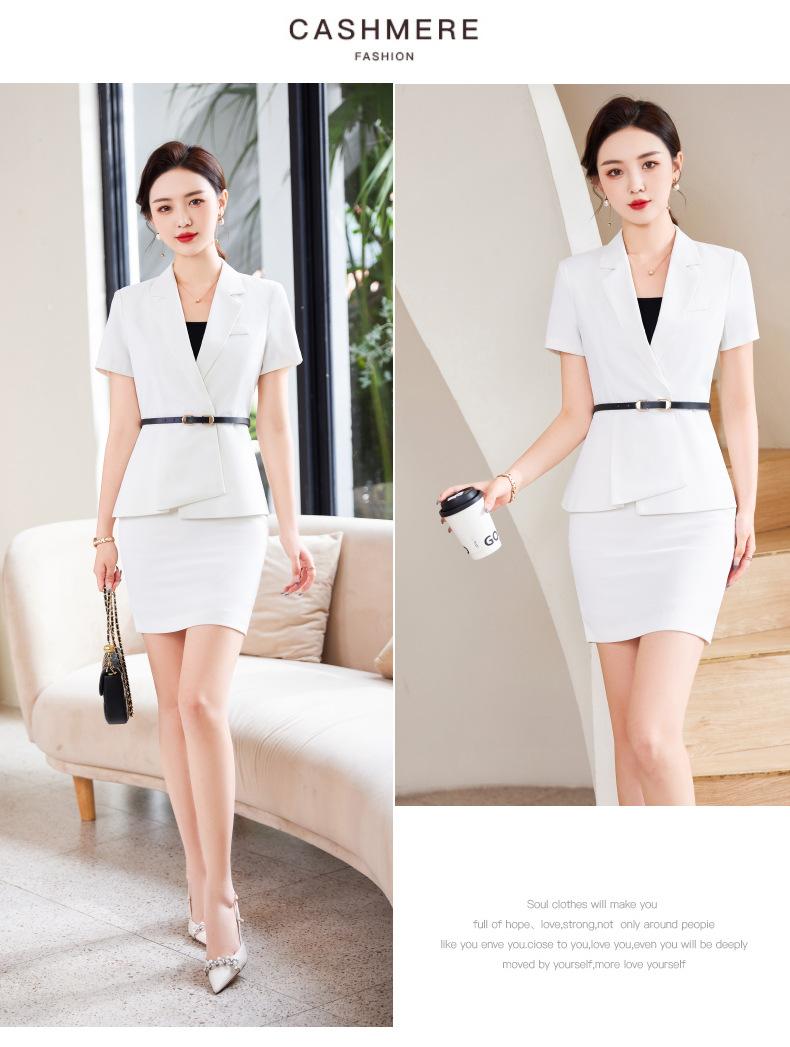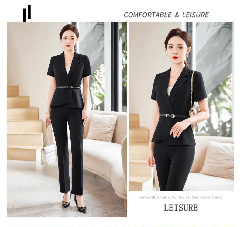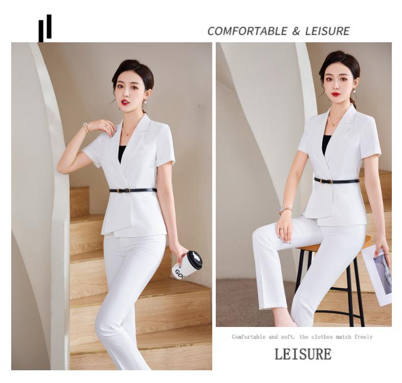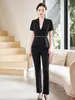 Verano Nuevo Traje Profesional de Manga Corta Gris para Mujer Sentido de la Moda Sentido del Diseño Nicho Vestido Traje Ropa de Trabajo