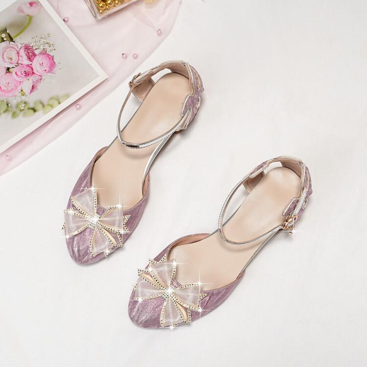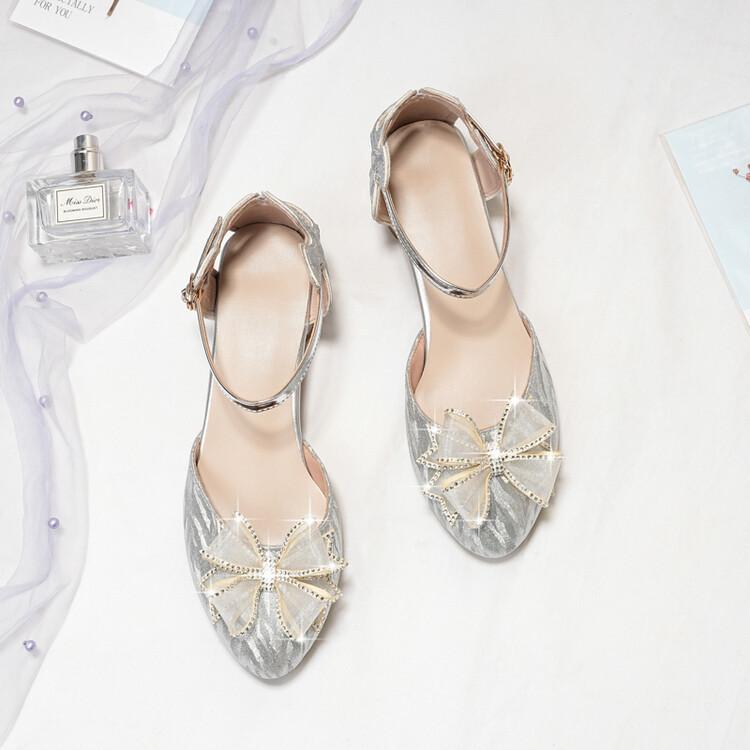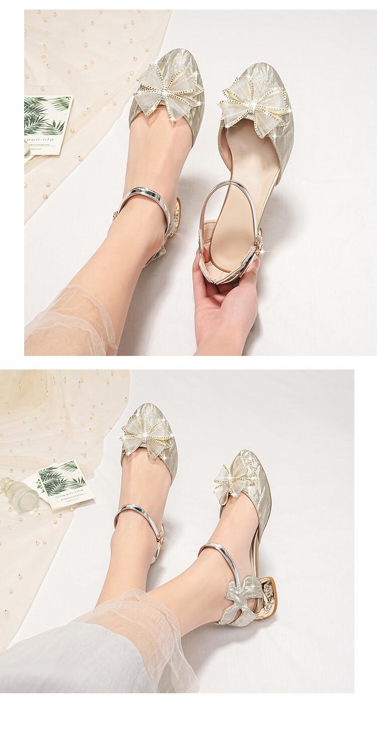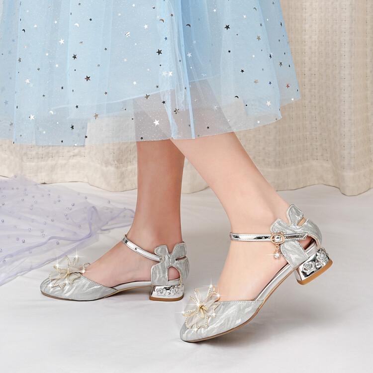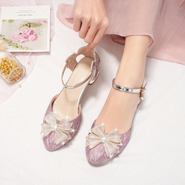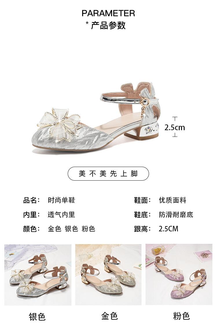 Sandalias de verano para niñas, nuevas sandalias con hebilla de color liso y lazo, zapatos para estudiantes de talla mediana y grande, sandalias de tacón alto de princesa