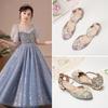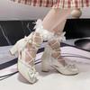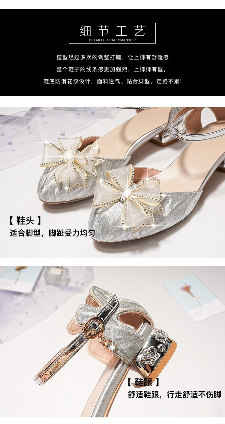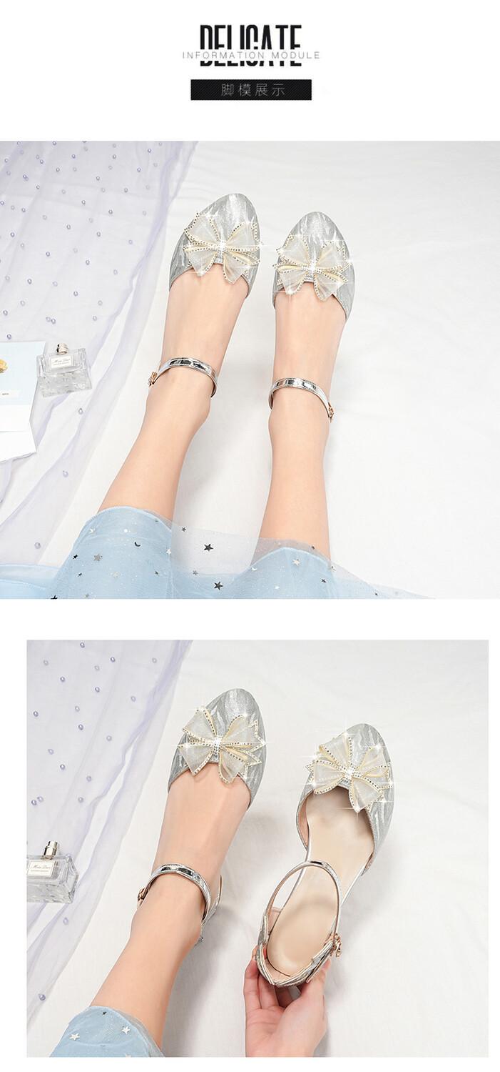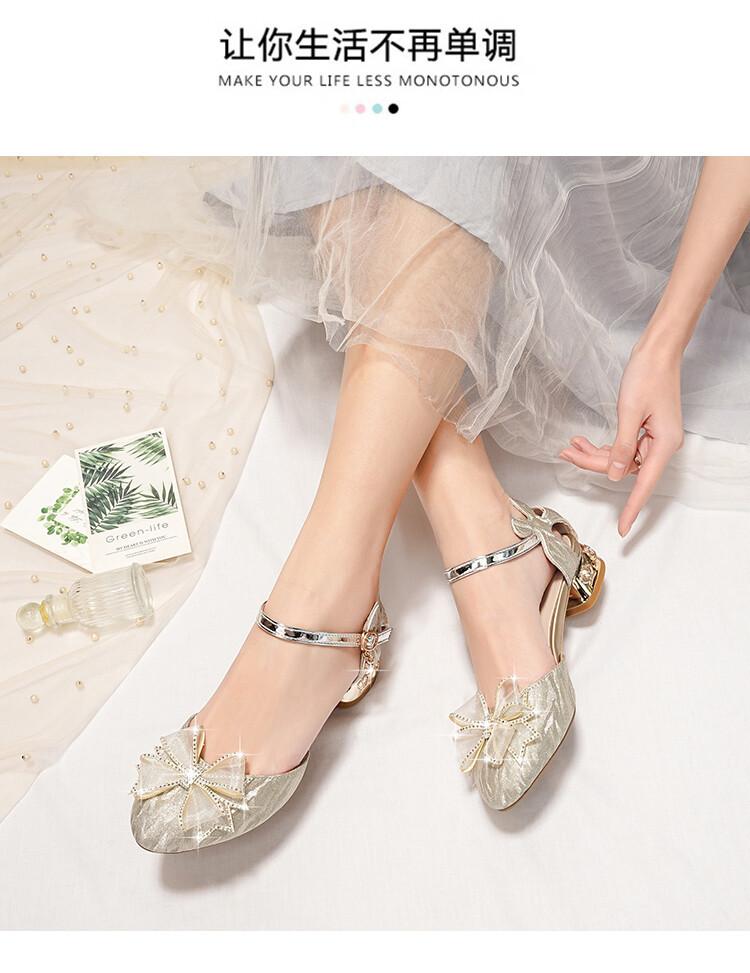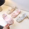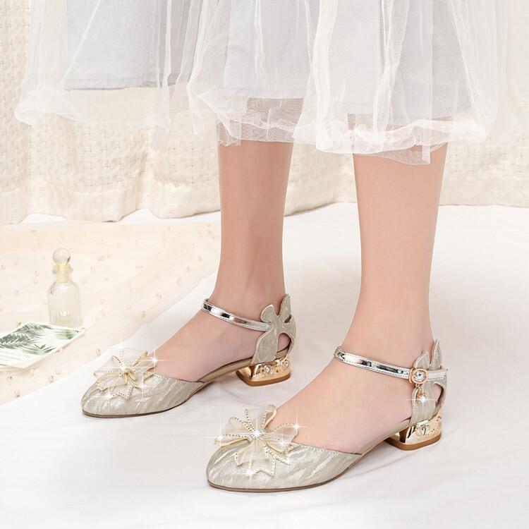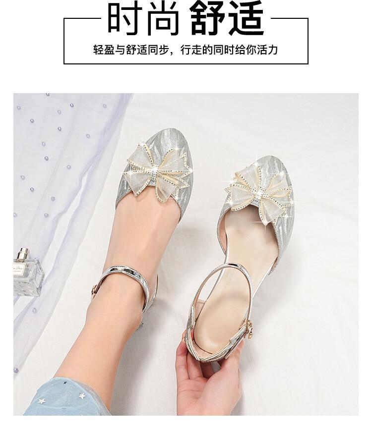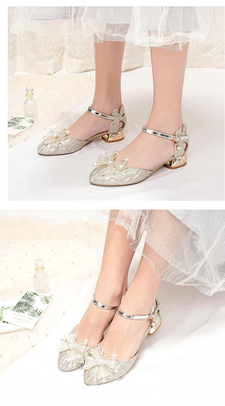 Sandalias de verano para niñas, nuevas sandalias con hebilla de color liso y lazo, zapatos para estudiantes de talla mediana y grande, sandalias de tacón alto de princesa