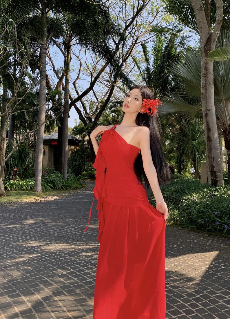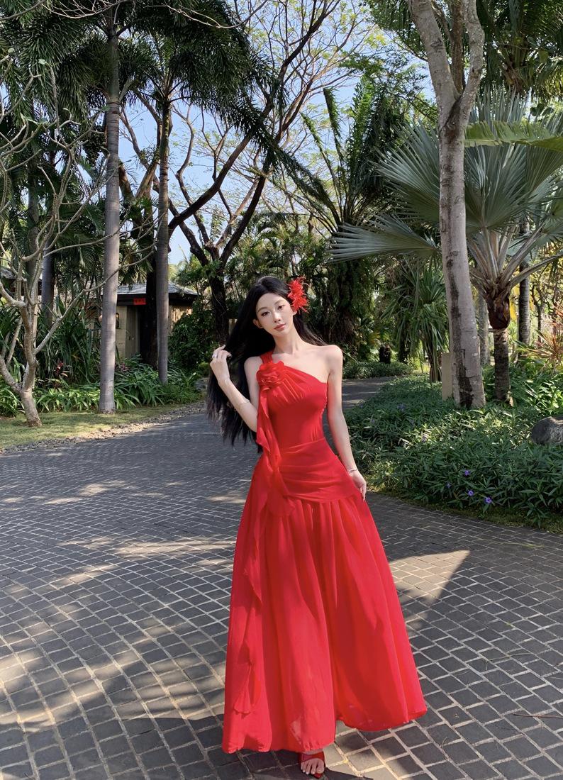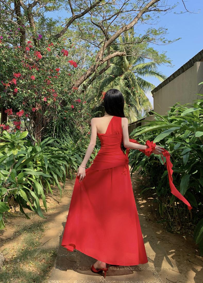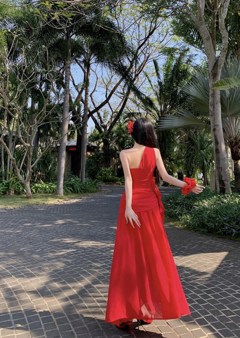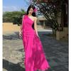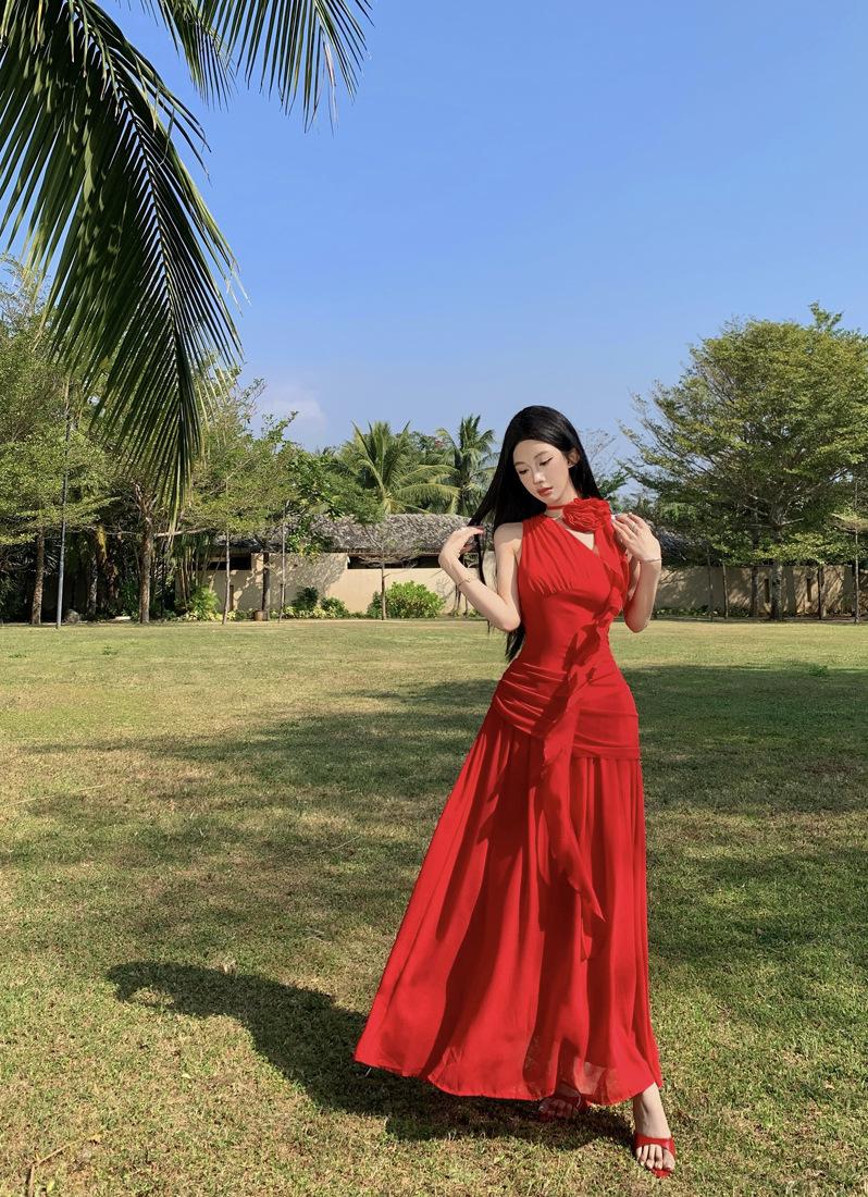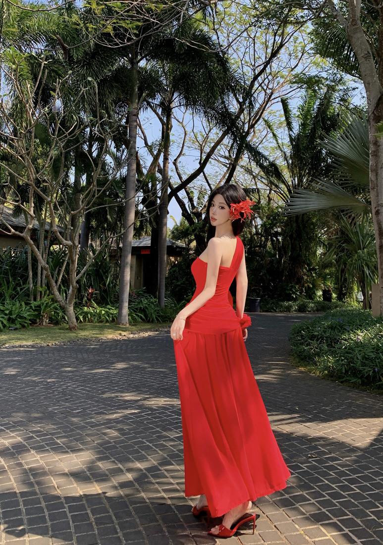 En stock Vestido Vacaciones en la Playa Blanco Rojo Vestido de Tirantes Vestido de Gasa Vestido Espejo de Viaje