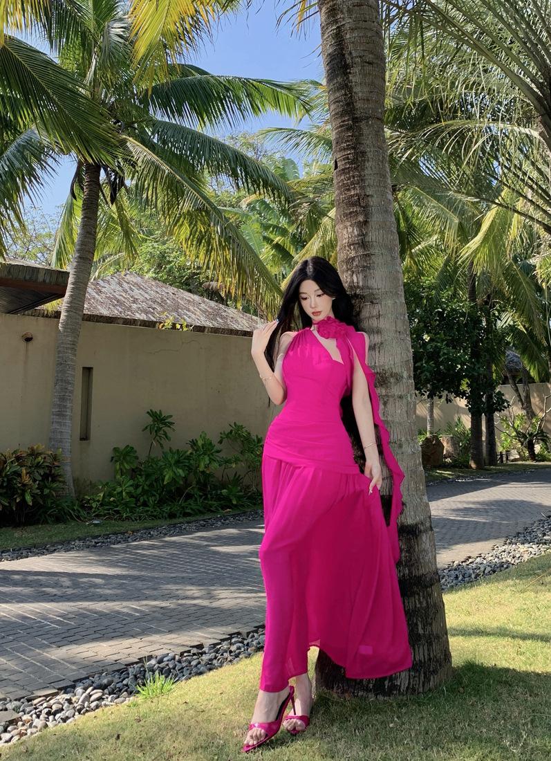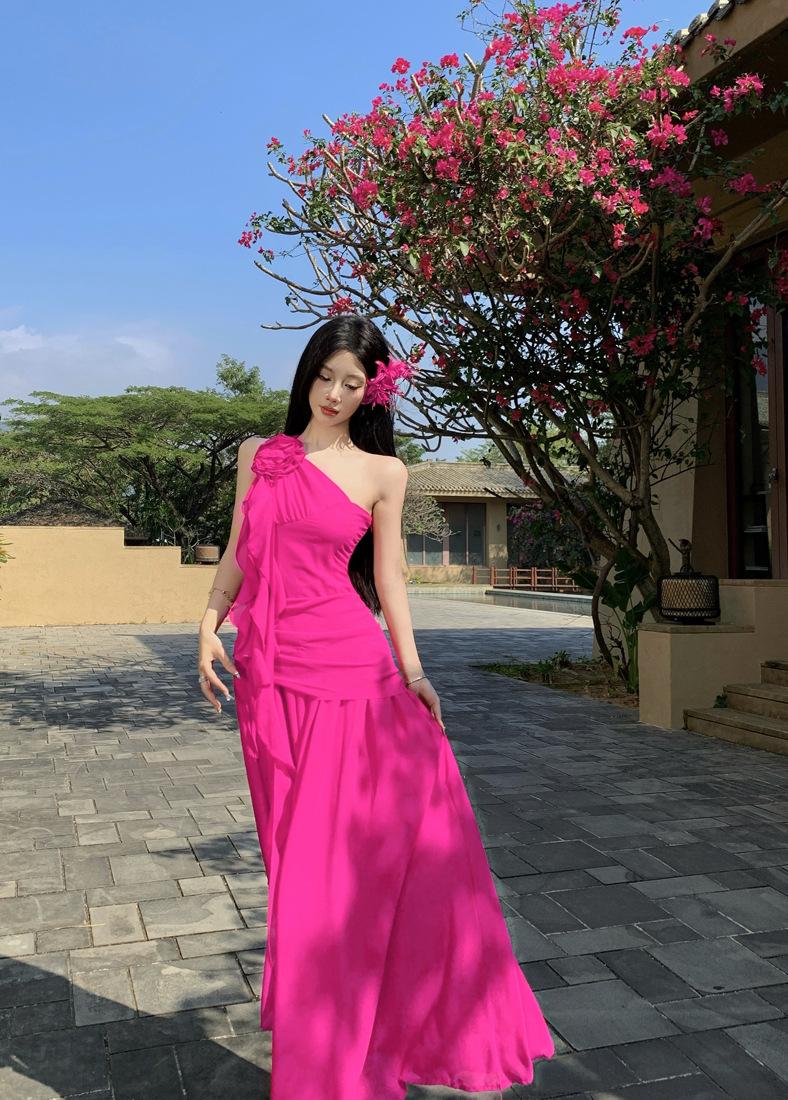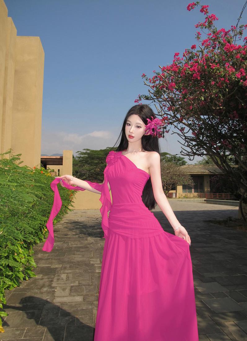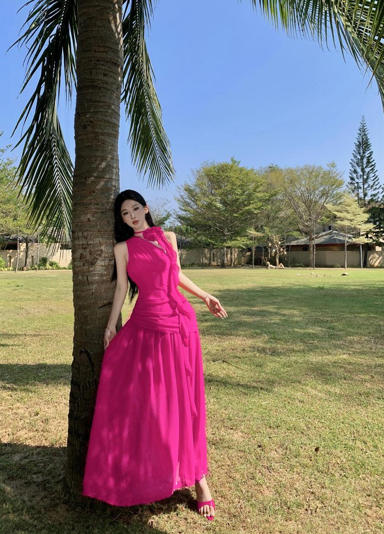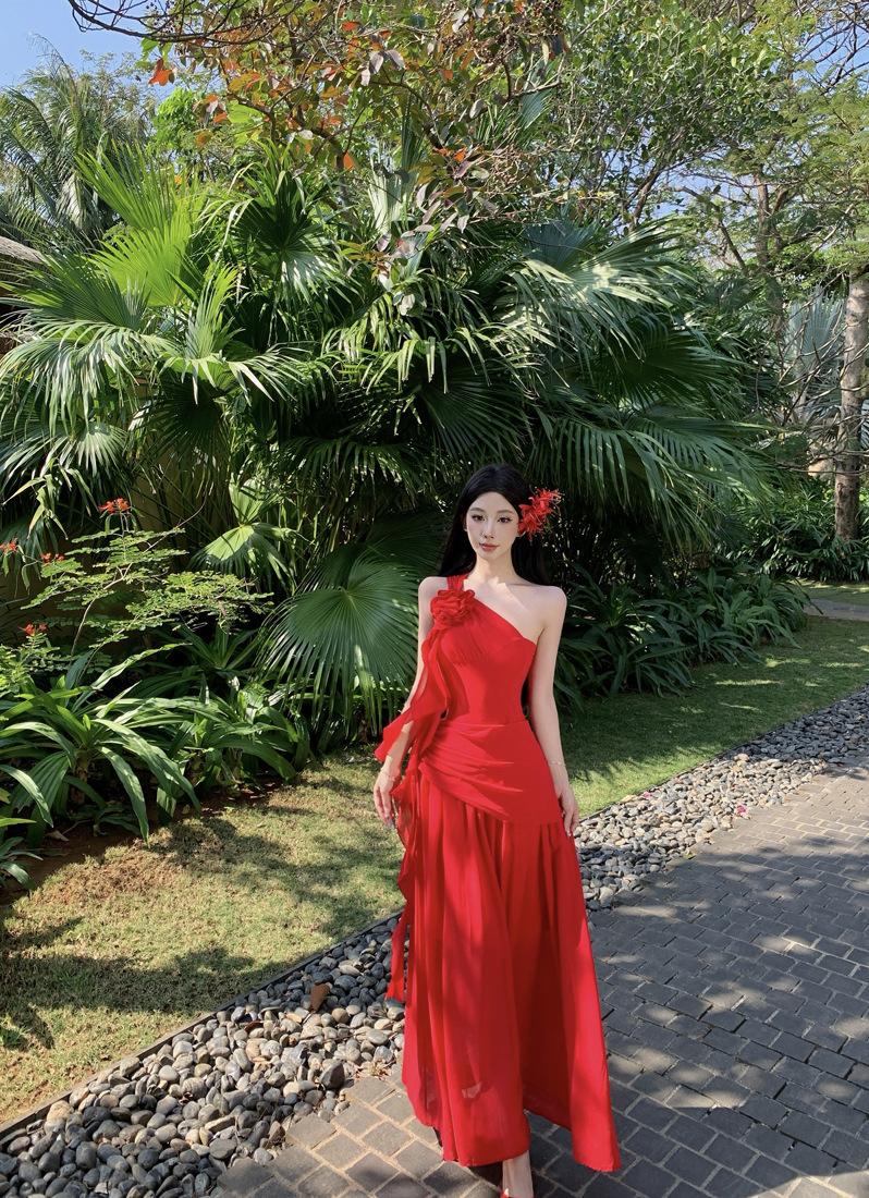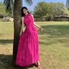 En stock Vestido Vacaciones en la Playa Blanco Rojo Vestido de Tirantes Vestido de Gasa Vestido Espejo de Viaje