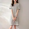 2026 Elegante Vestido de Punto Rayado Moda de Verano Nuevo para Mujer Cuello Redondo Holgado Adelgazante Moda Vestido de Línea A